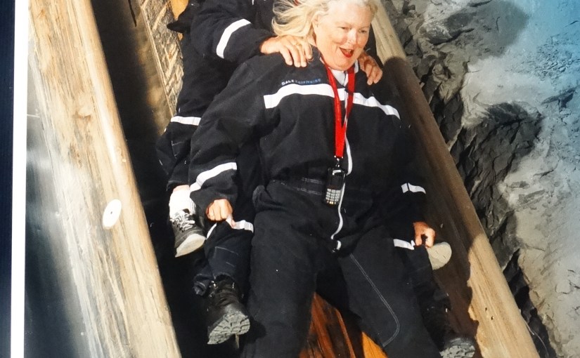 We lunched on Austrian baguettes (a bit tougher than the French ones) after climbing down from the Ice Caves looking at Hohenwerfen Castle and then travelled to Berchtesgaden. Kerry’s IPhone must have been playing a joke on us as we took the most circuitous route through villages to end up on a main road beside the tour buses at our destination, the salt mines. I was very surprised that we were standing in front of a glass and steel building with a train line poking out of it.