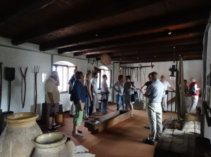 Our tour starts at the loggia outside the village. Here the village council met and the court was convened and the markets were held. From there we went through the gate under the Austro Hapsburg Crest. The village relied on refining olive oil for most of its life. One of the oil crushing plants from 500 years ago still exits and we were able to visit this establishment.