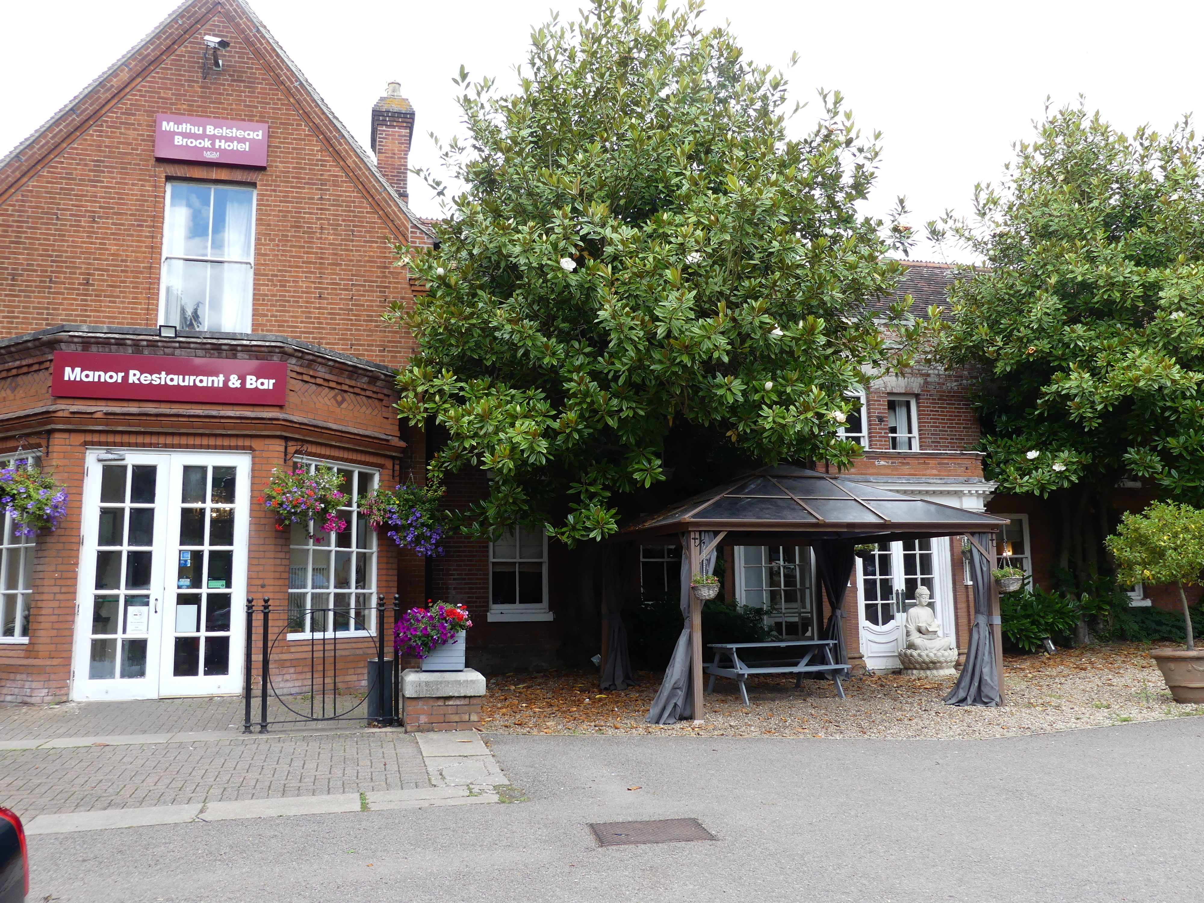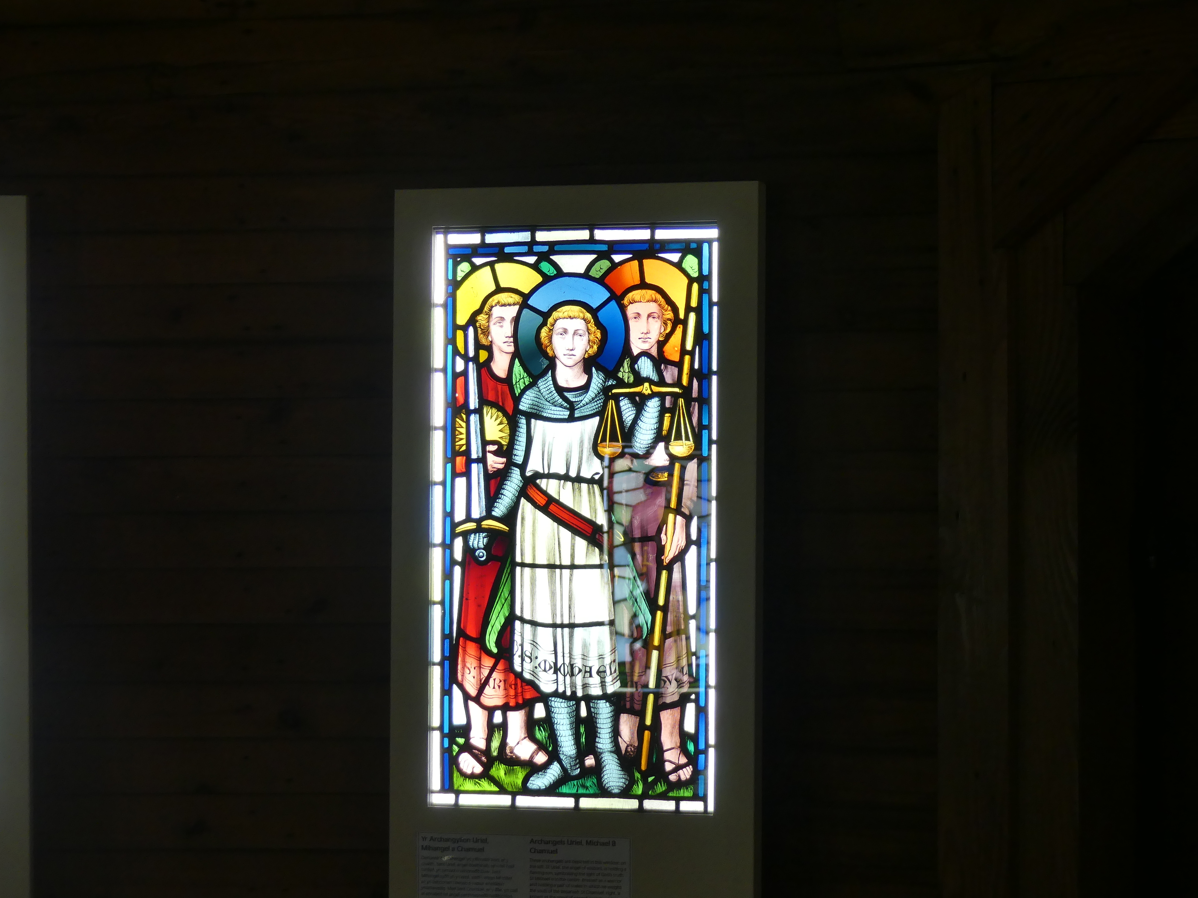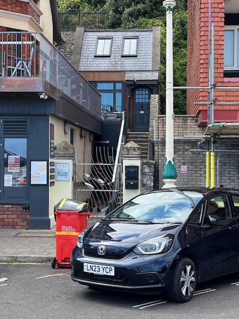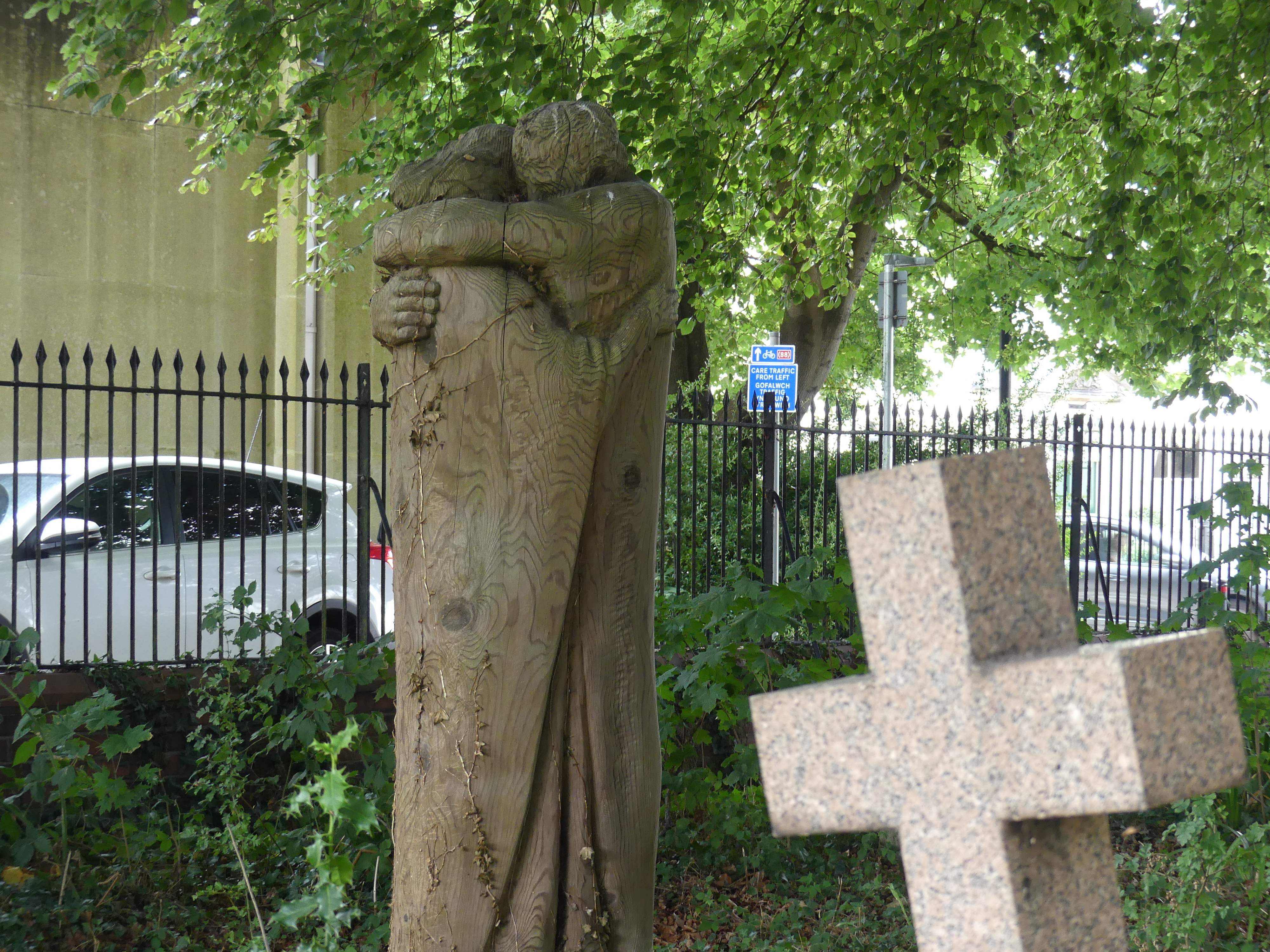 The pictures below take you on that stroll. First is the Priory – now an accommodation hotel but retaining the features of the former Priory with a pair of hares in the back yard. There are some interest wood carvings of a forest gnome, a priory student in cloche and priory guardian. Then there is the pub, a reused telephone box to house a defibrillator, a pretty pub, and the museum entrance.