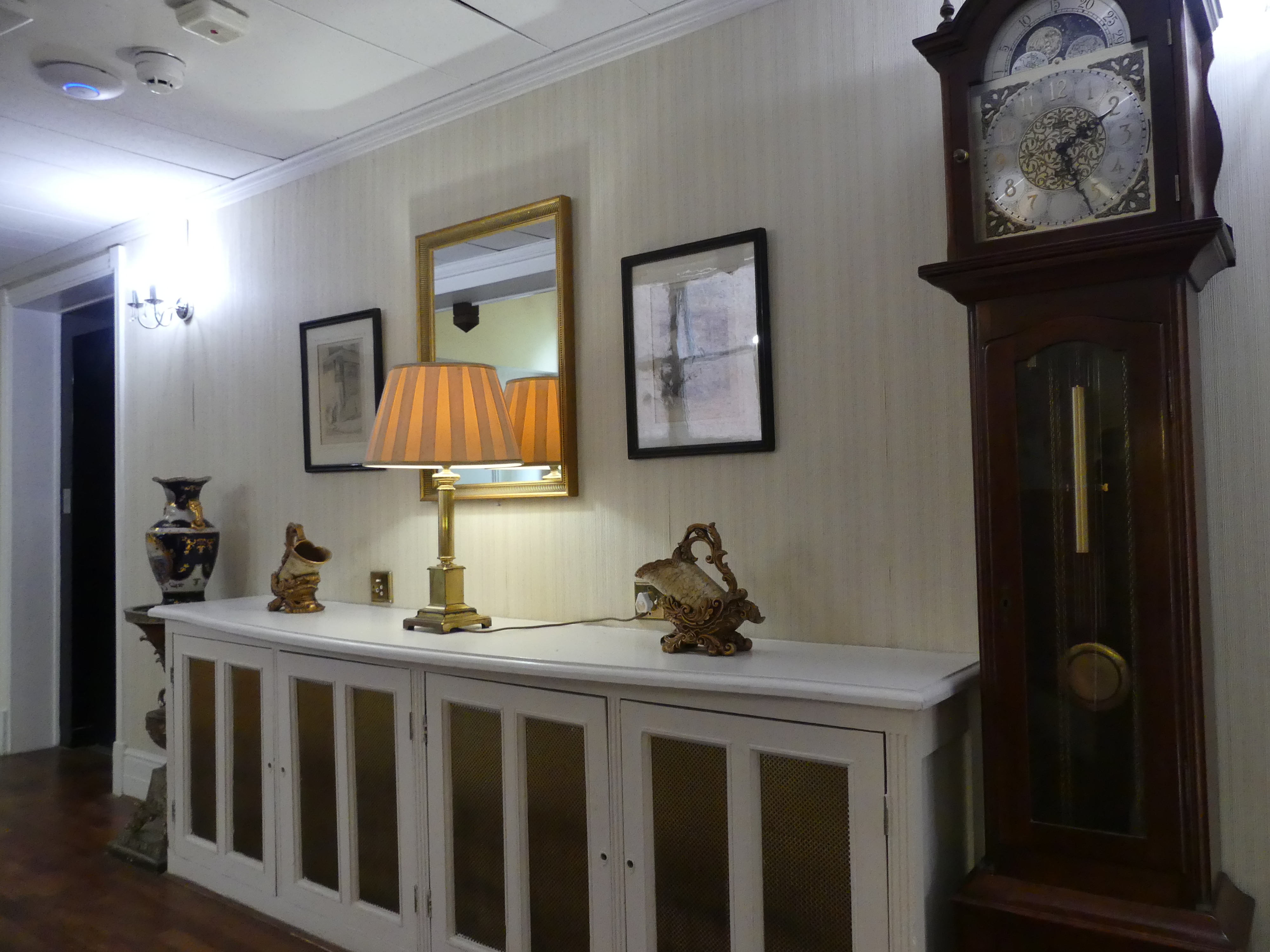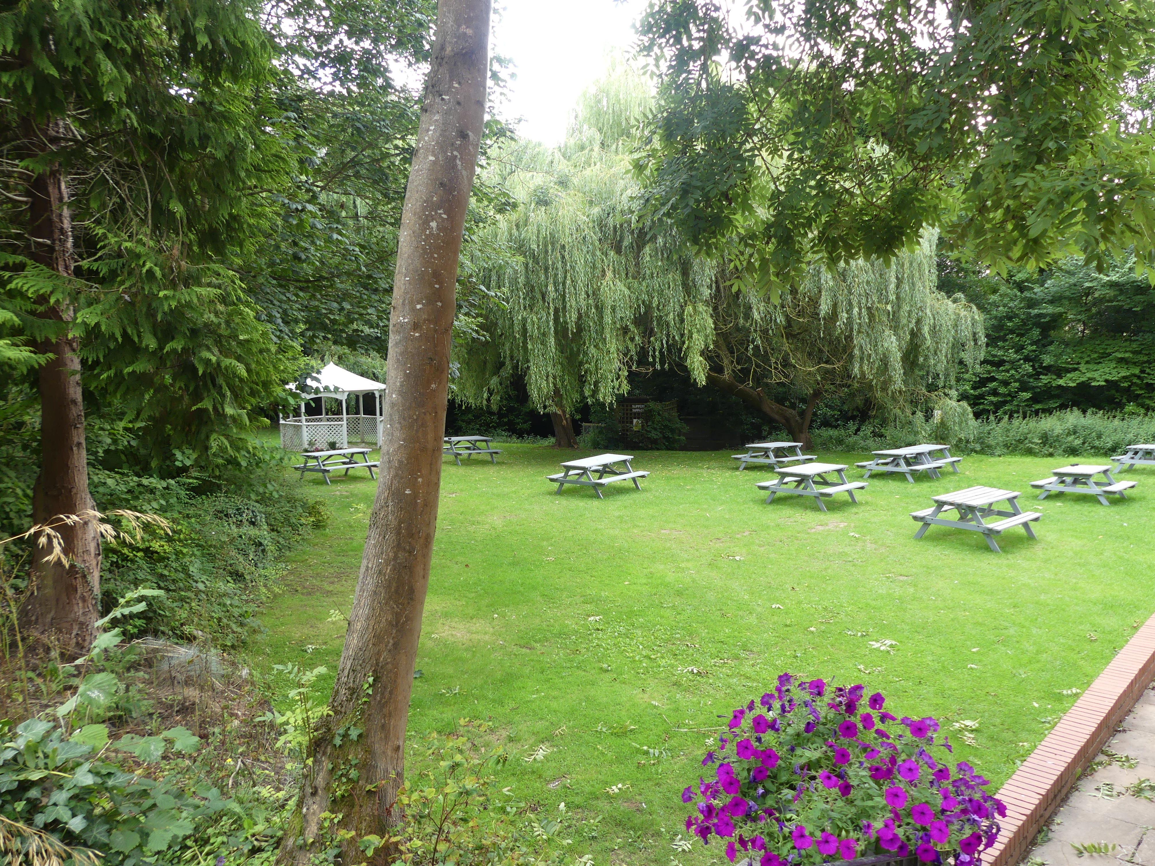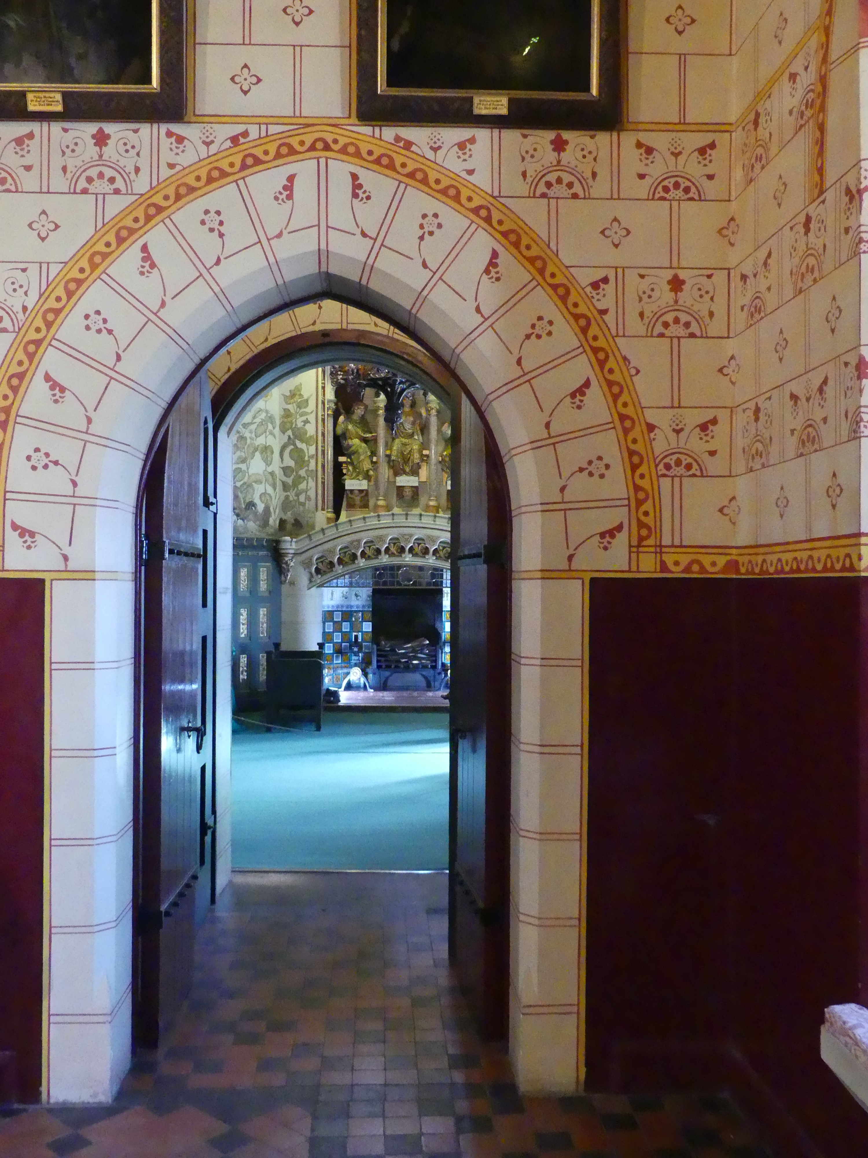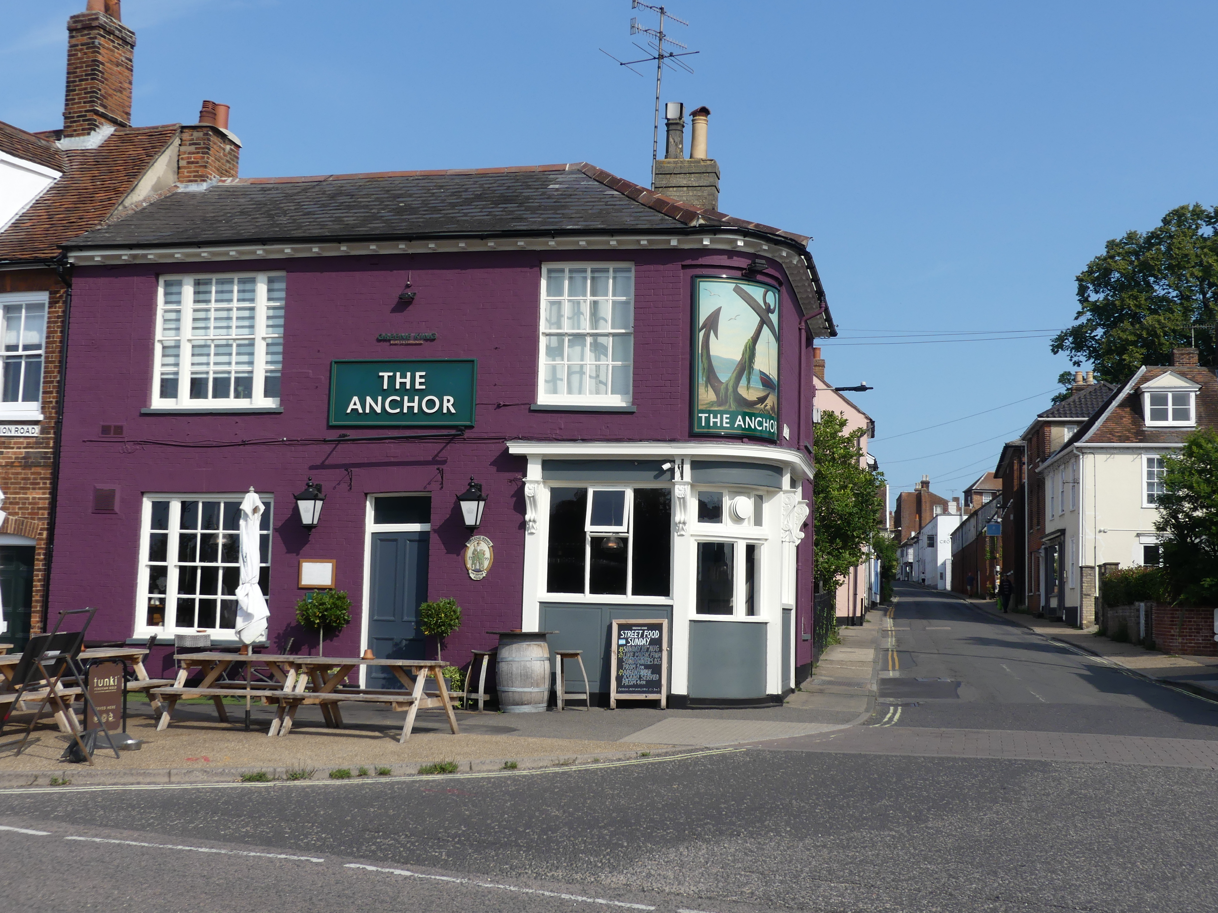 The pictures below take you on that stroll. First is the Priory – now an accommodation hotel but retaining the features of the former Priory with a pair of hares in the back yard. There are some interest wood carvings of a forest gnome, a priory student in cloche and priory guardian. Then there is the pub, a reused telephone box to house a defibrillator, a pretty pub, and the museum entrance.
