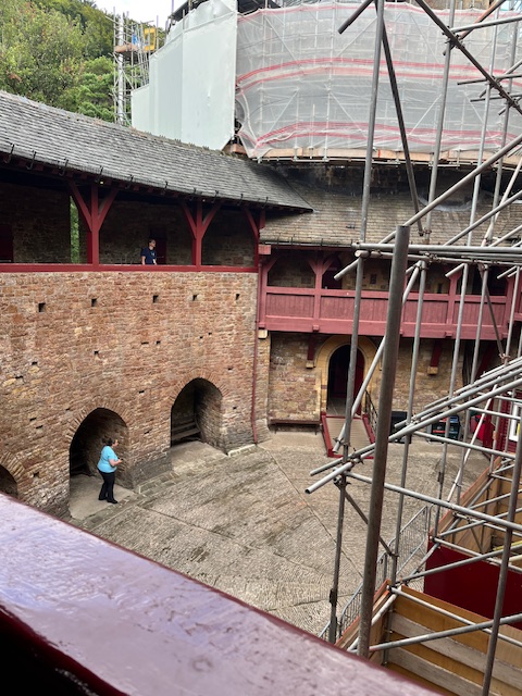 The town is a pretty Welsh village. Entry is gained through a single lane bridge, and the main street is clean and interesting. After parking in front of the site of the Roman Bath House at the back of a very popular local pub, we strolled through the village waiting for the building to open.