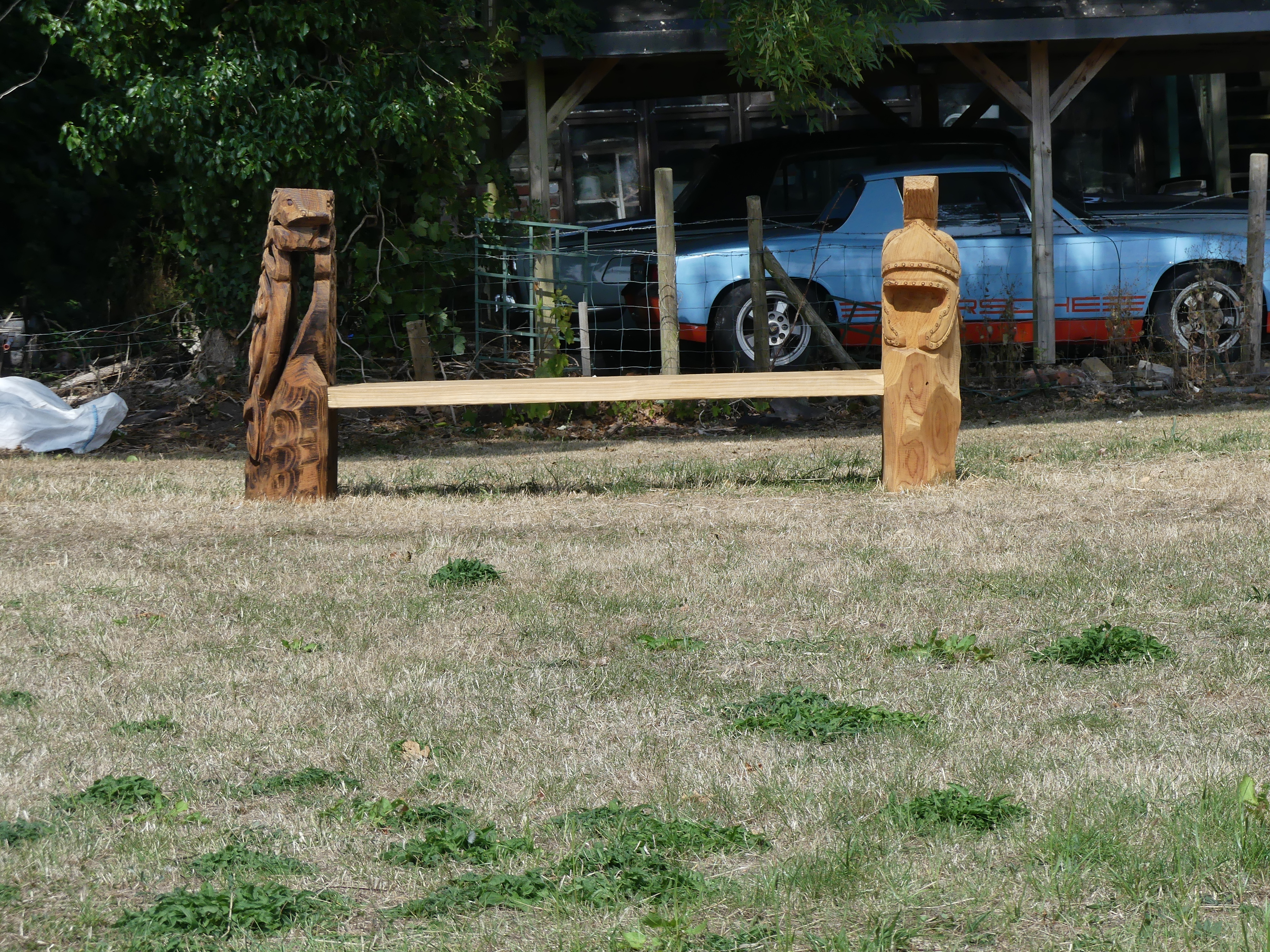 We stopped at the Bull Inn for lunch and encountered Jeremy Clarkson and his farm products. Other things of interest appear in the following photos. St Cadocs’ Church and graveyard. The remains of the Roman amphitheatre and the carvings in the park. An annual event in the village produces these wonderful carvings.