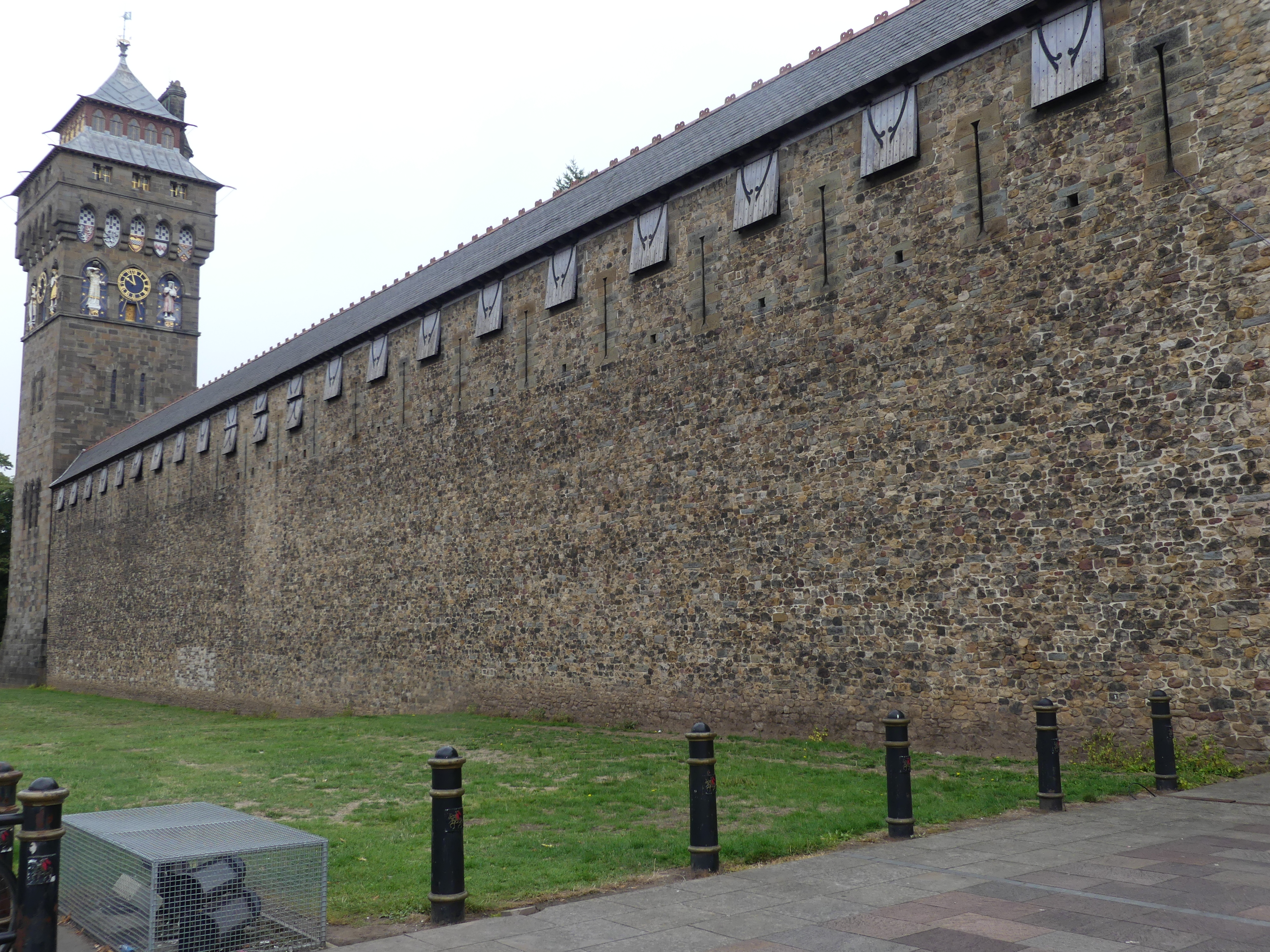 The Landlord had organised a parking permit for us which meant we could park anywhere in the street and Neville Street proved to be a major throughfare to the city centre. We ventured to catch a bus – 3 different routes run through Neville St. So when in doubt ask a stranger on the street. This stranger was very helpful walking us to the point where the city centre was at the end of the second street around the corner from our B&B. The castle wall of Cardiff Castle extends to encircle a gloriously wild park, and the former gatehouse has become a coffee shop – very twenty-first century. There are gray squirrels and standing stones and the western gate that is not used anymore.