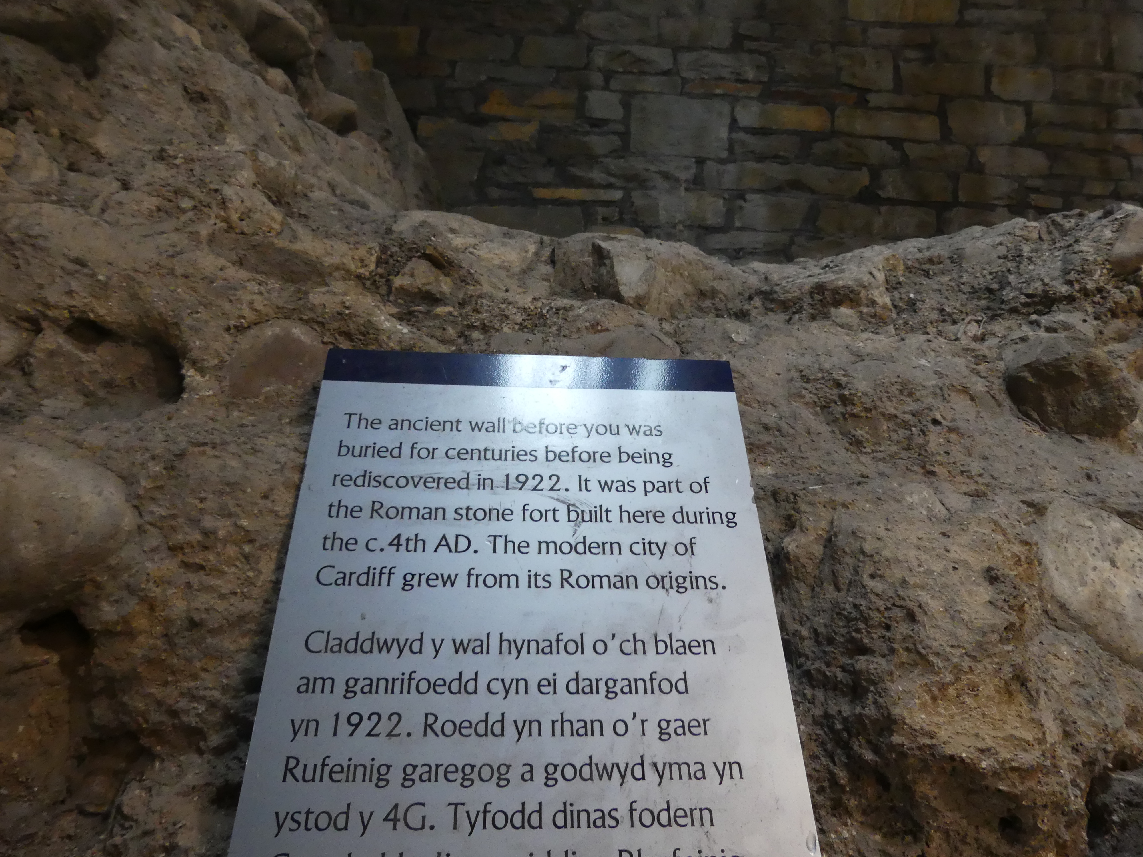 The wall from the gatehouse to the castle is adorned with animal sculptures but at this time I only photographed the twin lions on a gate to another side entrance being used for a wedding. We planned a visit to the castle and this occasion was a general walk around to learn where we might find various things. The castle walls are intact and dominate this part of town. The following day we went on a more formal visit and bought tickets to go inside. The castle is still in use but not for its original defensive purposes but more of a museum. There is a memorial to all the Welsh regiments raised for King and Country from the Welsh population in one basement area. Very comprehensive and explanatory but equally underlining futility of war. There is a dedication to the 7 VC awarded to soldiers in the Boer War for instance. Along with “modern” memorabilia there is a remnant of the Roman occupation in the form of a wall uncovered in preparation of the basement for this military memorial. The inserted sculptures are modern in the form of Roman sculptures around the time of the construction of the wall.