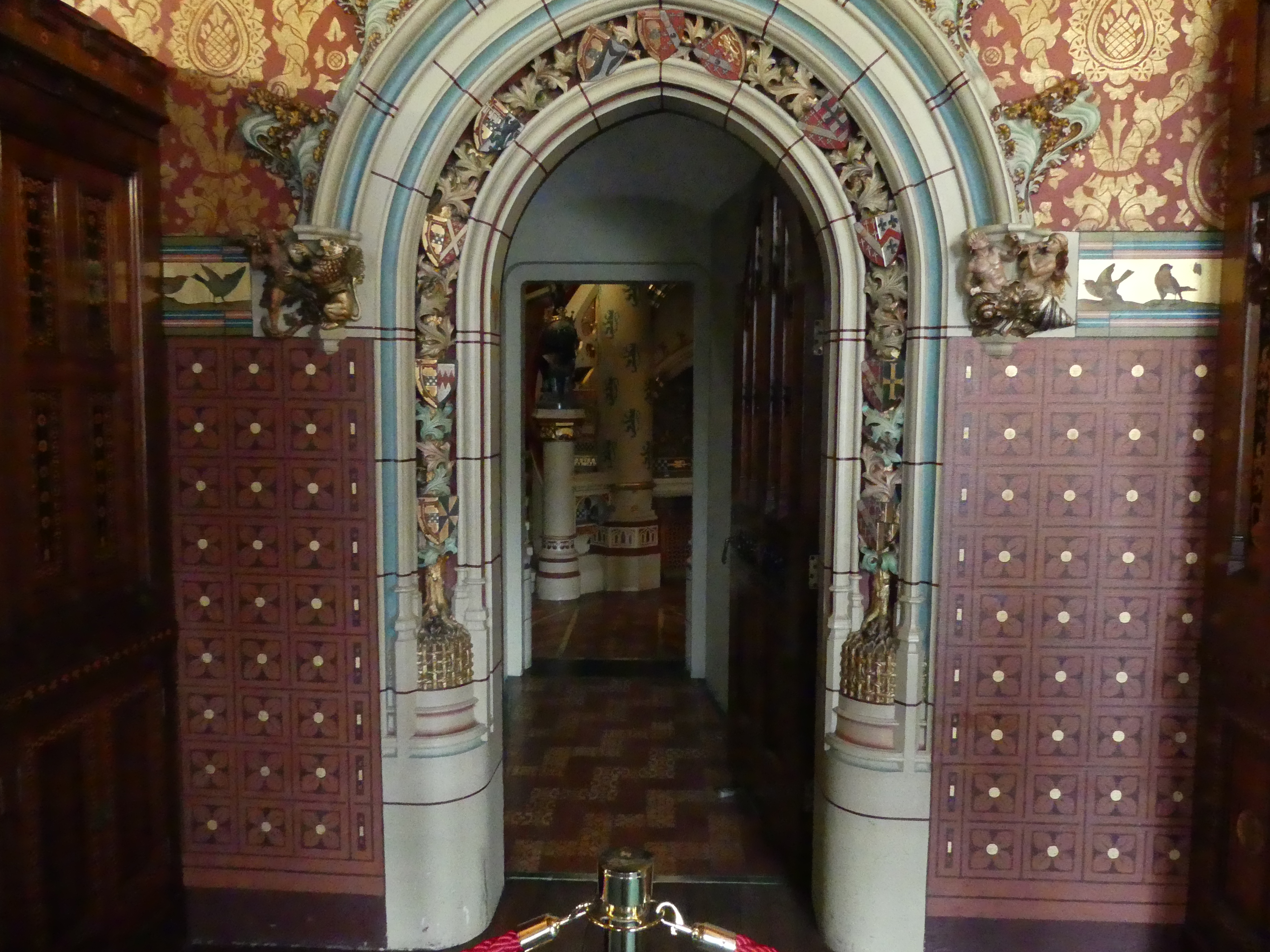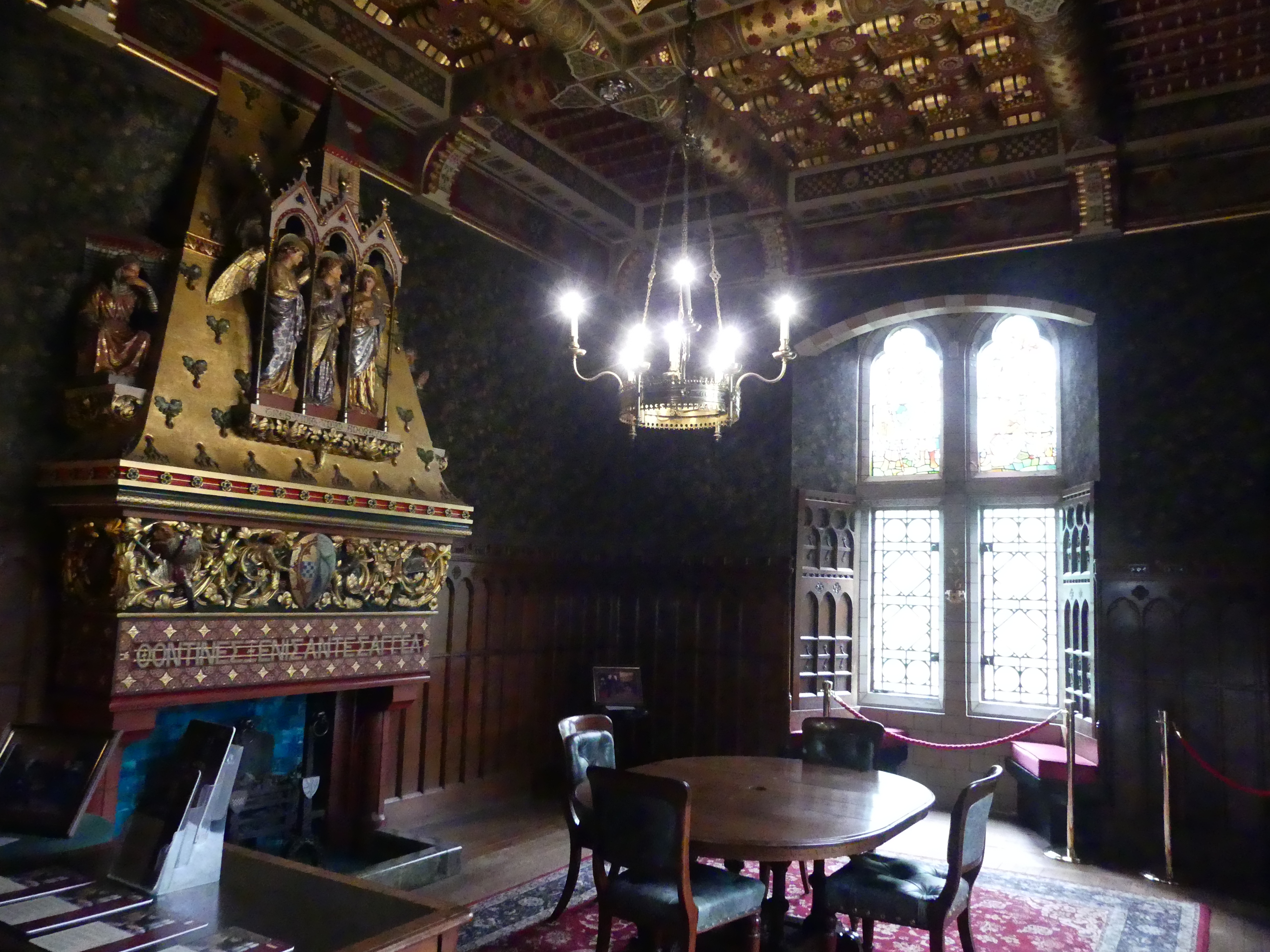 After that sobering visit Kerry found a friend to share his seat whilst I went across to the most ancient part of the castle- the Norman Keep. The sheltered walkways on the walls of the castle have been reconstructed but where they once connected to the much later constructed residence they are not open into the house unless you pay for the tour. Before visiting the Keep, Kerry and I took in the rooms of the house that are open to visitors. They have been decorated in the style that might have adorned the house when first built.