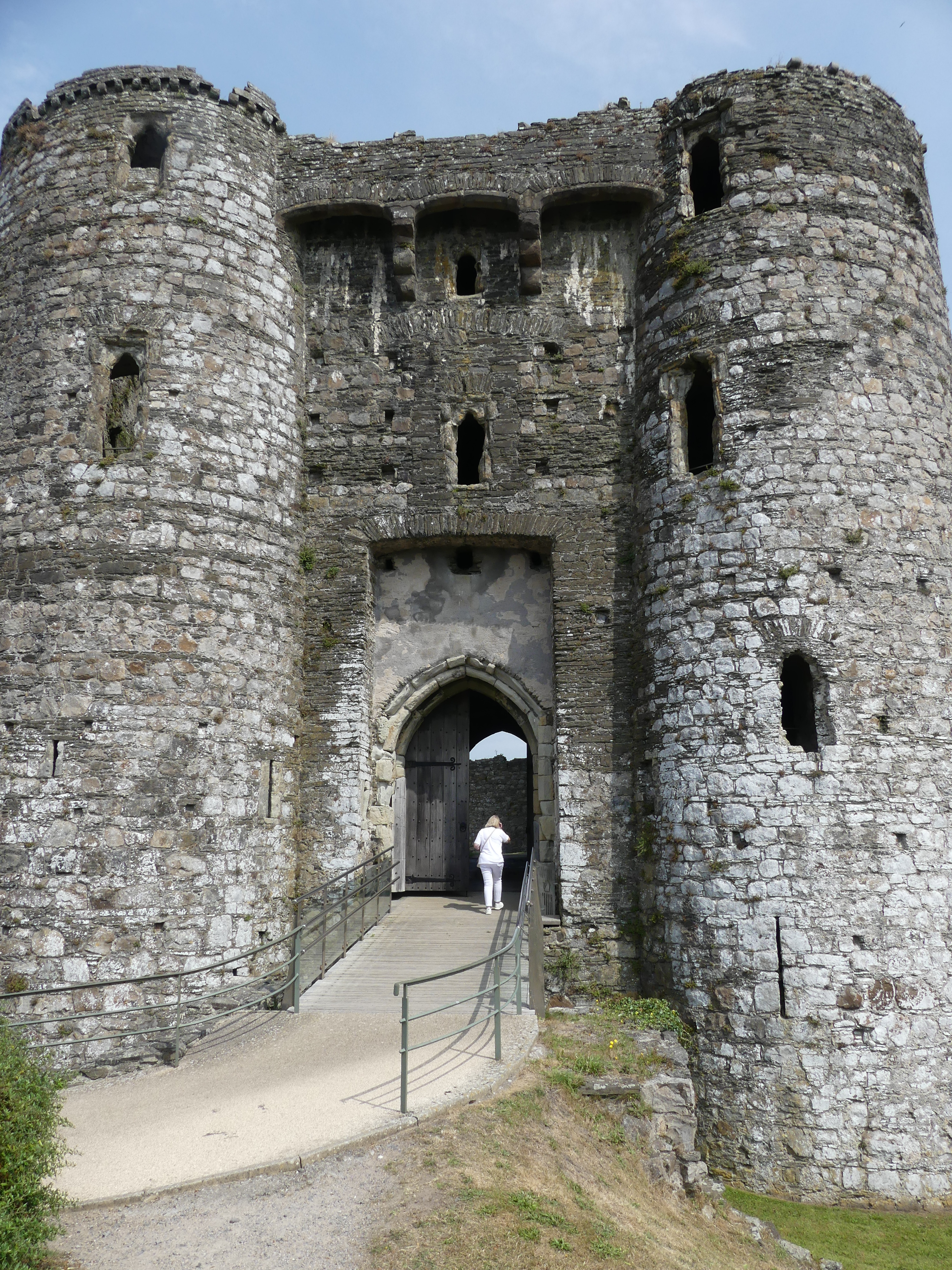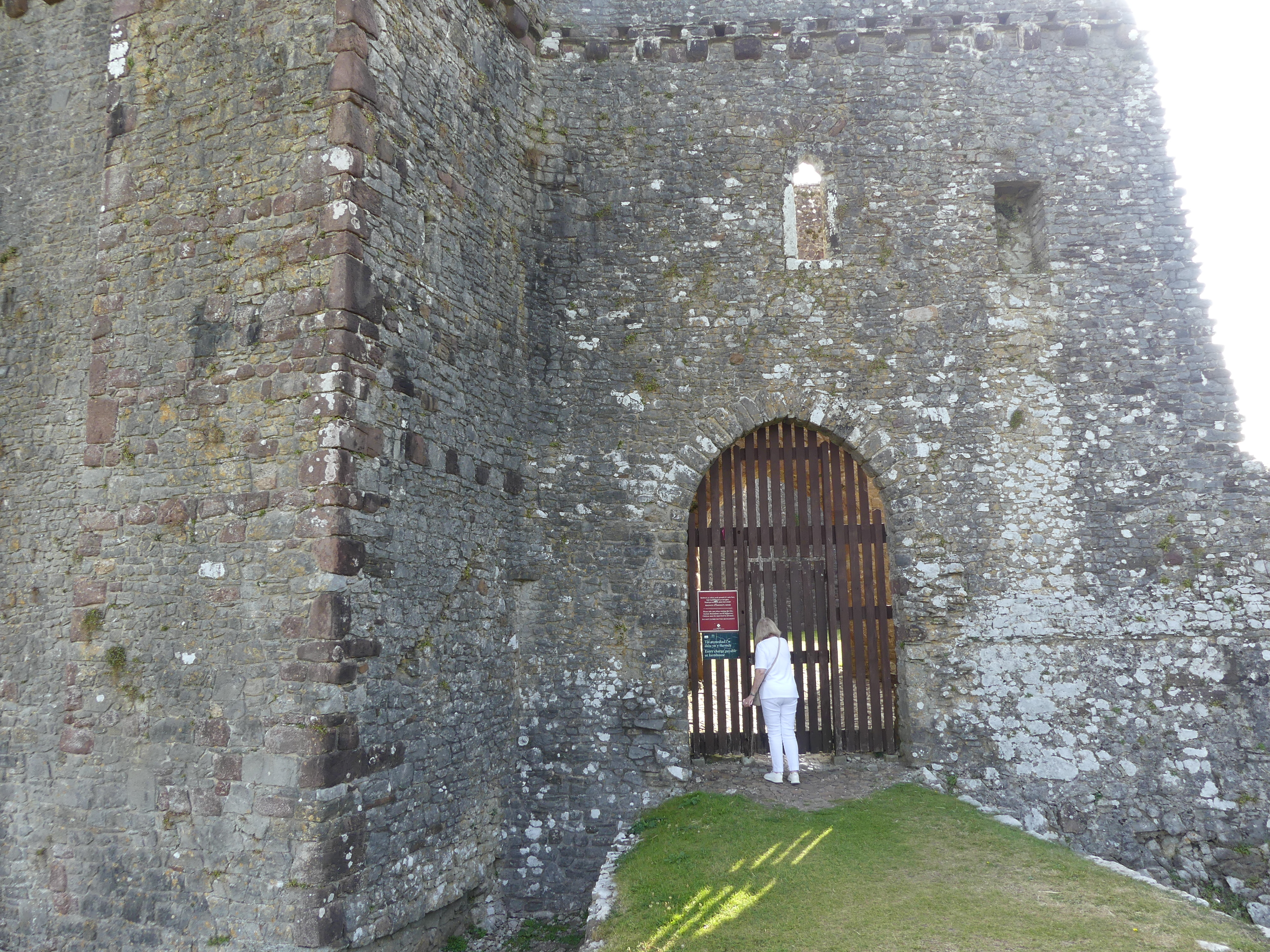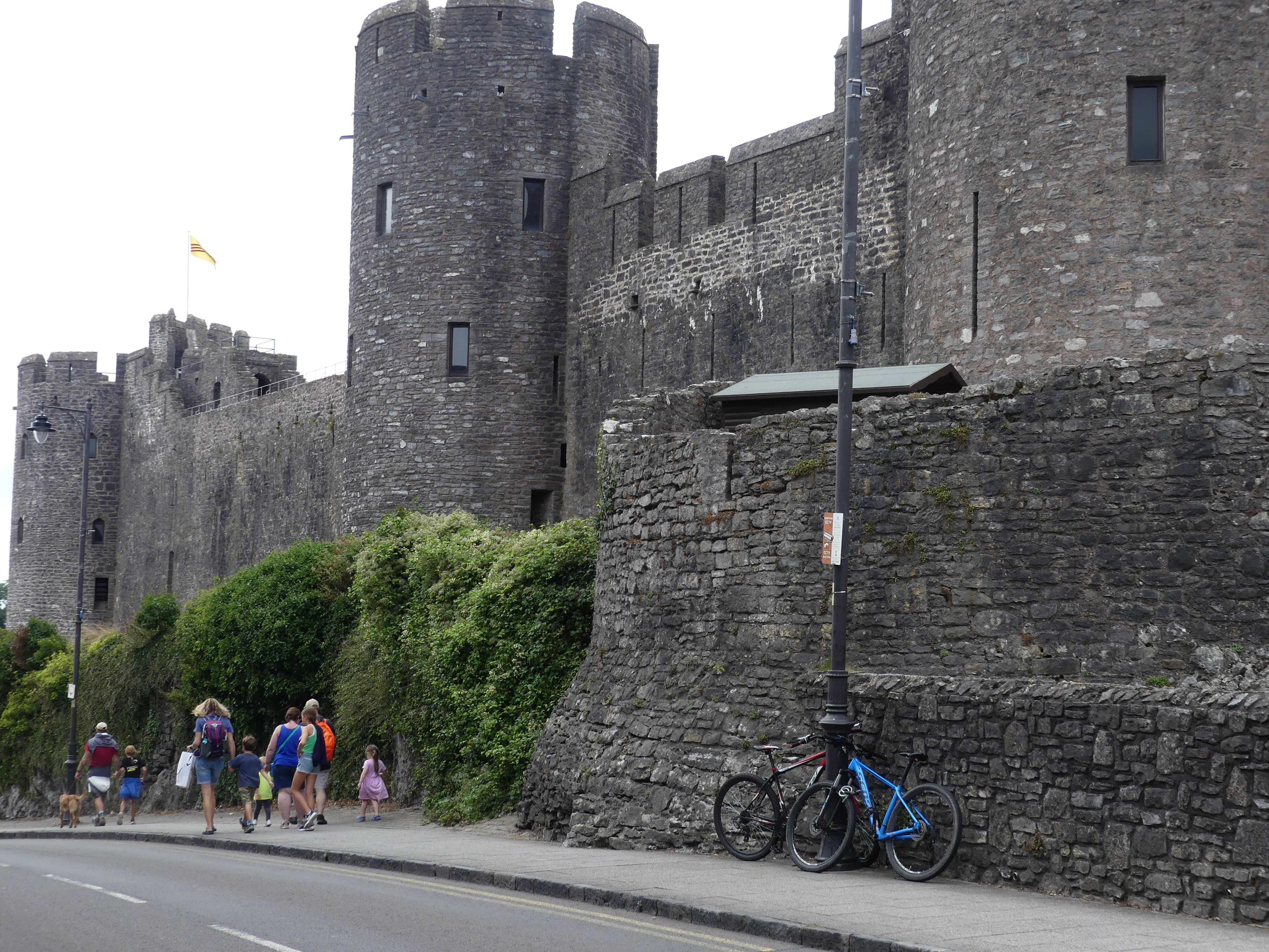 Pembroke Castle is literally around the corner from our accommodation. Kerry had had enough of castles and left me to do what ever I wanted. So I walked around the castle but when arriving at the entrance was daunted by how busy it was and I was feeling that I also had enough of castles. Below is my tour circumnavigating the castle which is the off the High St in Pembroke. The mounted knight is a memorial to William Marshall who served 5 Kings of England. The picture of the barred opening is the former access to the river – you can see this in the picture from 1880.
