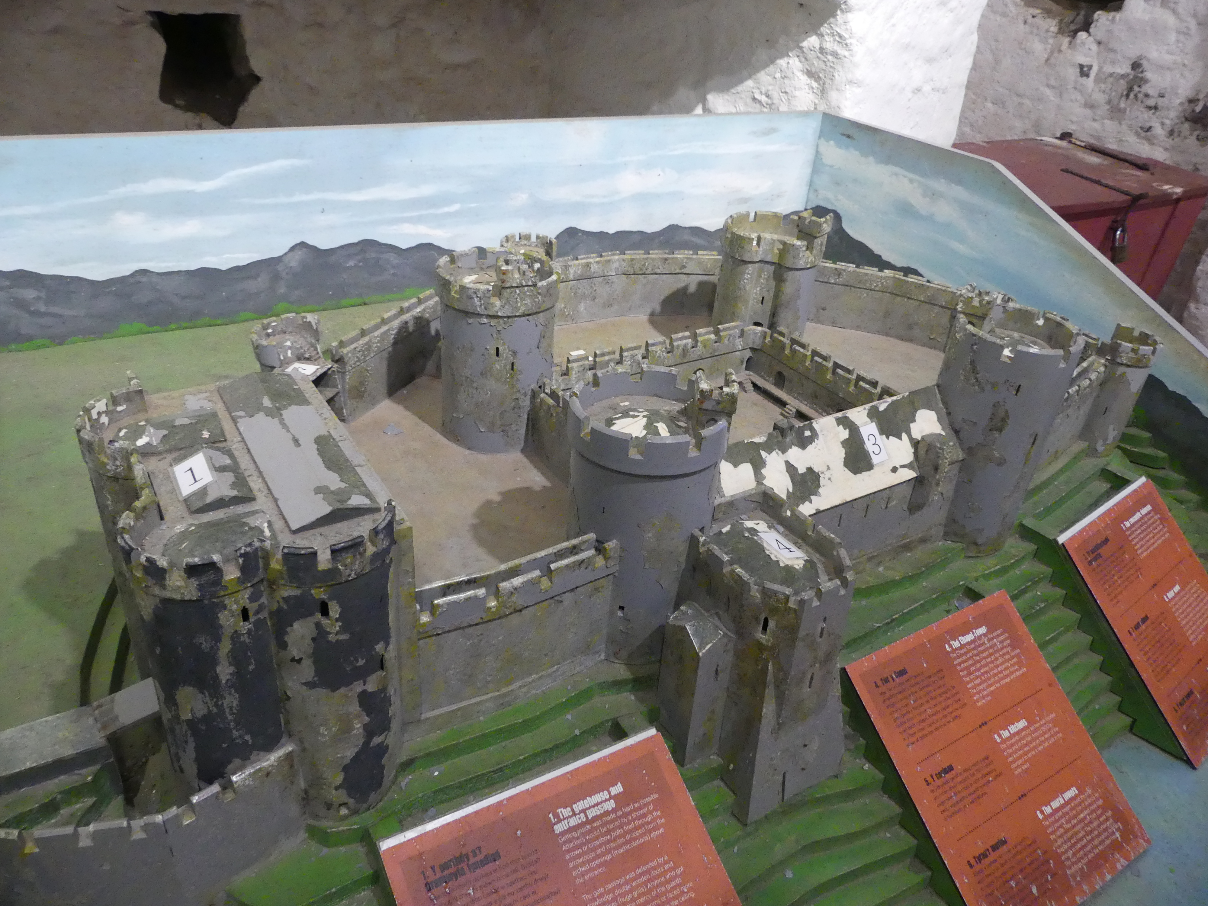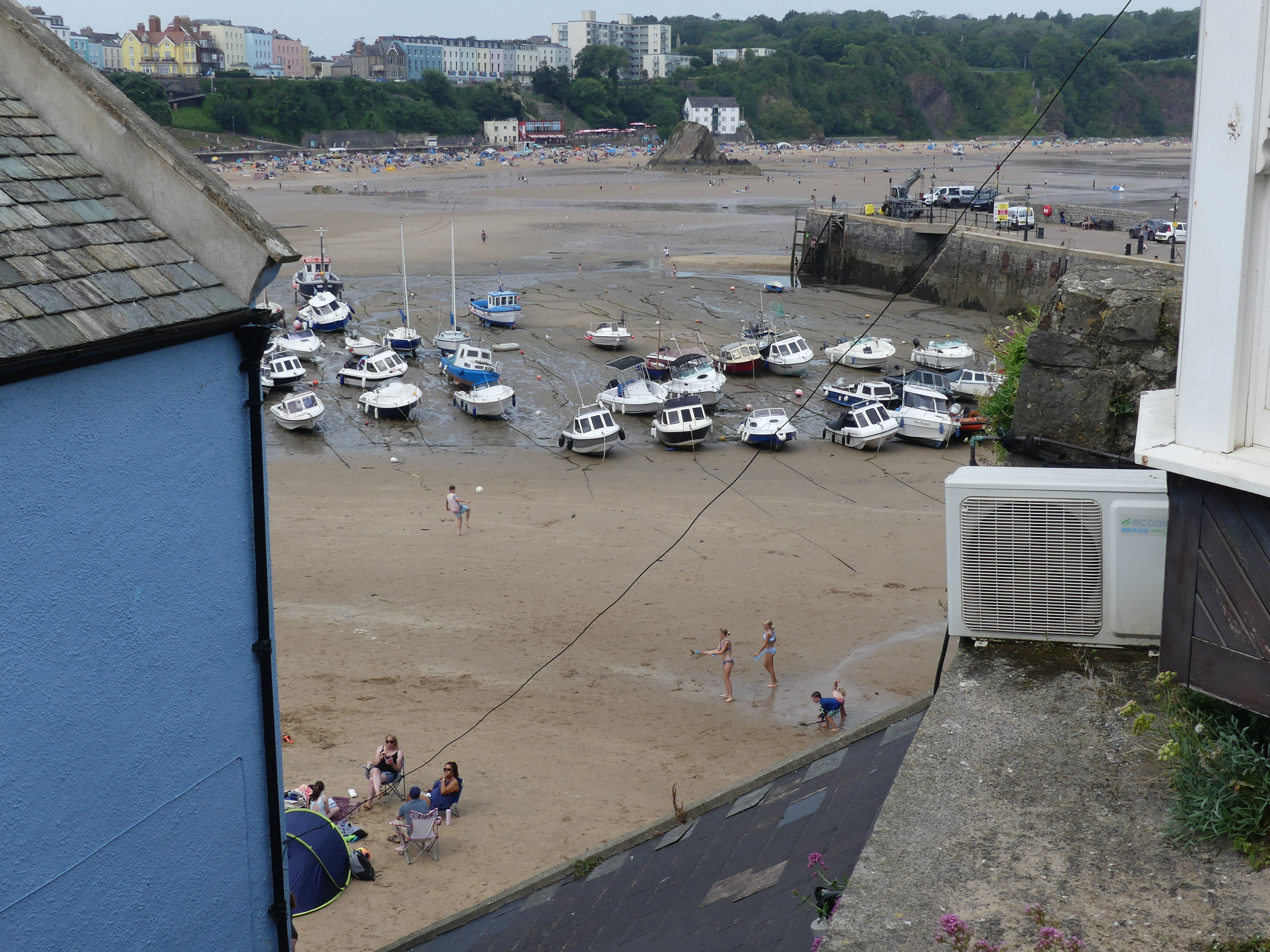 The picture above is Pembroke Castle in 1880 and there is will be more about this castle below. I must admit that writing these blogs gets increasingly difficult. It’s not that the places are forgettable but rather there is so much to tell. The drive from Cardiff was divided into 3 parts with Tenby being the last leg before we struggled to find our lodgings in Pembroke. Our first sight of the beaches at Tenby was very encouraging but finding our accommodation was a task. We knew we were near the Pembroke Castle, but we couldn’t find the number in the street. Parking in these towns and villages always involved paying for a meter and here we had to park and find the property before we could drive to it. Once we had parked the car we walked down to the street where we had rented our lodging and low and behold a small cluster of even smaller flats was sitting under the hill on which the castle is located. It was small inside and close to a noisy road but it was for a few days only so we moved our car and found the key box but the code had been changed. Fortunately one of the neighbours was watering her garden and she helped us contact the owner and obtained the code. We had arrived. The property was about the size of a two car garage with a loft so not a lot of space.