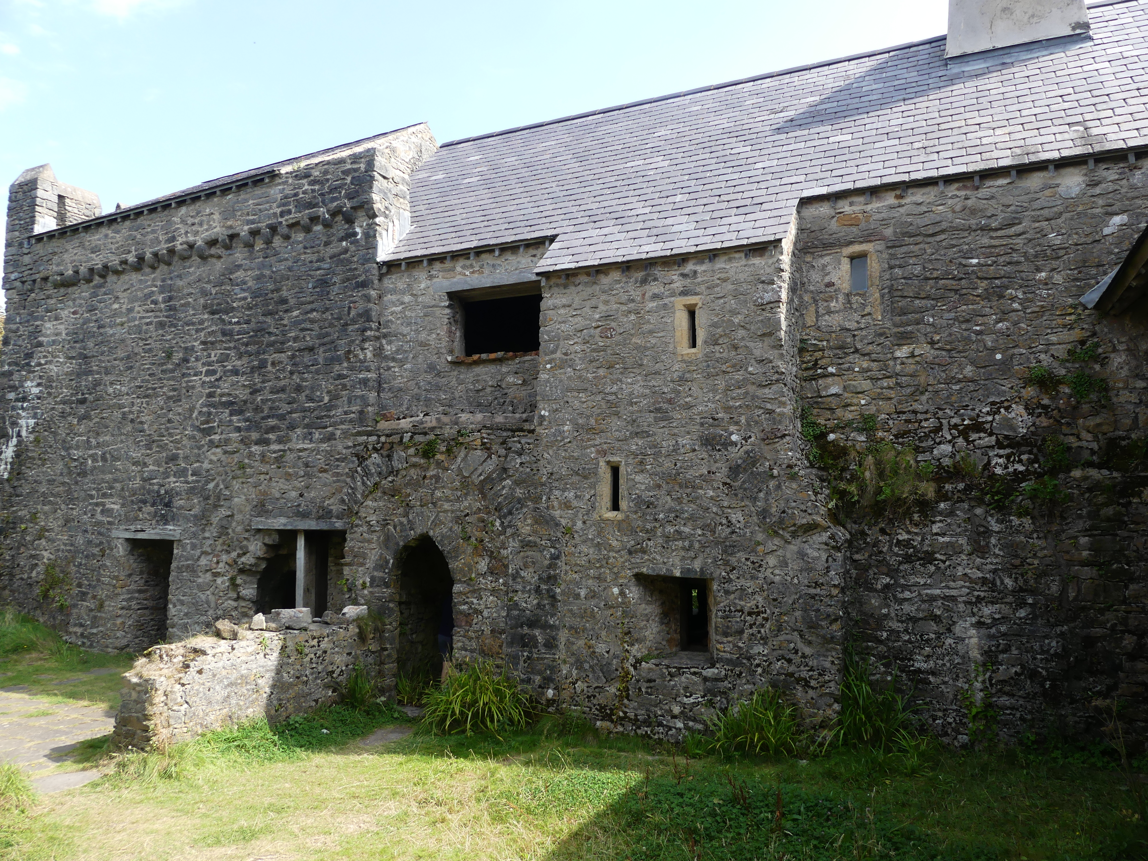 The castle may have once been a fortified castle but it has gradually changed to a manor house and gardens. The gardens are used by the castle owners as a garden centre, café and various other uses. My pictures start with the walled section enclosing the working buildings – the garden centre, book shop, café, the mower museum and the mortuary (the castle was used as a hospital during WW2 when they converted the butchers shop to the mortuary).