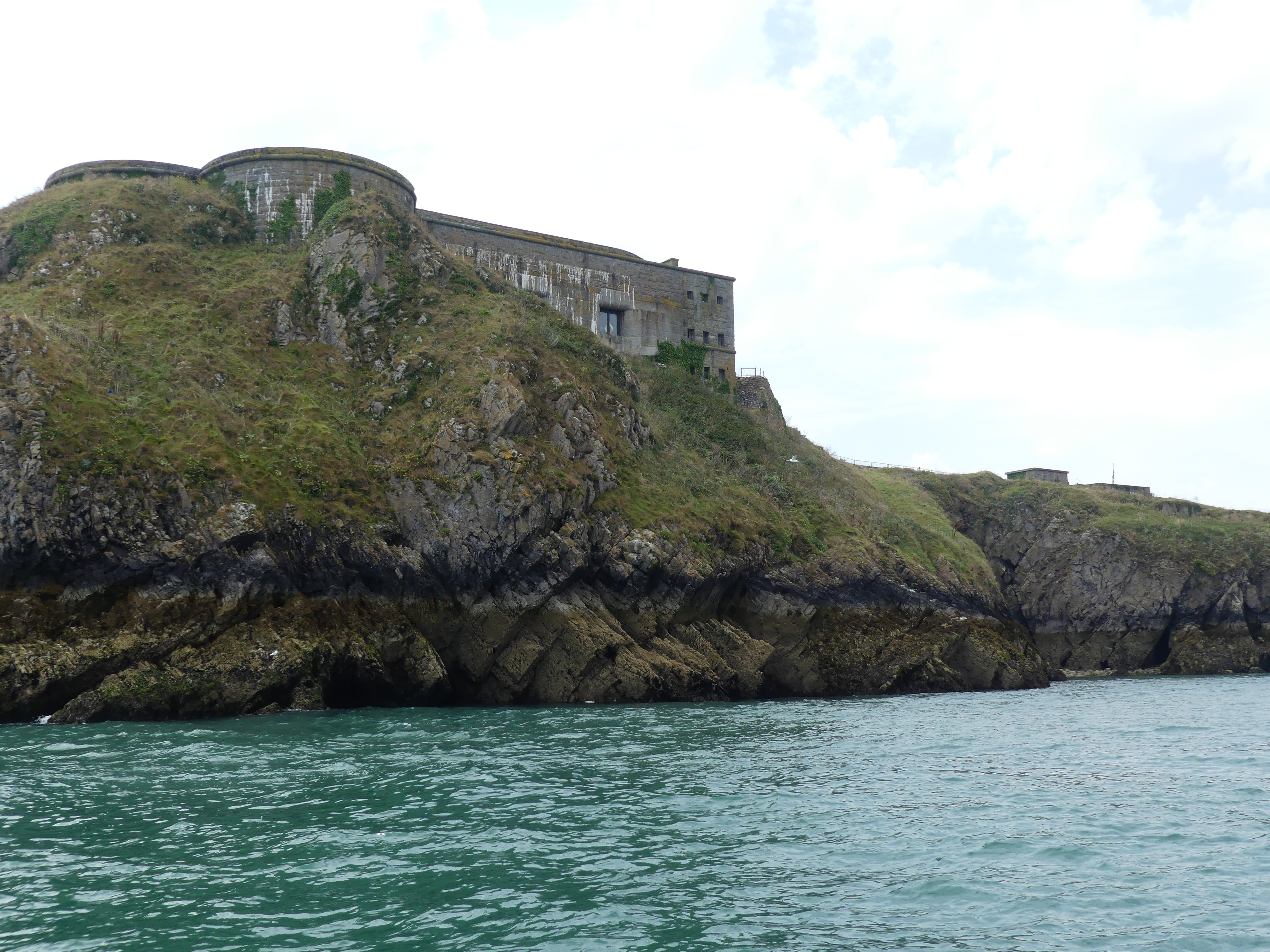 The island had been a retreat for Monks and a teaching facility but whilst this continues the island is now a retreat for everyone and we were not alone on the boat. My first photo below shows what the Monks have been doing in their spare time – decorative chairs for visitors and as you walk further onto the island you encounter the monastery, and the Monks quarters a café gift shop and post office. Whilst we had a coffee, I spotted some local wildlife – a partridge and her family running through he grasses on the edge of the open ground where the visitor could rest eat and drink their lunch. The tourist information informed us that there was a lighthouse on the island but not where it was located – its on the seaward side of the island on high cliffs. We were not certain that we would make the distance however halfway there were ruins of the monastery and by the time we had reached and looked through them we could see the lighthouse and thought “that’s not too far”. My pictures below show the ruins and the walk to the lighthouse the lighthouse and the general view of the seaward side of the island.