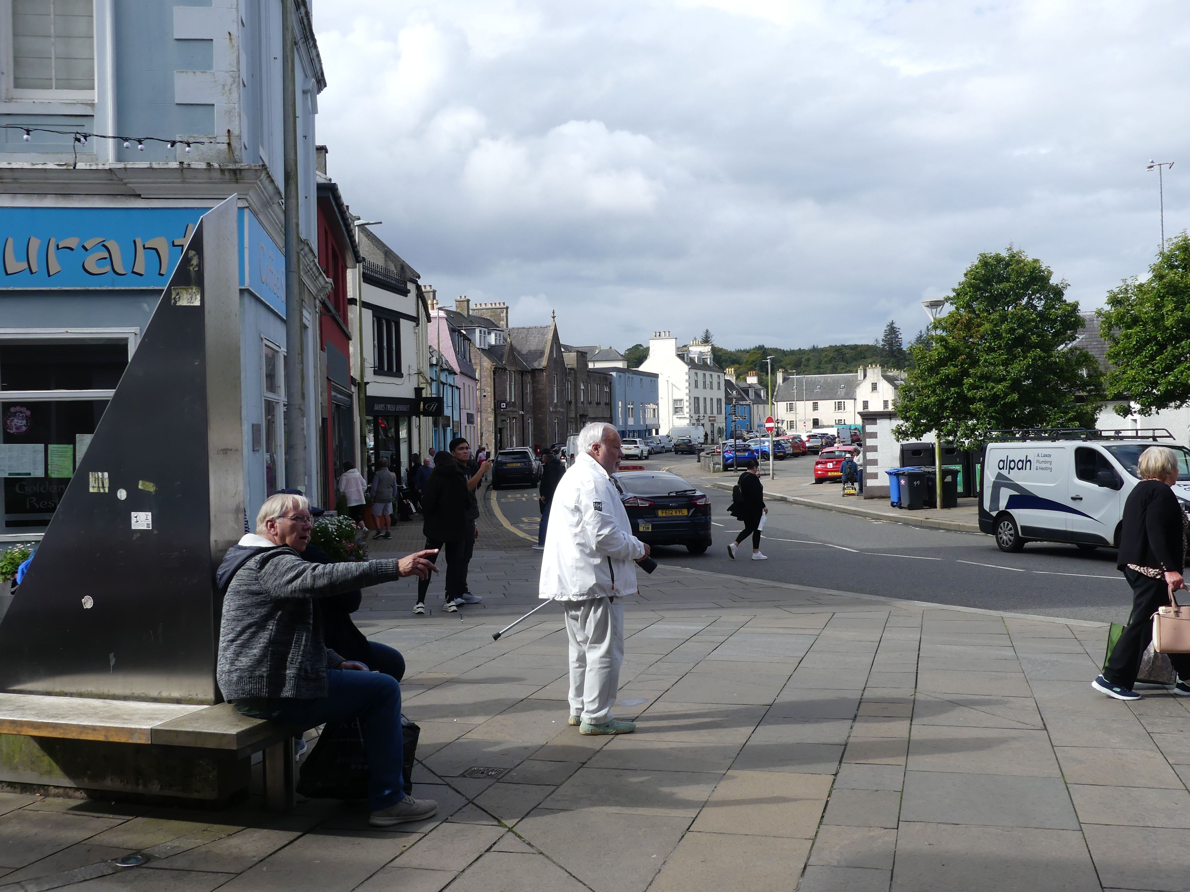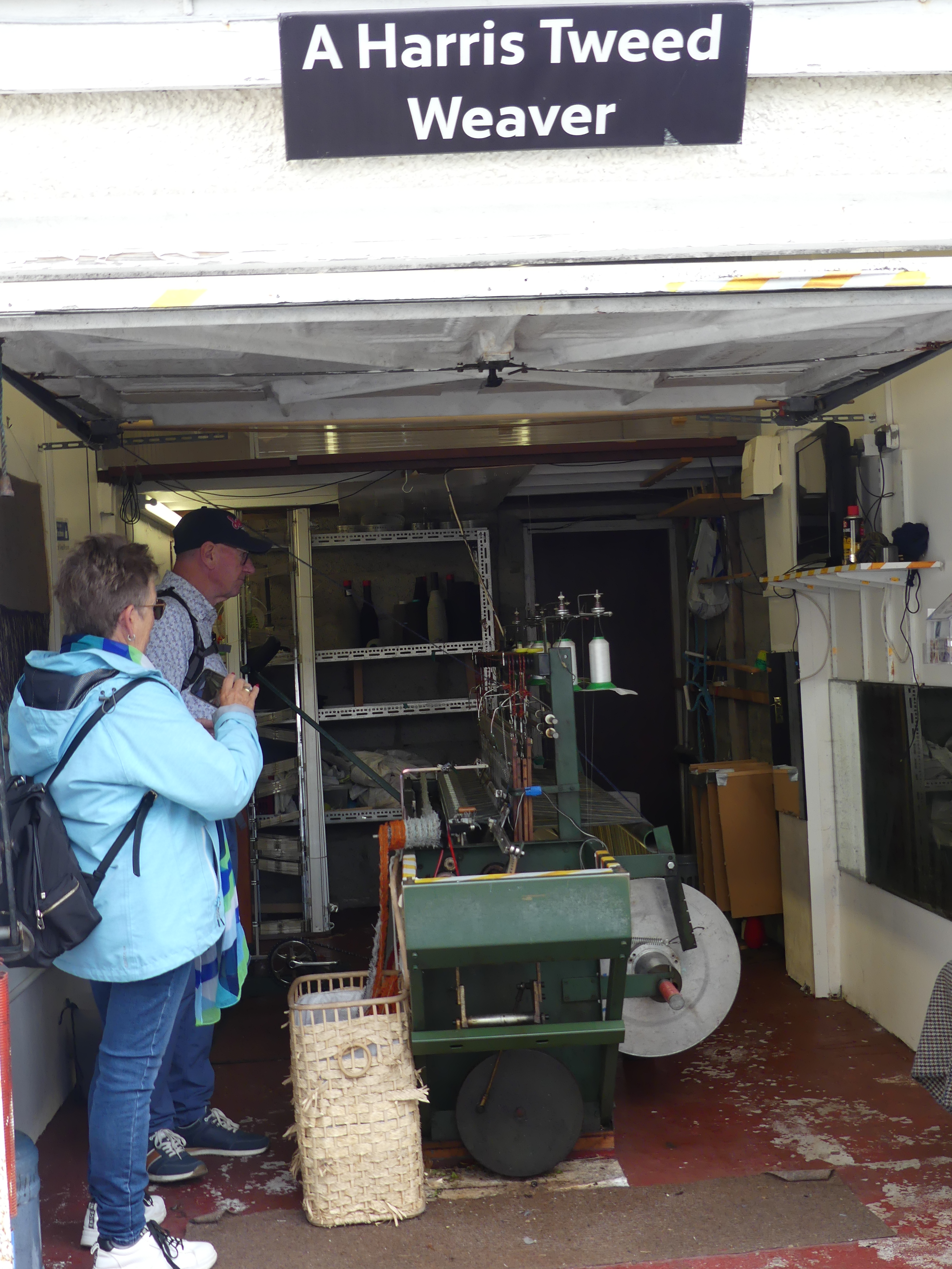 We moved into some the semi-residential areas just on the edge of the town and discocered tha Harris Tweed weaver working in his shed (former garage attached to his house – not really a throw back to the shed outside the croft). And we found a reminder of home – the Foodbank office (Rotary obtains prepared meals for its Community Table in our Senior Citizens Hall kitchen with the meals being provided by FareShare at Morningside heated, packed and delivered by Rotary Brisbane South-East). We also found a memorial to soldiers lost in war and another stylish memorial chair as we saw in Kirkwell.