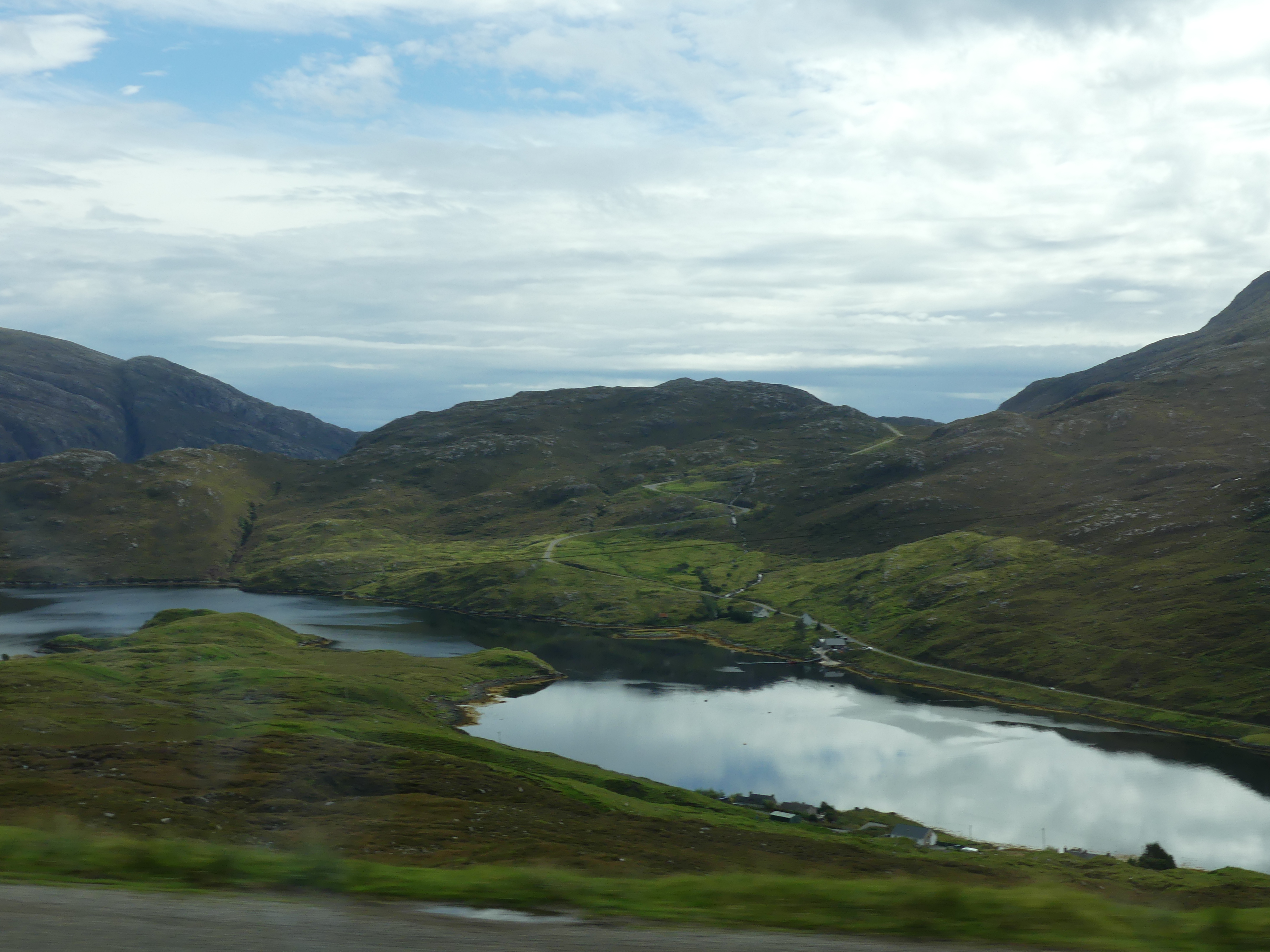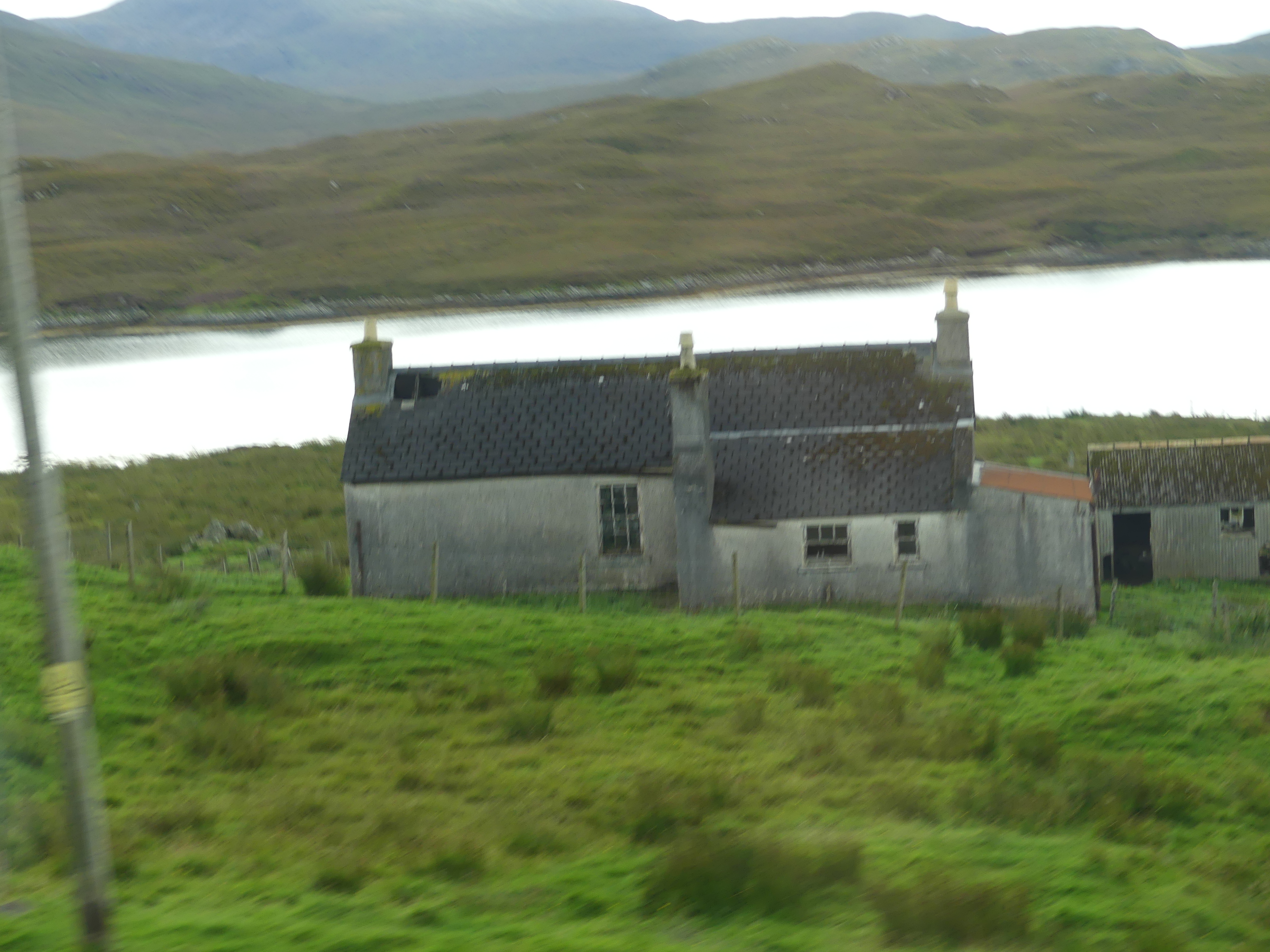 We also found the Sheriff Court and the bus station. We had decided that we would take the local bus over to the township of Harris. It was not difficult and they buses ran fairly regularly. Leaving Stornoway we passed the gate to the castle and soon we were into the countryside. Remote and wild, it took sometime to cross the island