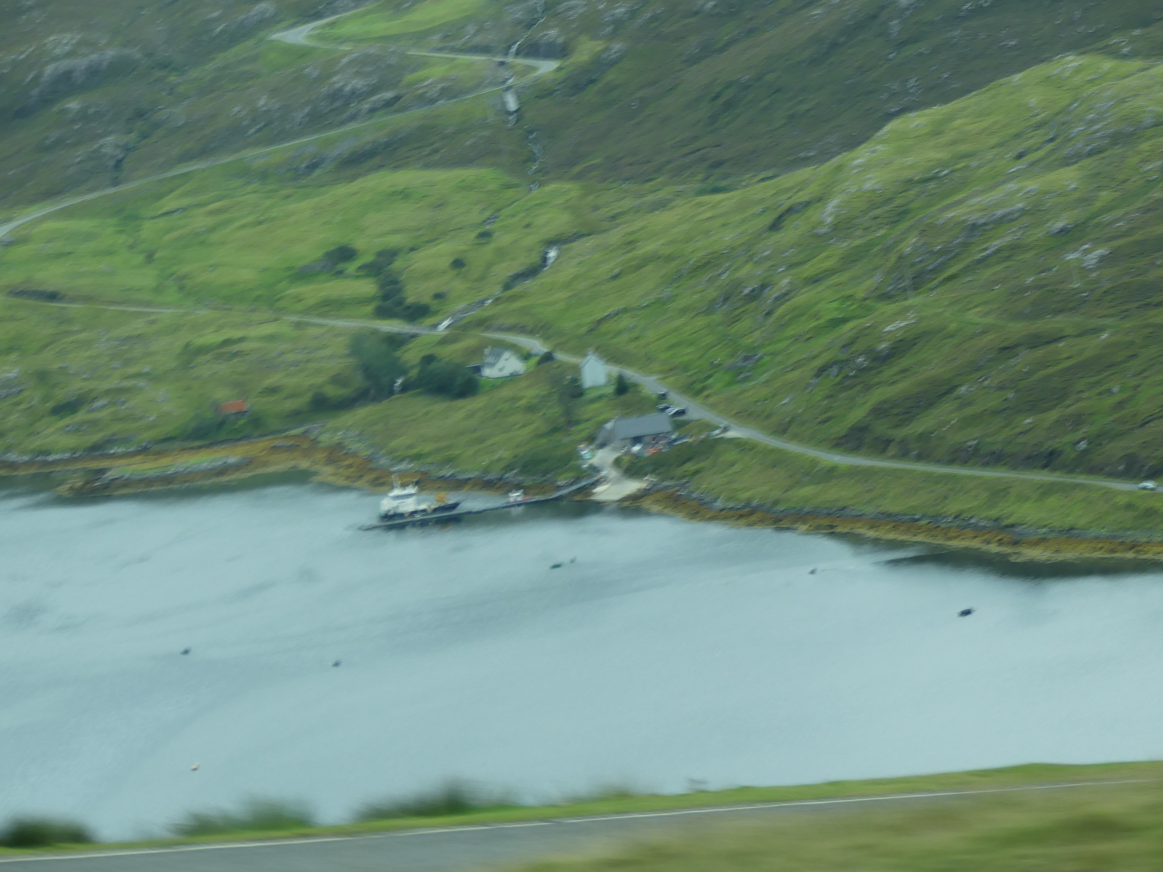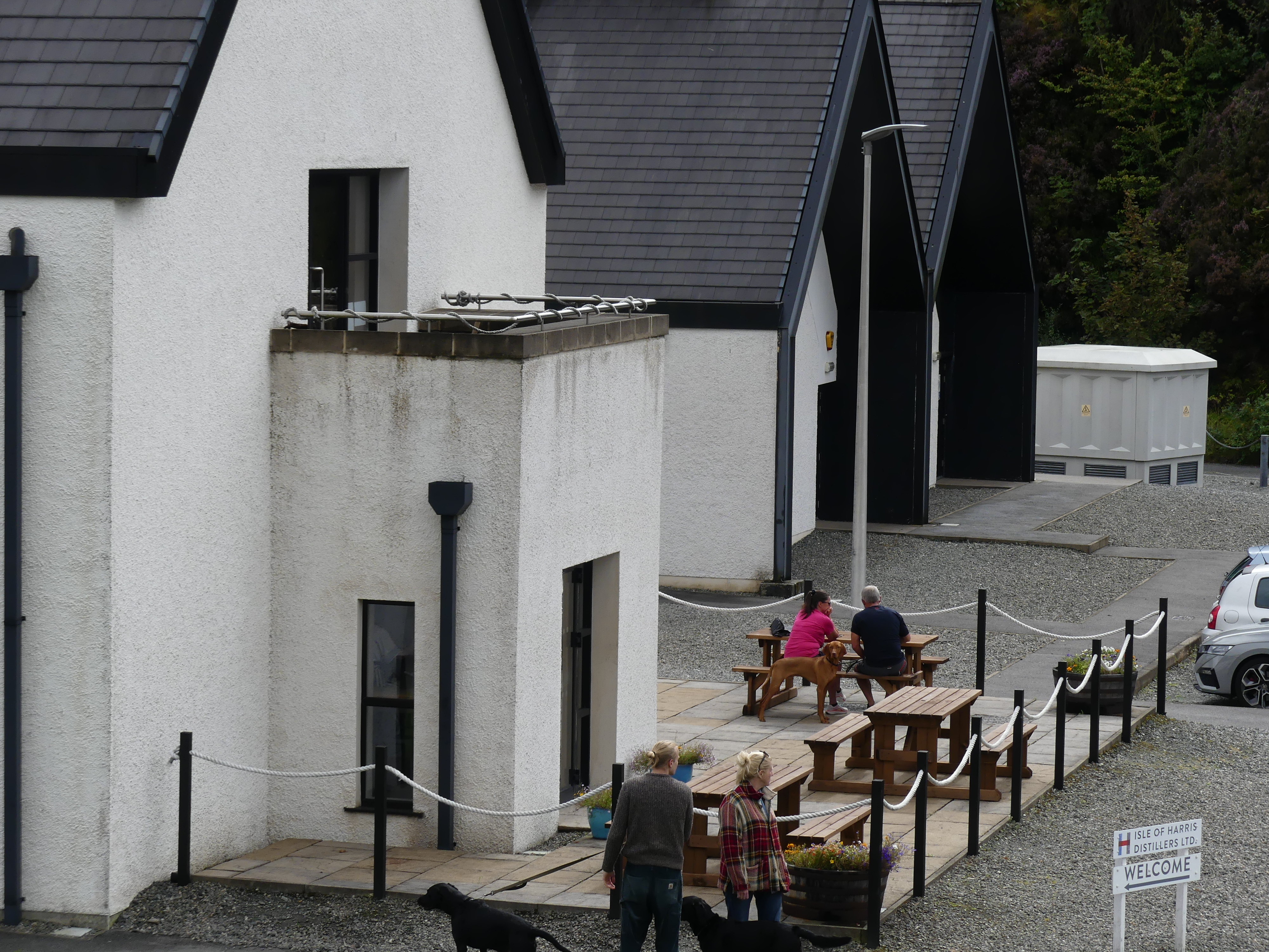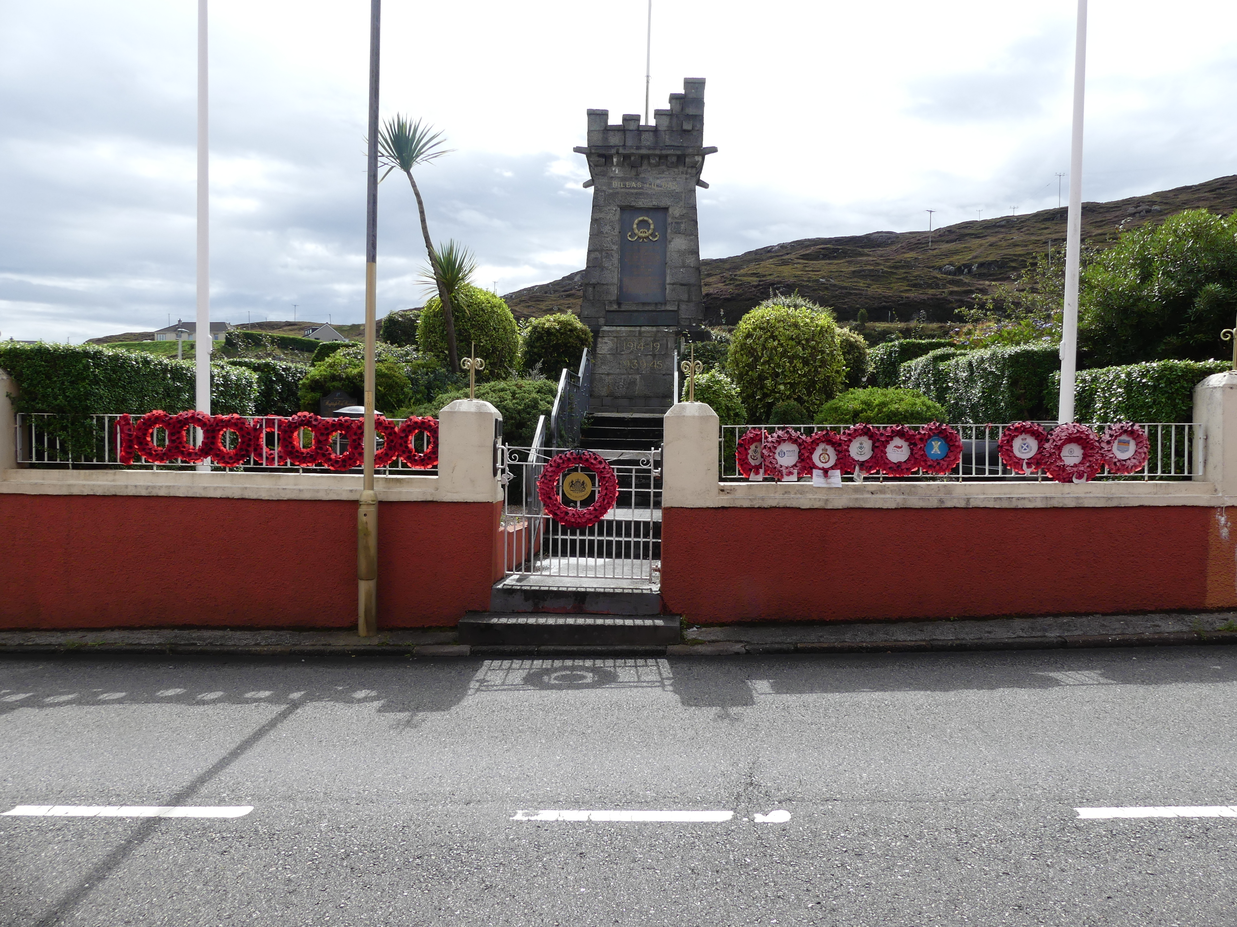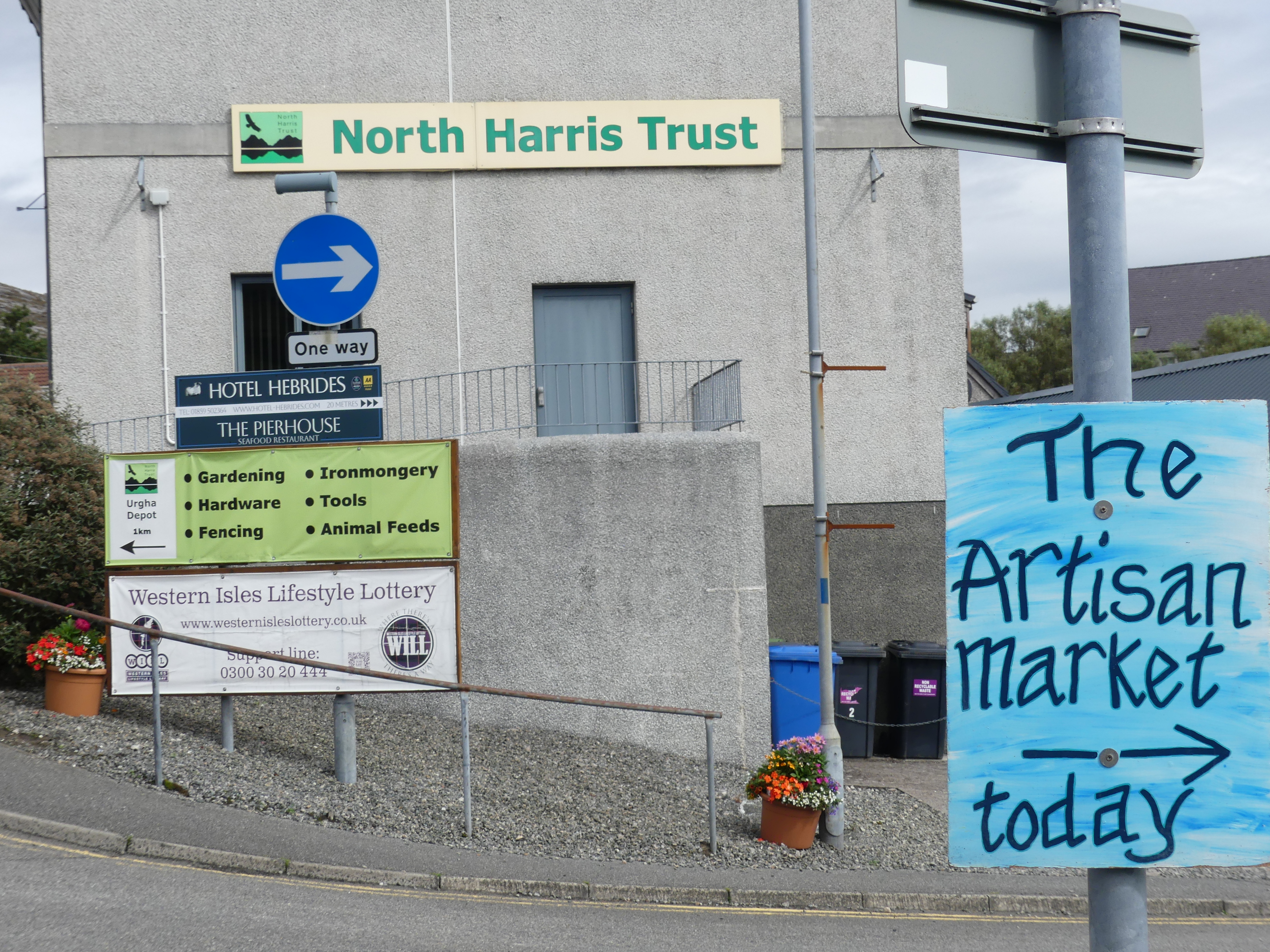 Just as we were beginning to lose hope that we would get to the terminus, it happened – we arrived in North Harris. Perched on the side of a hill over an inlet the village of North Harris was celebrating with an Artisan Market. Set up in the community hall all the hand made crafts to be found on the island were on display. The first stall had wool not pulled into any shape but we had seen the off cuts in the Weavers shed. The stall holder told us she was having trouble obtaining the offcuts due to the decline in small weavers. As it happened I had picked up the business card for A. Harris Tweed Weaver in Stornoway and I passed it onto her. Not only was she grateful but couldn’t believe that a tourist knew more than she did on her subject. Other things of note were the inlet below, the war memorial perched on the very edge of the rock face of the inlet, the distillery and lighthouse below. Not a traffic light to be seen in the village.