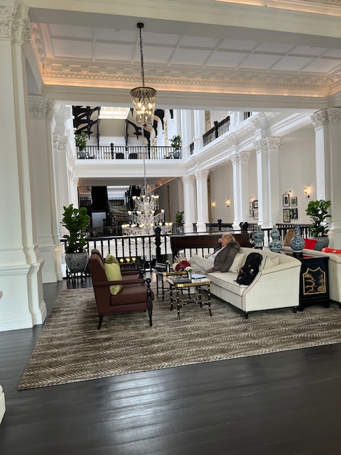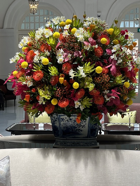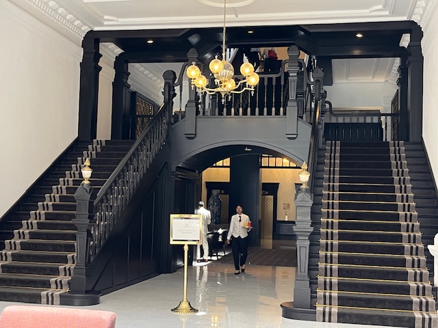 The entrance was grand with a huge chandelier and flower bouquet. Beyond the back staircase is the reception room – guests only no visitors allowed. Leading off the entrance foyer was a dining area and the “High Tea” service area. Kerry had this itch and desire for a high tea and as high teas go it was expensive but exquisite. After our high tea we moved to the relaxing lounges on the floor above .