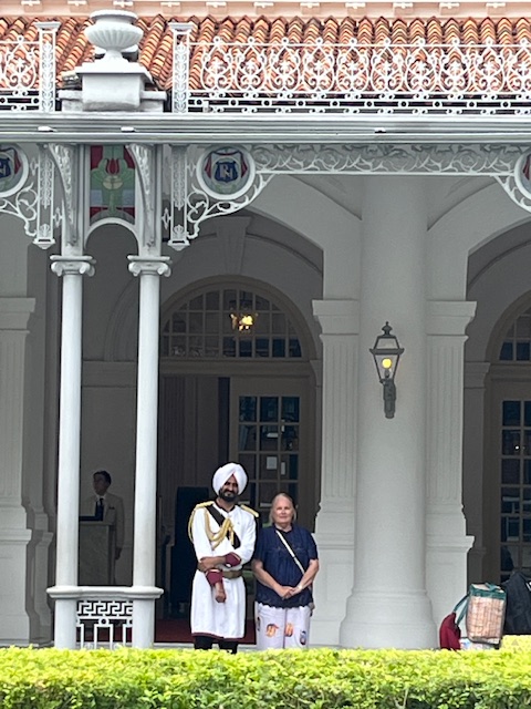 Day 4 and we start preparing to check out Park Royal Collection Hotel and make the move across to Raffles Singapore. We caught a cab even though the hotel was nearby. We did not feel like dragging our luggage in the heat of the day. Arriving at Raffles we were met by the traditional Sikh Doorman at the front door of the hotel and shown inside to the reception office. Our room was not ready so we decided to check out our home for the next 2 nights.