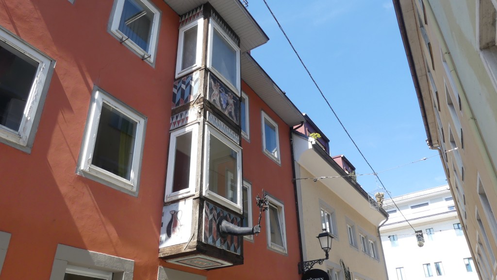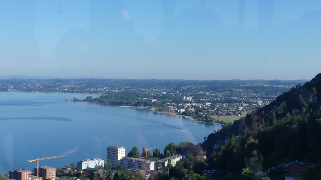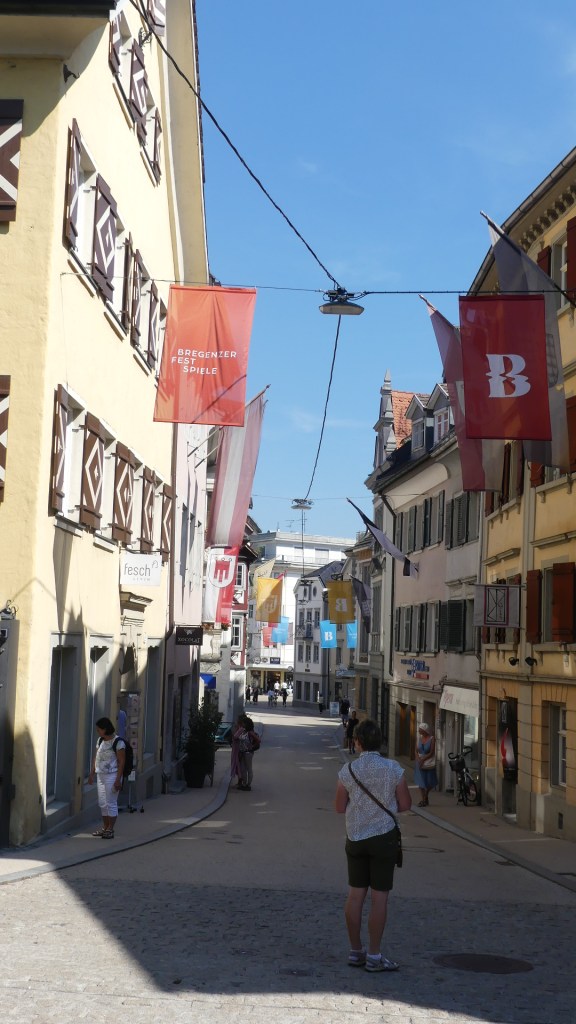 Bregenz is on the banks of Lake Constance Europe’s 2nd biggest Lake and the lake is the border for Austria Germany and Switzerland. The Austrian and Swiss Alps run up to the lake so Bregenz has Pfander mountain at its back. For our first visit to the city/old city we started with the board walk along the lake to the boat terminals and then walked to the cable car to ride to the top of Pfander.