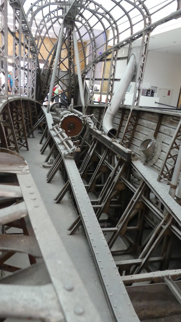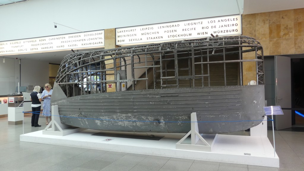 After docking we walked around checking the place out when we came upon the Graf Zepplin Museum. The Zeppelin Museum Friedrichshafen is there because Friedrichshafen is the birthplace of the Zeppelin airship. The museum houses the world’s largest aviation collection concerning dirigible airships and chronicles the history of the Zeppelin airships. In addition, it is the only museum in Germany that combines technology and art. The museum has been in its current location at the Hafenbahnhof (harbour railway station) since it was reopened in 1996.