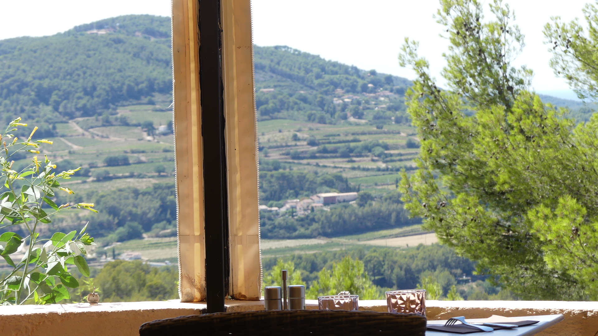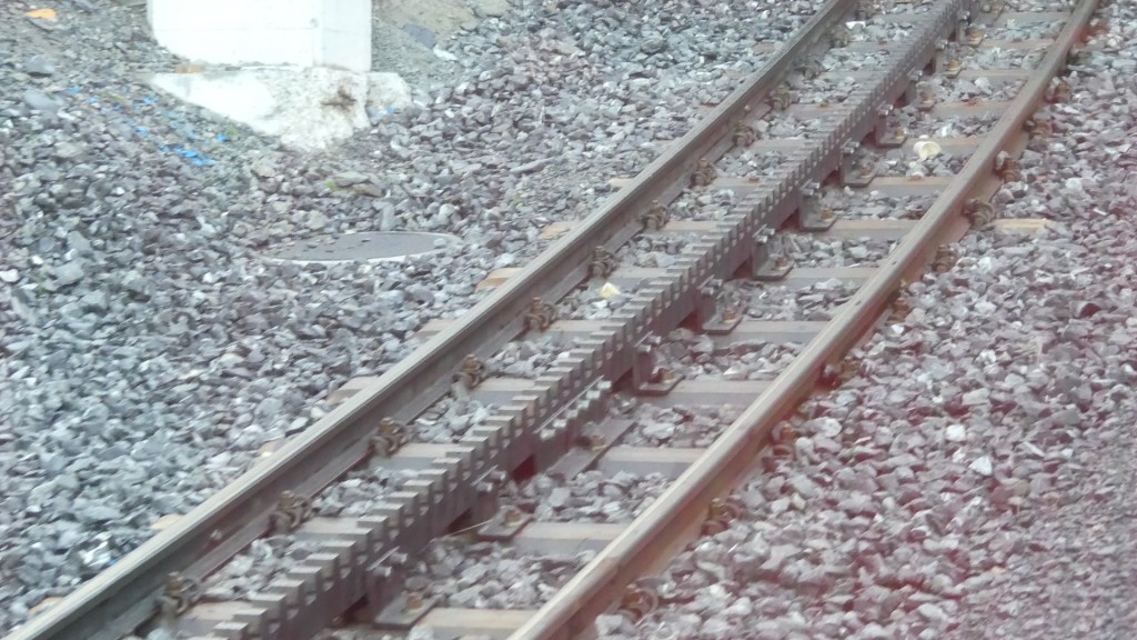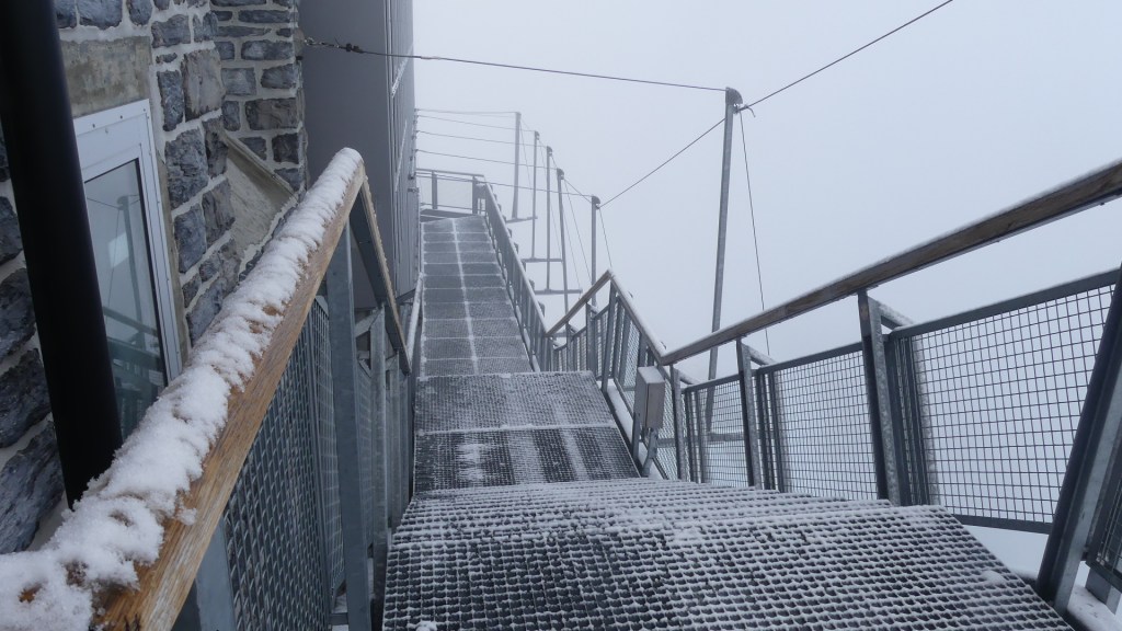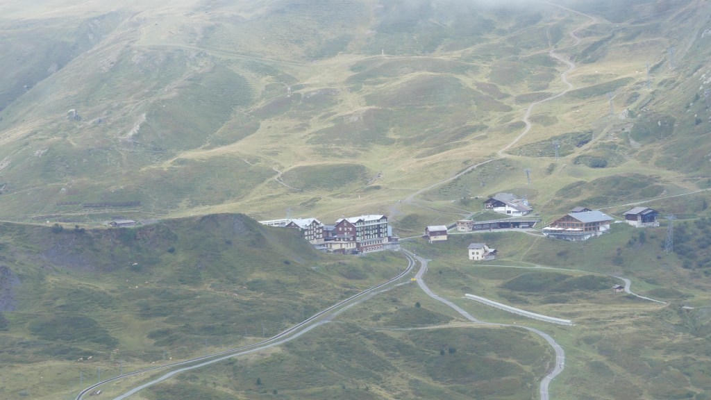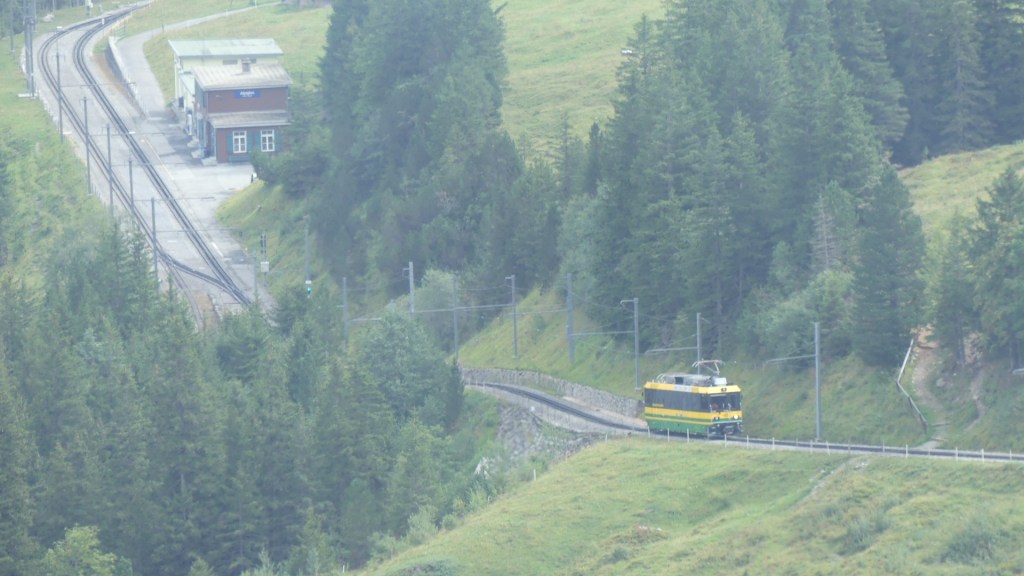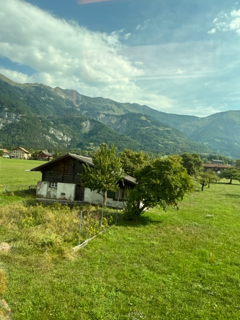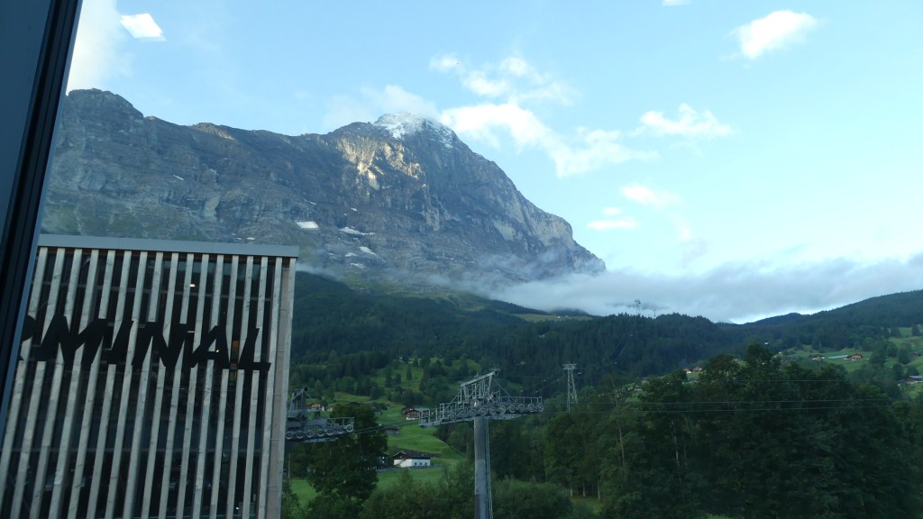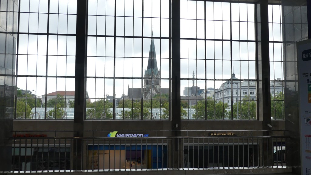Photos of the breakfast room and the view of the rail station ourside our bedroom window, inside the station and the chimney stacks.