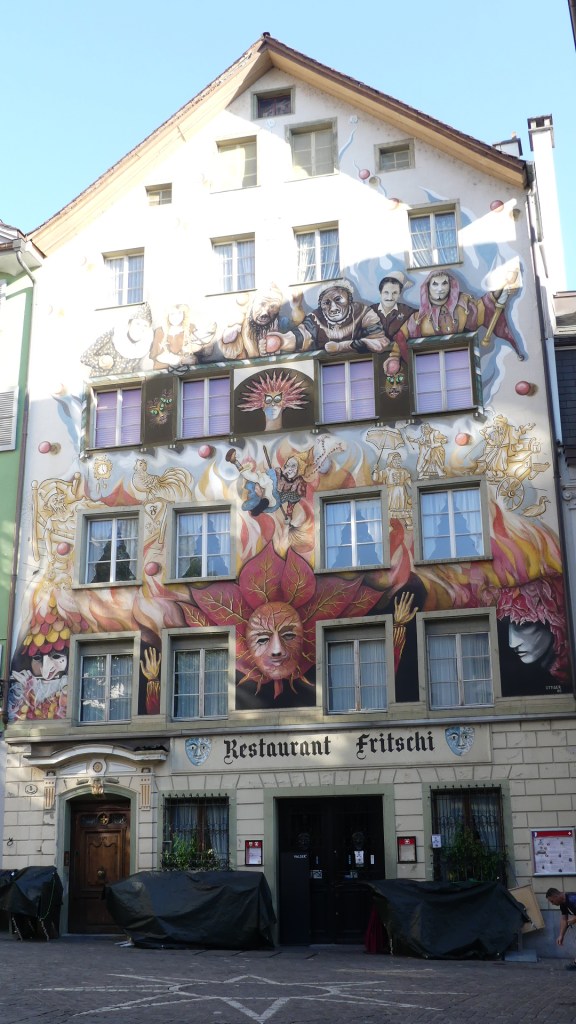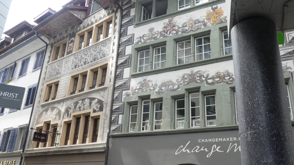 Photos – the canal ferry, the golden hind atop a building, multicolour attached houses, the Bristol Museum, the Bristol Sailors Home, Hole in the Wall Pub, The Ole Duke and the Llandower Trow, the markets up the stairs and the Corn Market its clock with 3 hands and its front door, City Hall and the library. The last photo “the wellhung lover”