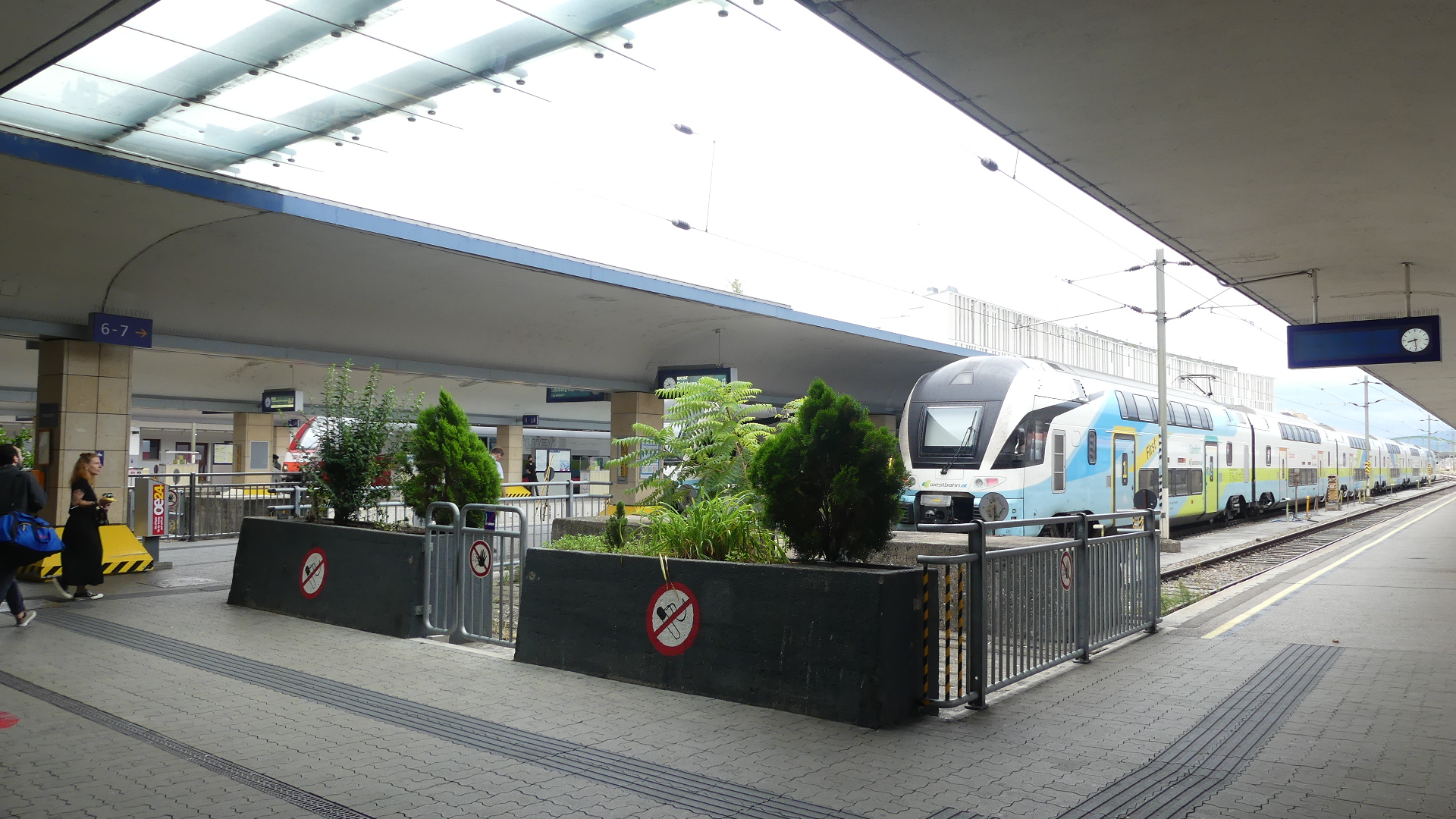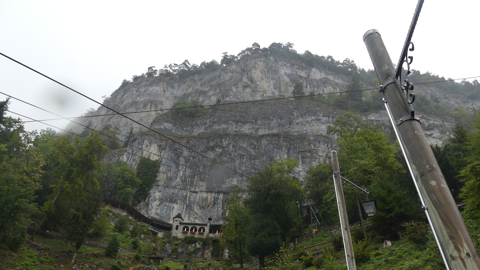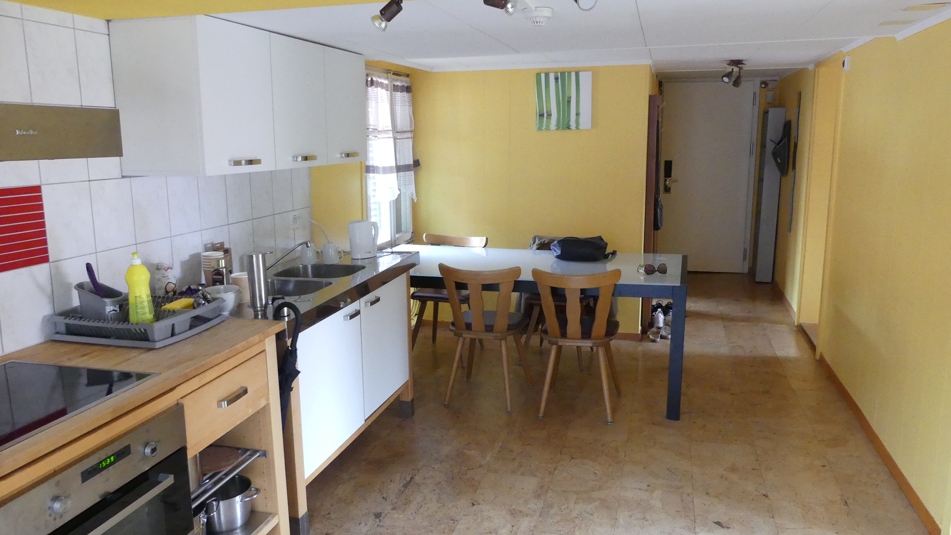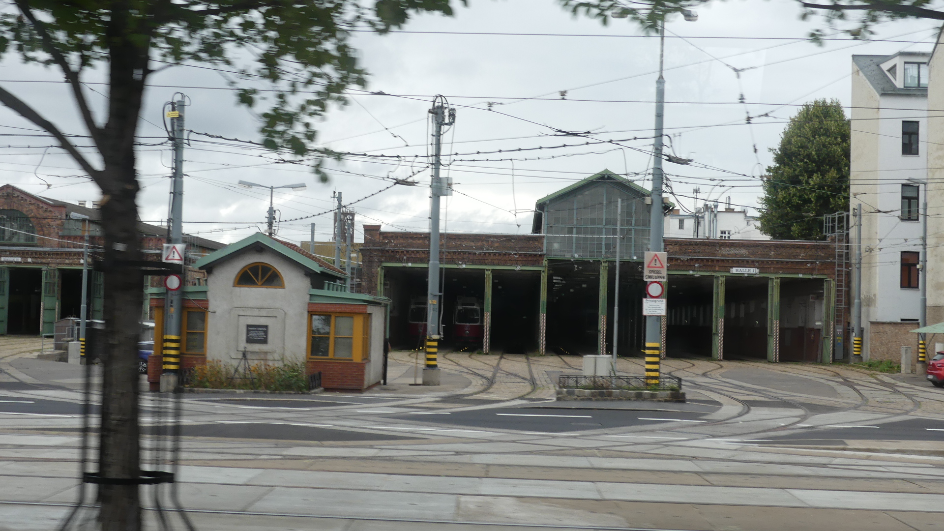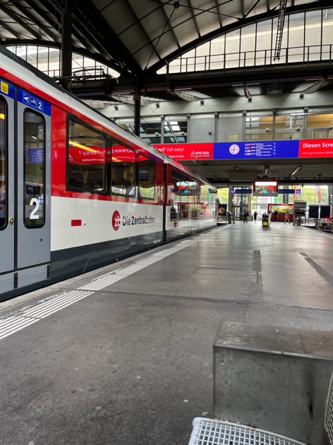 Photos of the breakfast room and the view of the rail station ourside our bedroom window, inside the station and the chimney stacks.