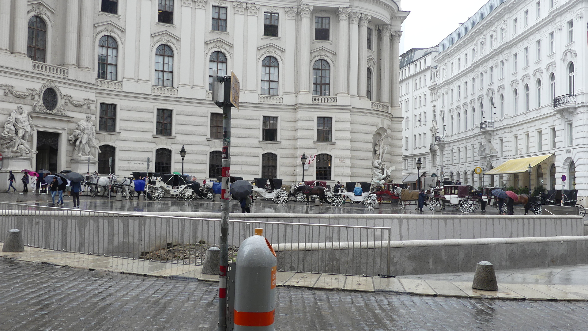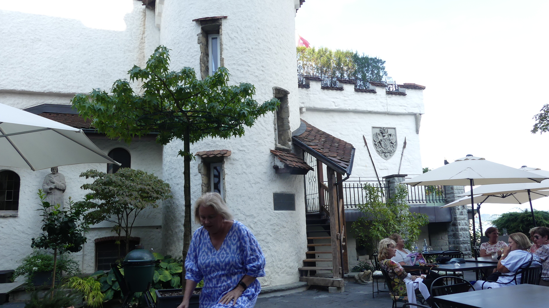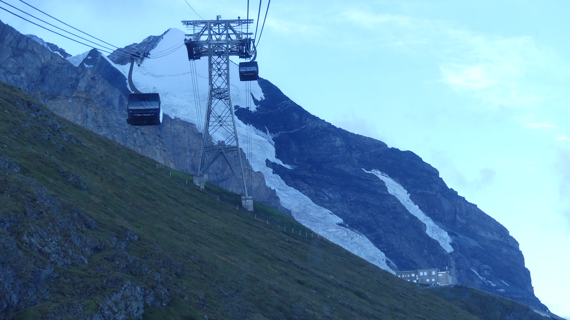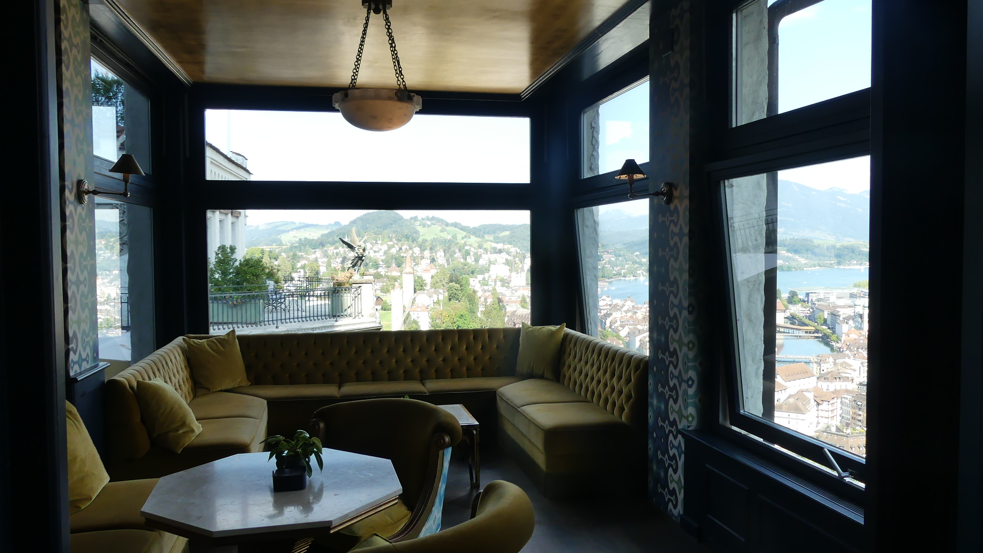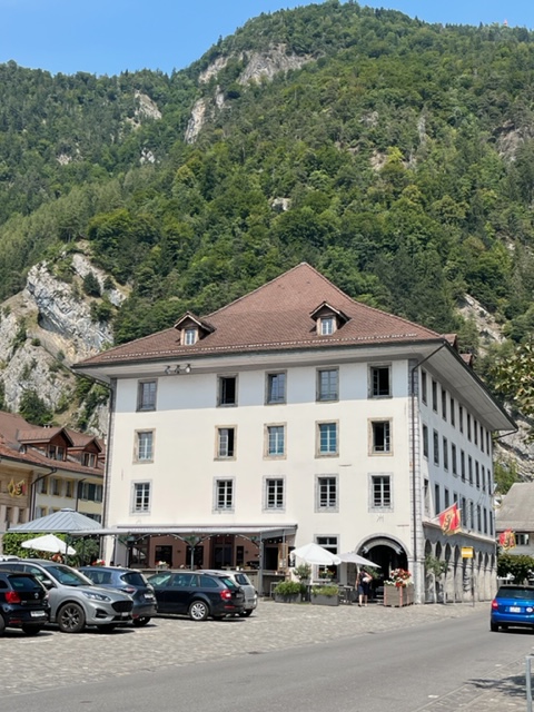 Photos of the breakfast room and the view of the rail station ourside our bedroom window, inside the station and the chimney stacks.