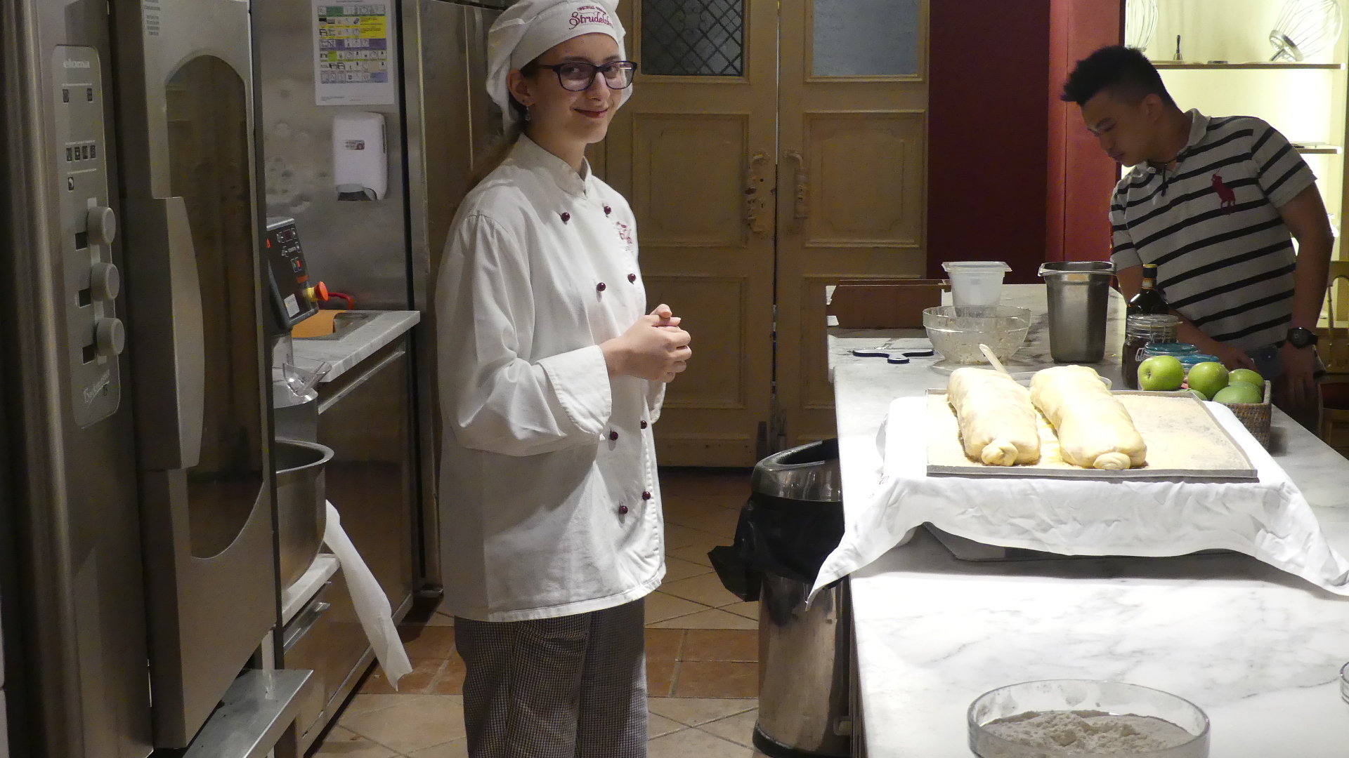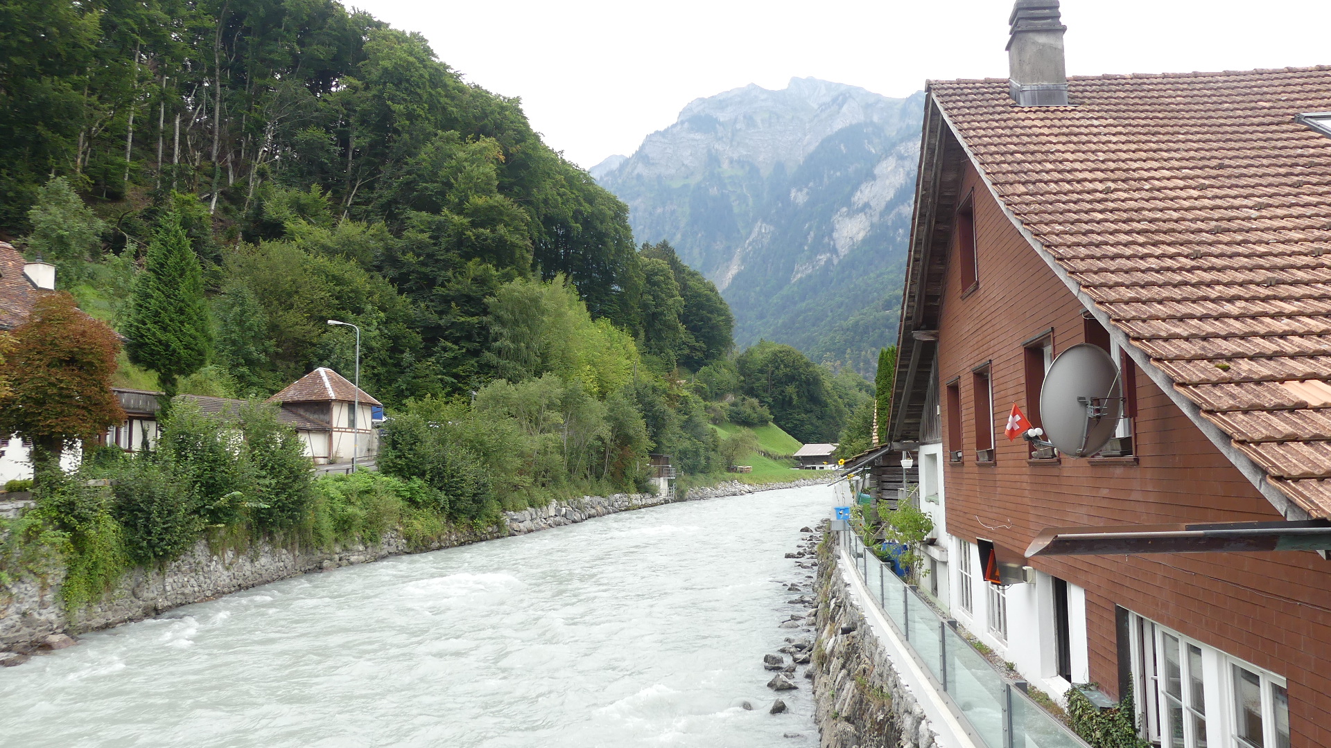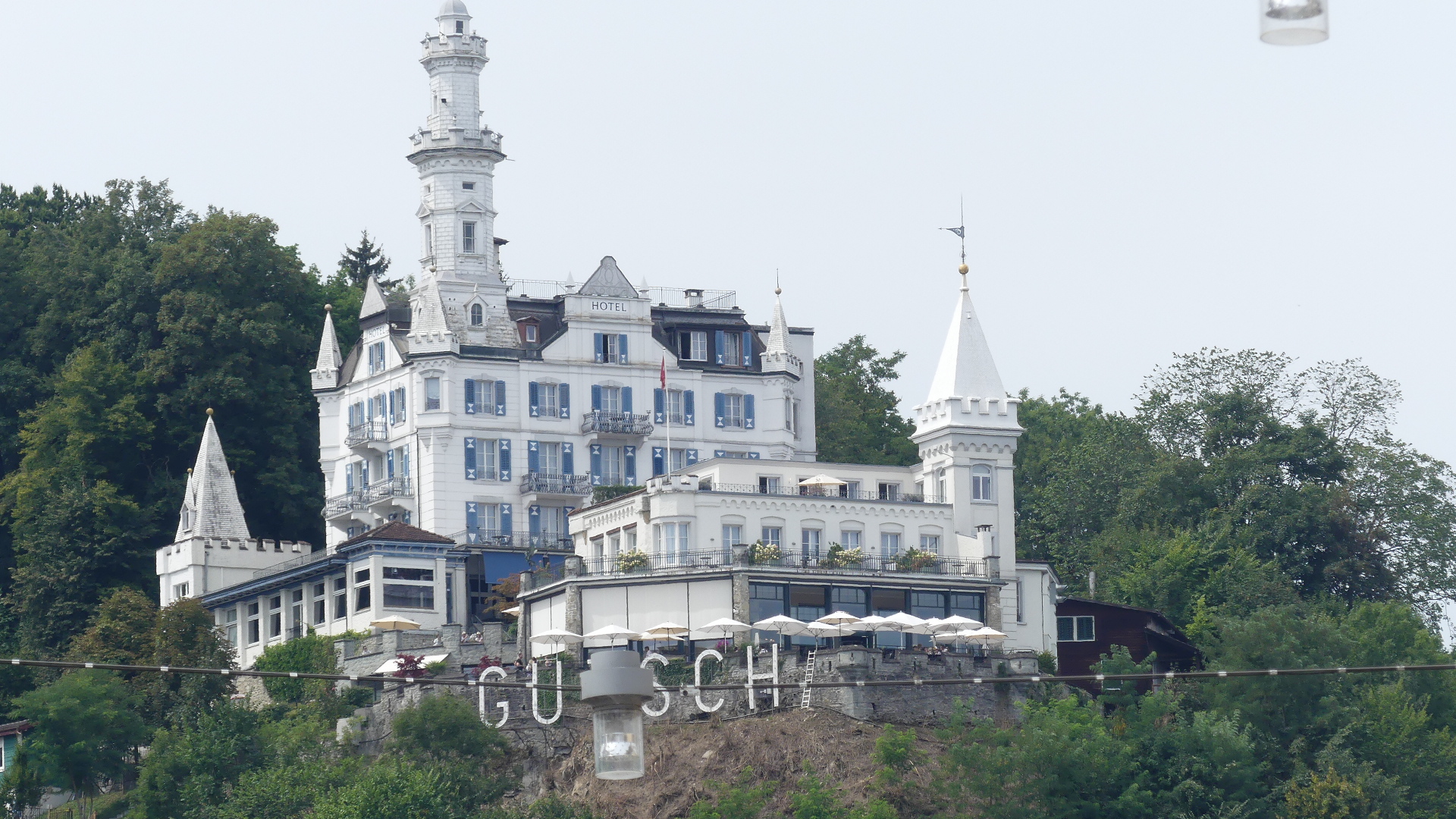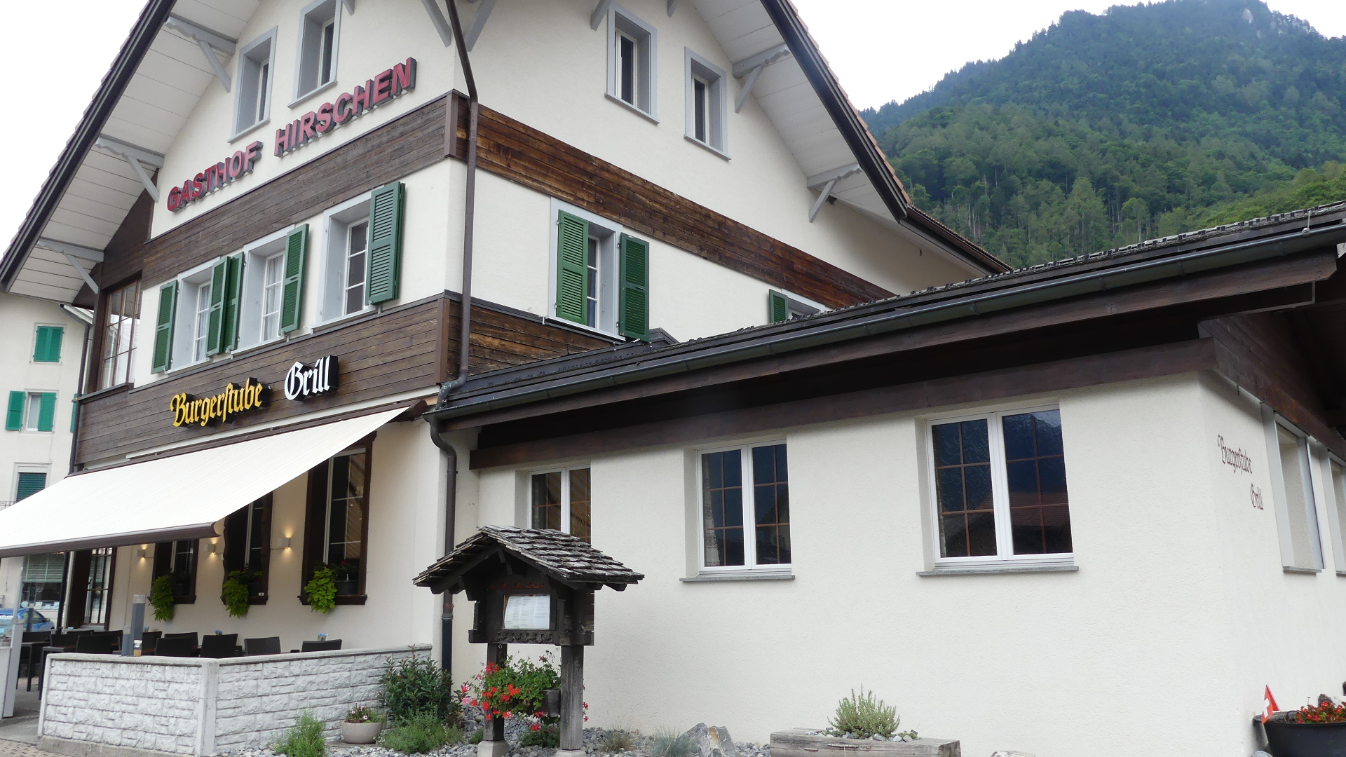 Photos of the breakfast room and the view of the rail station ourside our bedroom window, inside the station and the chimney stacks.