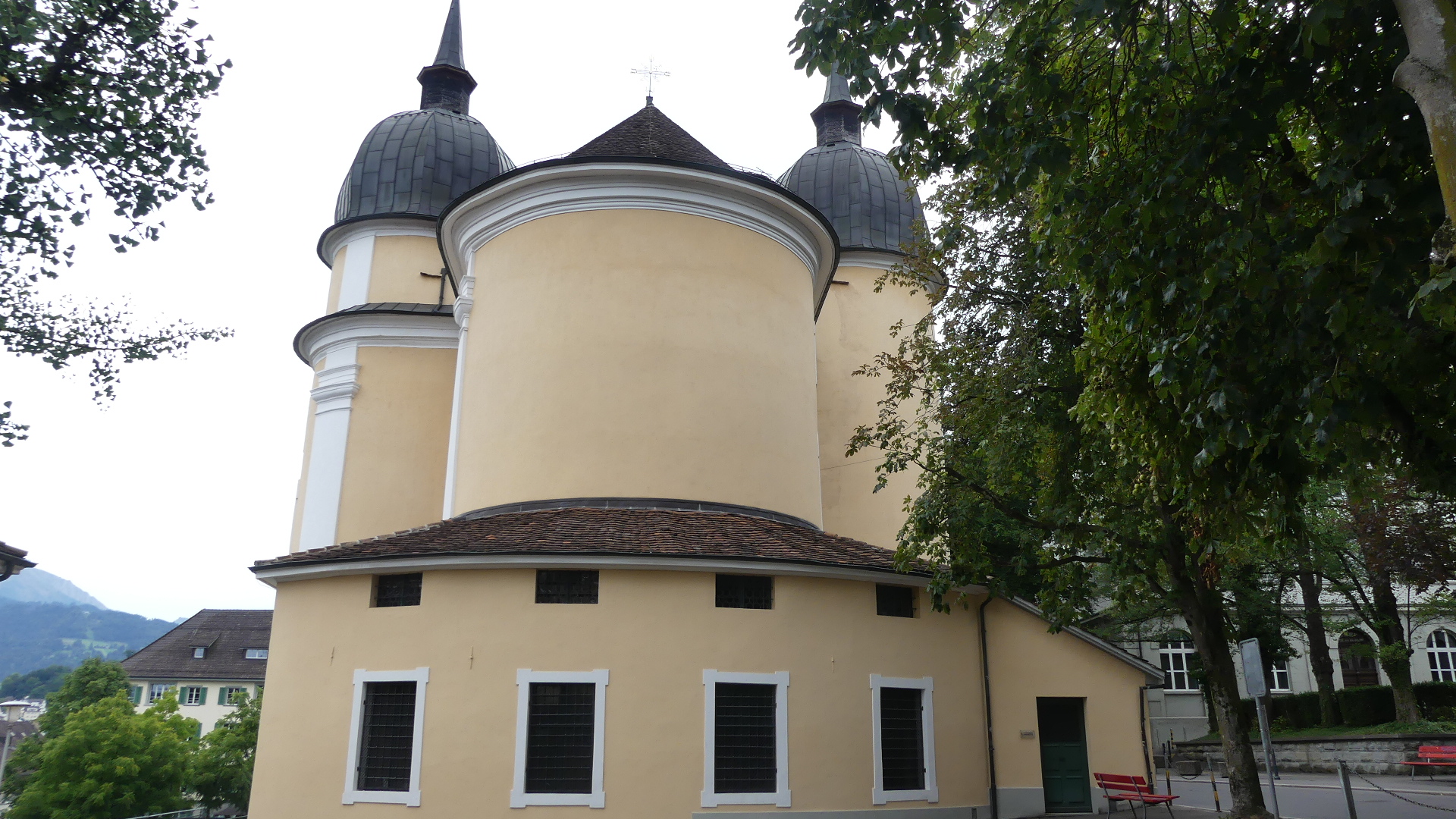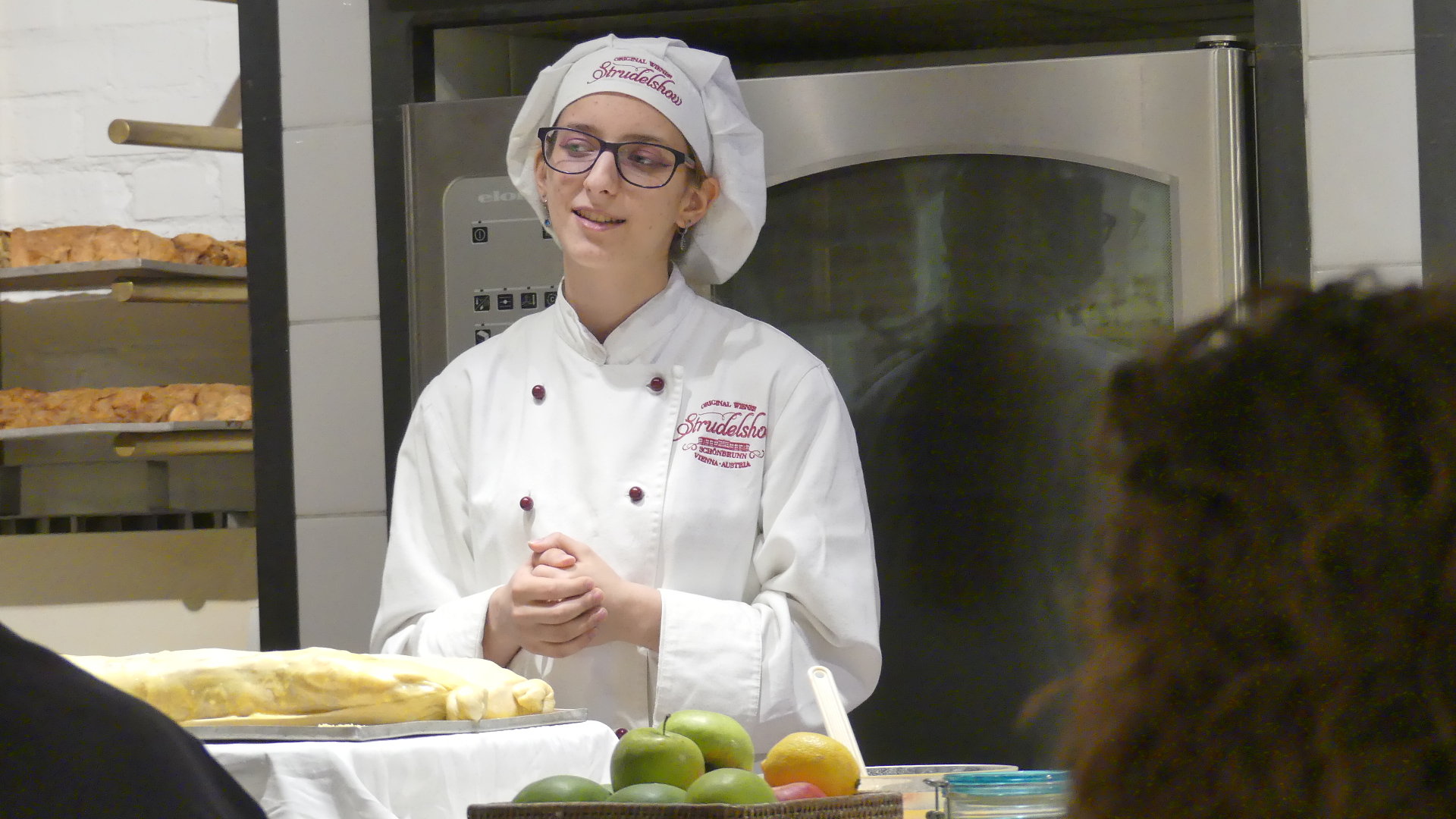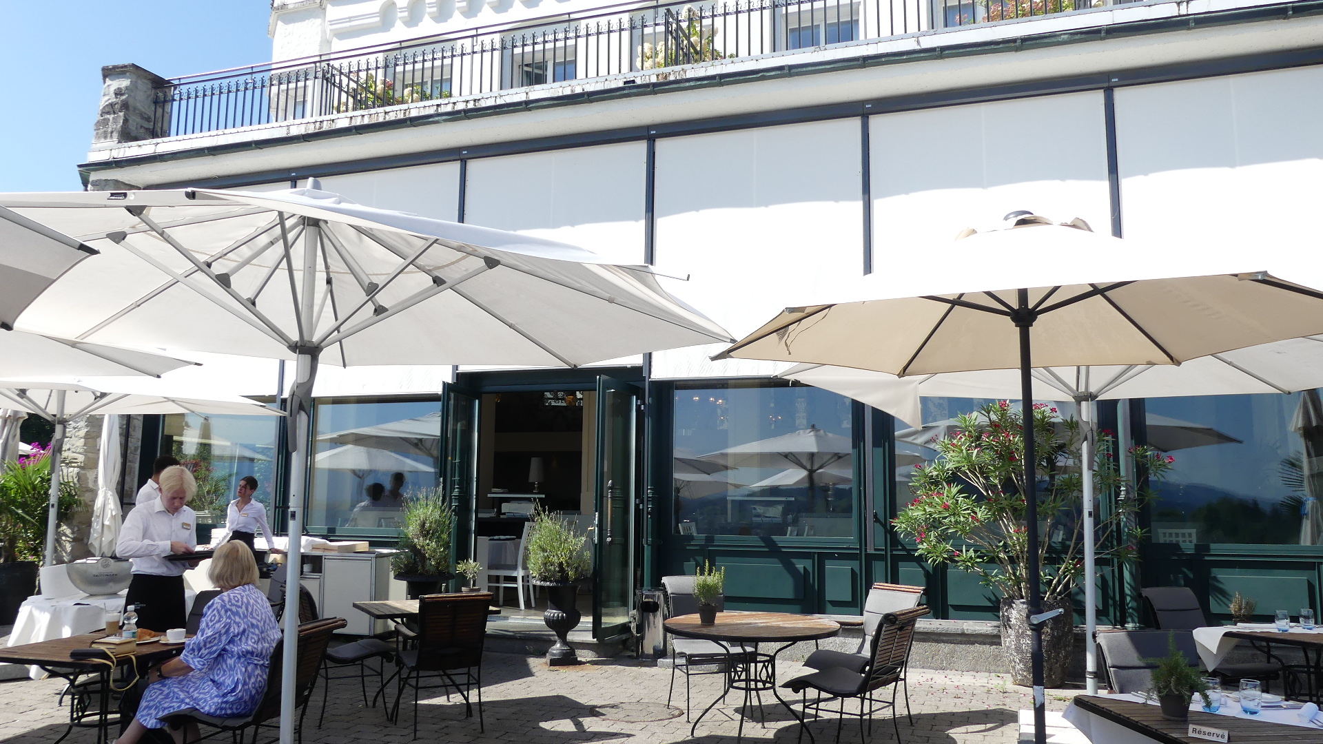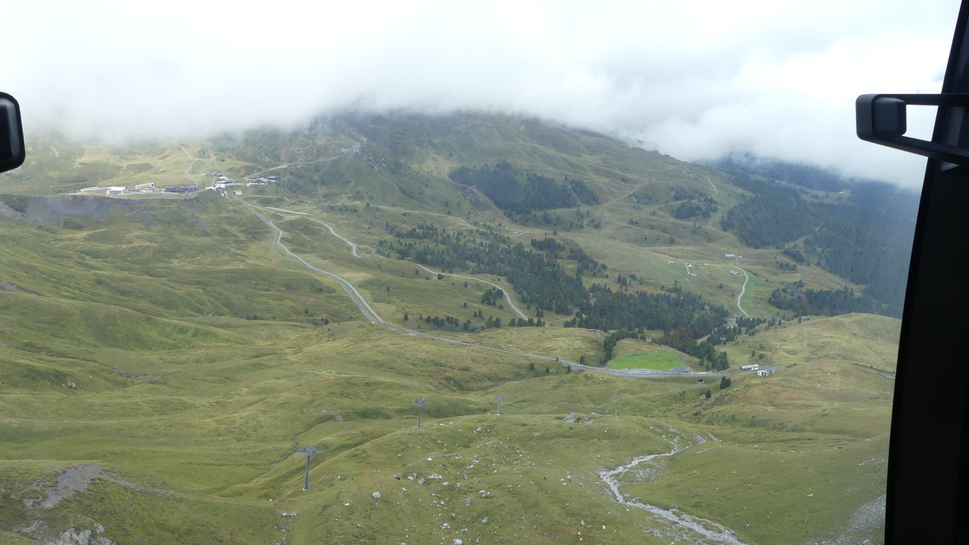 Photos of the breakfast room and the view of the rail station ourside our bedroom window, inside the station and the chimney stacks.