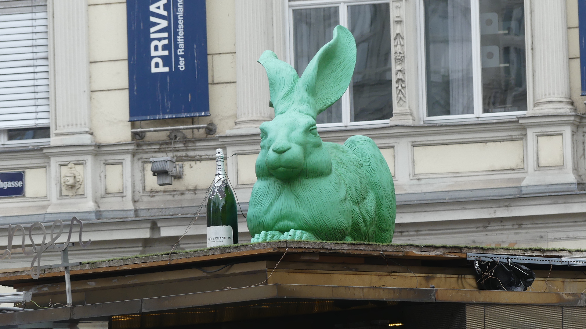 The first work he showed us is straight across the road from City Hall “the Well Hung Lover”. this is a protest piece done by Banksy at the start of his street art period after learning about avoiding the long arm of the law as a tagger. Bristol had a policy that graffiti was criminal damage of property and enforced it rigorously, but this piece changed that policy. Banksy was able to produce the piece without being observed and escape with the unveiling of his protest (he had contractors erect scaffolding and posing as a commercial painter produced the work under the cover of a mesh screen). The council allowed the piece to remain, but an anti-graffiti protestor used a paint ball gun to try and deface the work with the council cleaning off some of the blue paint.
