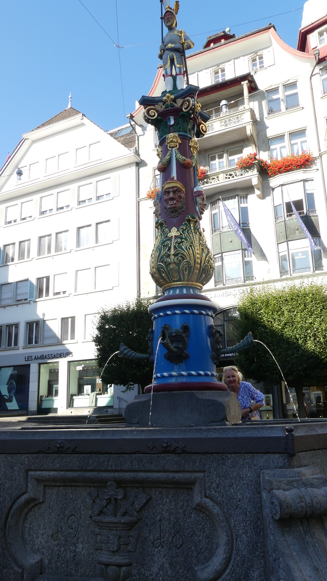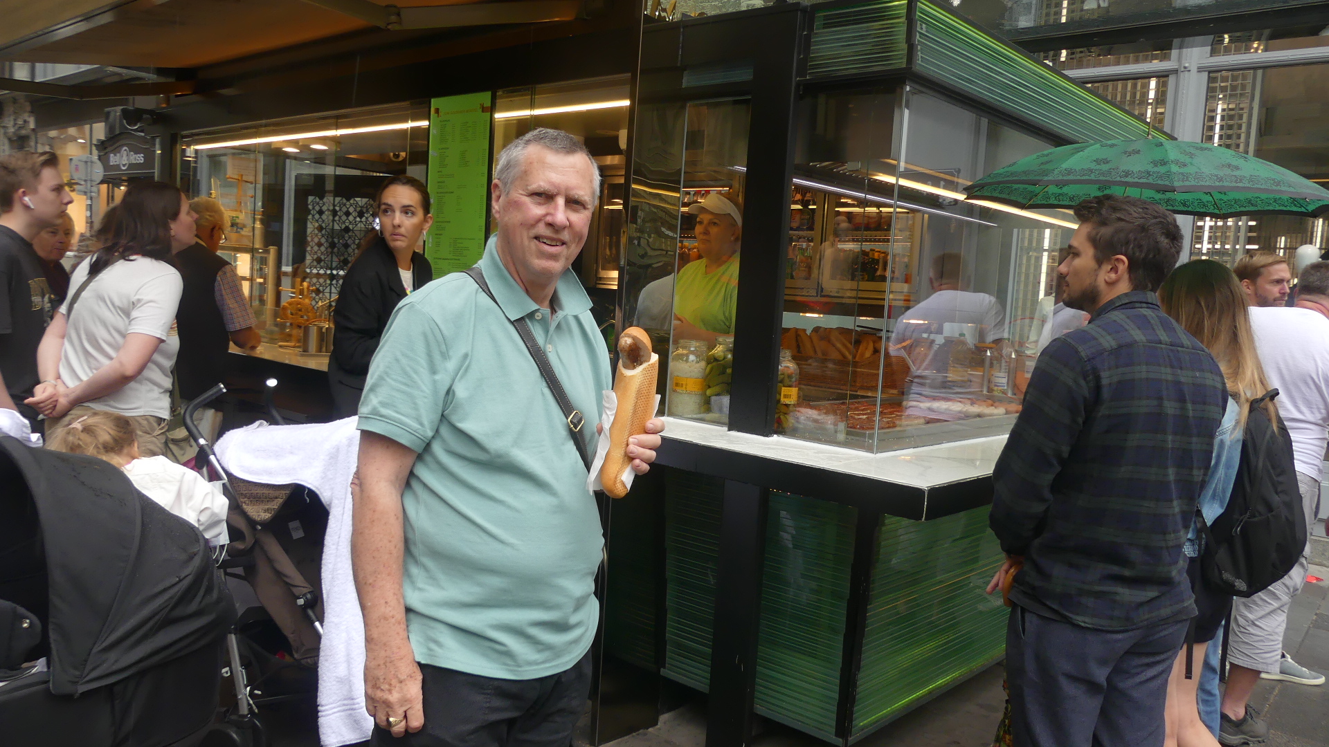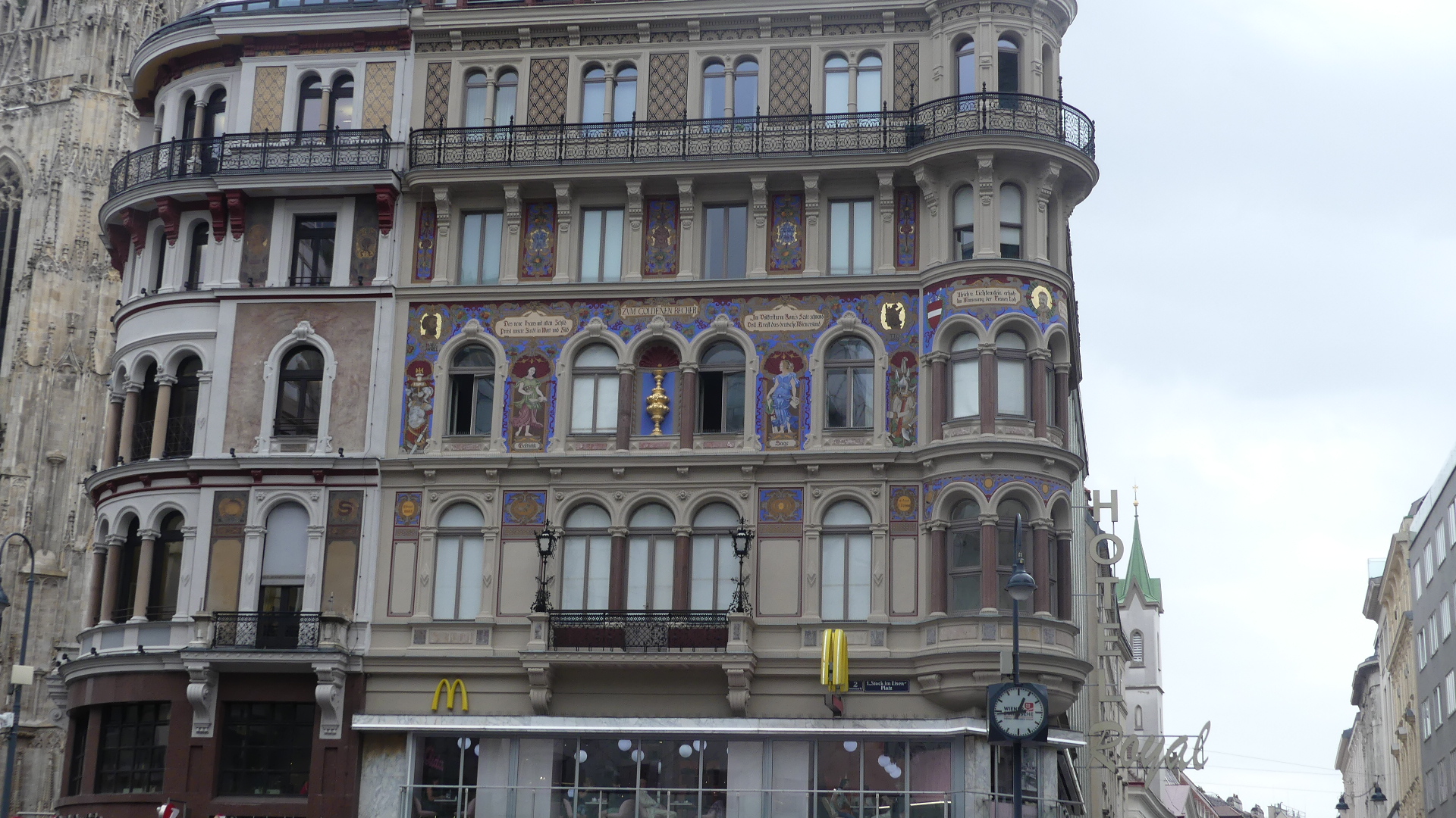 Photos – the canal ferry, the golden hind atop a building, multicolour attached houses, the Bristol Museum, the Bristol Sailors Home, Hole in the Wall Pub, The Ole Duke and the Llandower Trow, the markets up the stairs and the Corn Market its clock with 3 hands and its front door, City Hall and the library. The last photo “the wellhung lover”