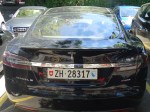 It was a beautiful day with warm sunshine and a light breeze. Time for an ice cream and nearby is a hilltop restaurant with shady trees and fantastic vistas of Basel. We are not the only ones who know of this oasis. Here is an Aston Martin and a Tesla.