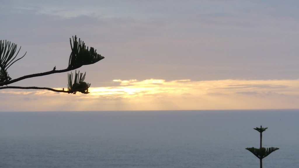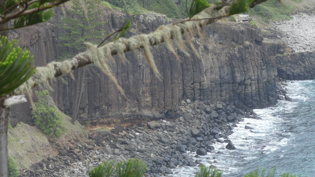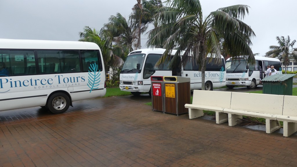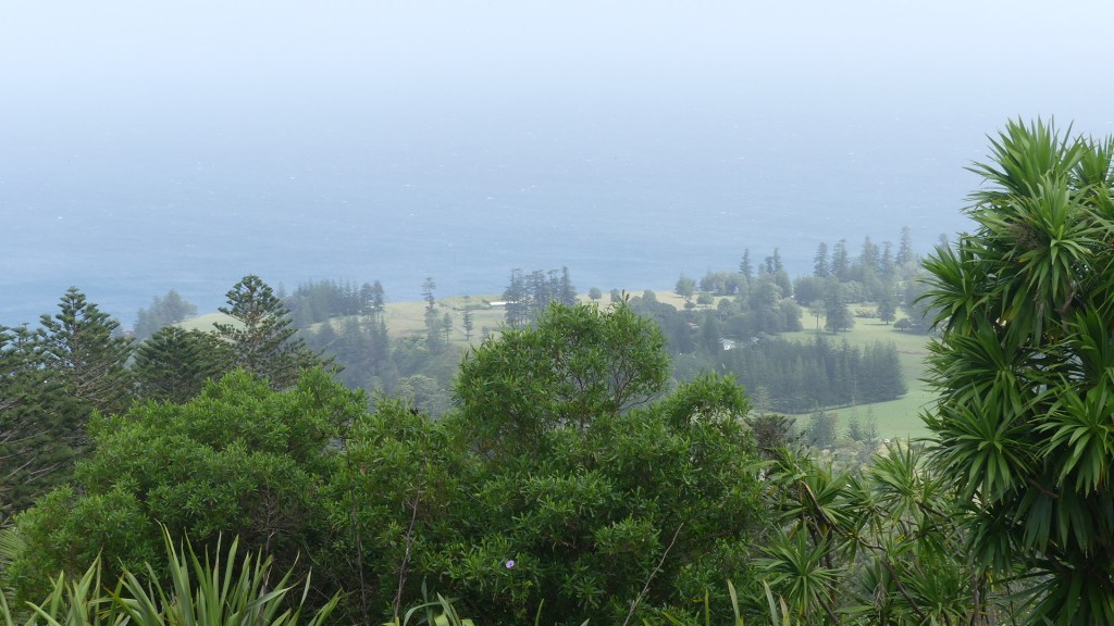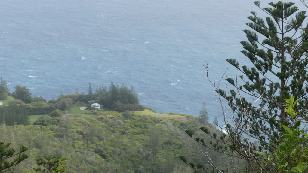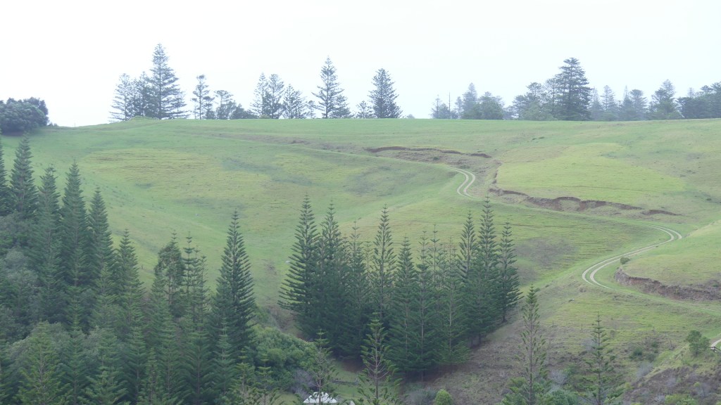 We landed at Norfolk Is/Burnt Pine international Airport. The airport was built by Australia and New Zealand during WWII as a base for the NZ “N” force but abandoned when they realised it was too far from the action. Fortuitous for Norfolk Island. After walking across the tarmac and collecting our luggage we boarded our ride to the apartment. It was at this time that we experienced the weather that would continue until the afternoon of Wednesday week – windy overcast and occasional drizzle. The Norfolkers were not unhappy as they have been through a dry spell.