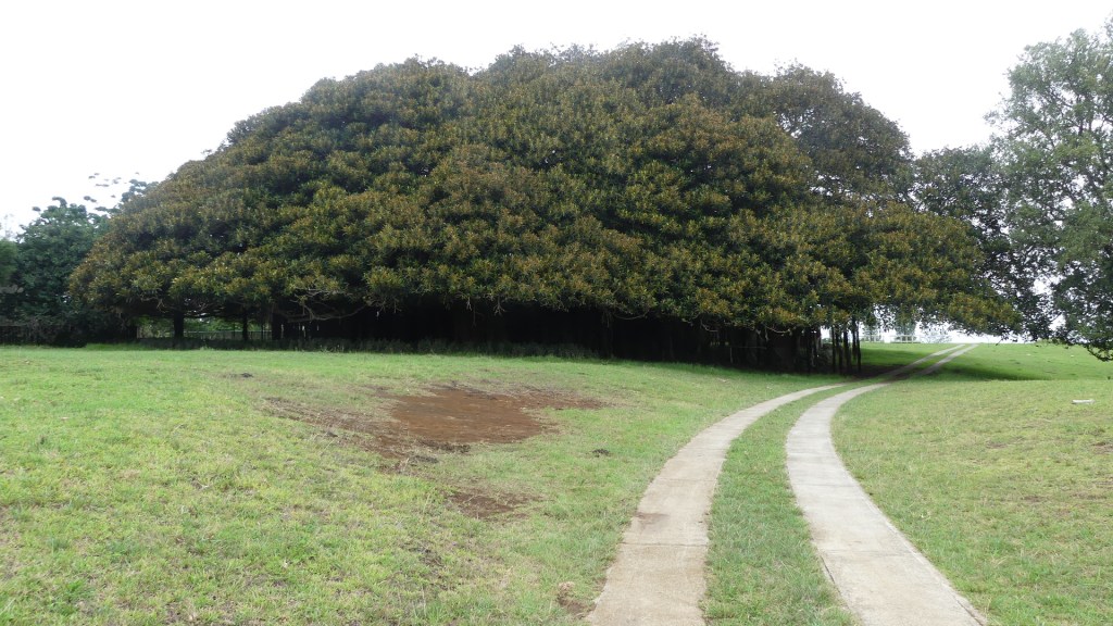 We join many of the other passengers from Brisbane and board our bus. Our driver is John Christian (of the Fletcher Christian line – I make him to be 10th generation) and he understandably has lots of knowledge about the island, its heritage and history. We drive out of the main street Taylor’s Rd and along to Queen Elisabeth Ave up to Rooty Hill Rd and south along that road until we see an Indian Banyan Tree. This thing covers approximately ½ an acre (one tree) with its extensive canopy and air rooting system. It’s on private land so the bus does not stop but we return for a closer look.