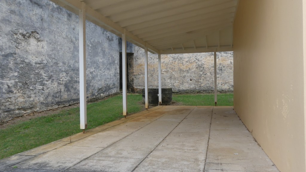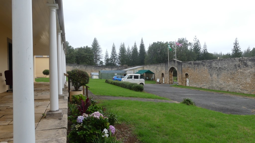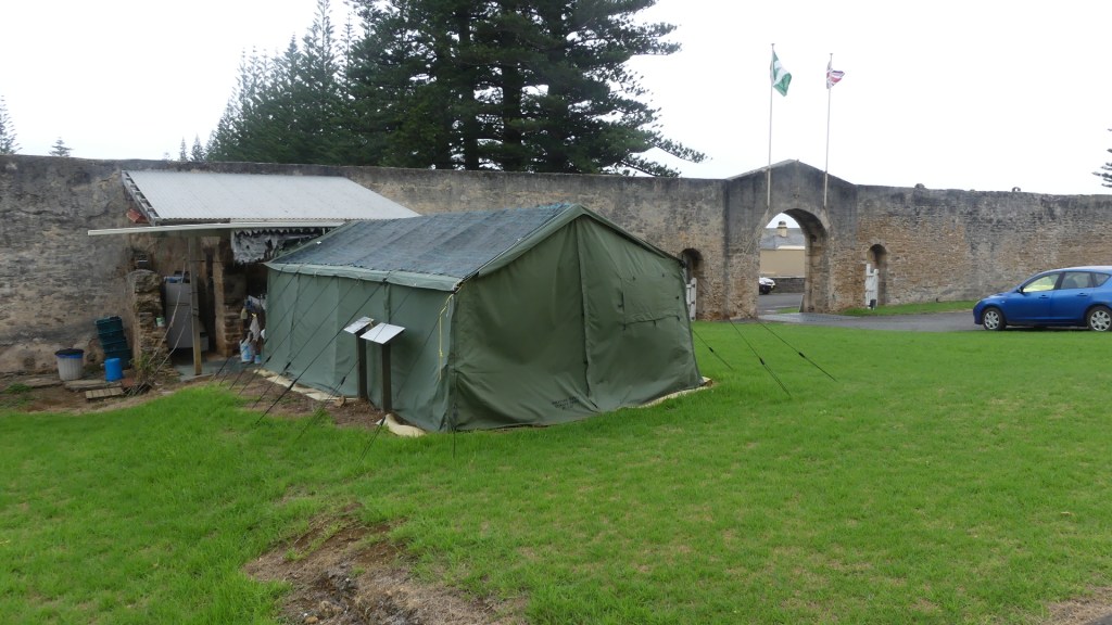 Kerry entered the garrison and ran into Bindi a Norfolk Islander manning the tent embassy inside the garrison, protesting Australia’s interference and protesting for independence for Norfolk Island. Kerry and Bindi seemed to have an immediate connection and when Bindi mentioned coffee they adjourned to the tent for gossip and coffee. I was left to scout around the buildings which I did, and my photo record is uploaded below.
