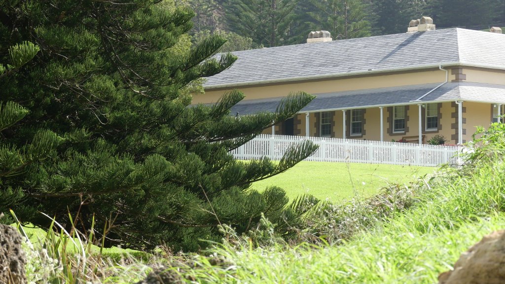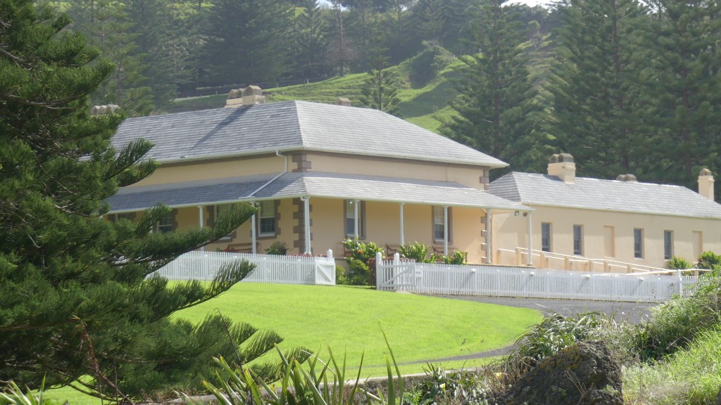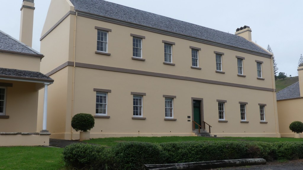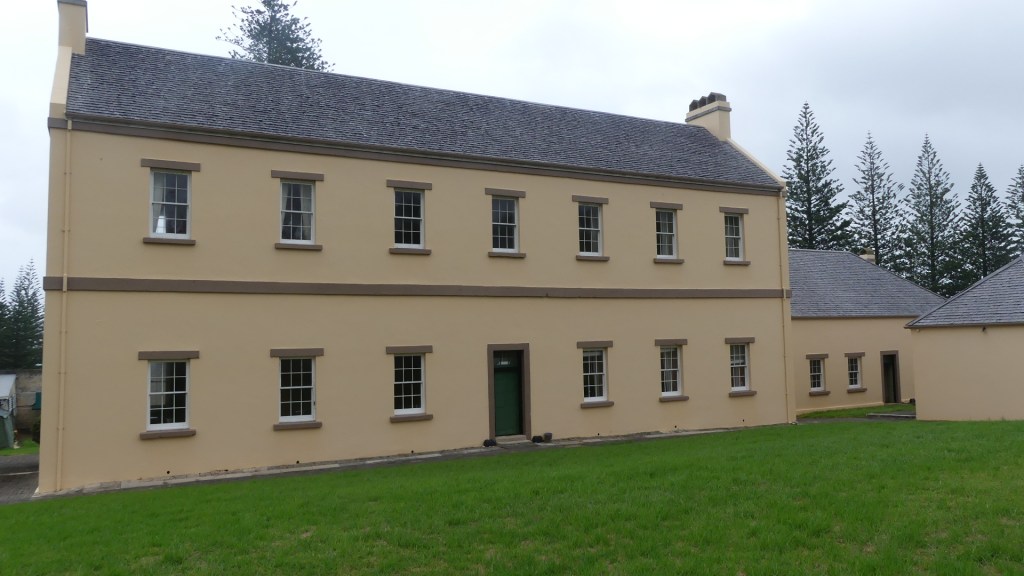 After visiting the cemetery, we drove along Quality Row to the first of the two garrison buildings. This building is now used for the Court and the elected Council. A controversy has arisen with Australia dismissing the Norfolk Island Council and appointing an Administrator.