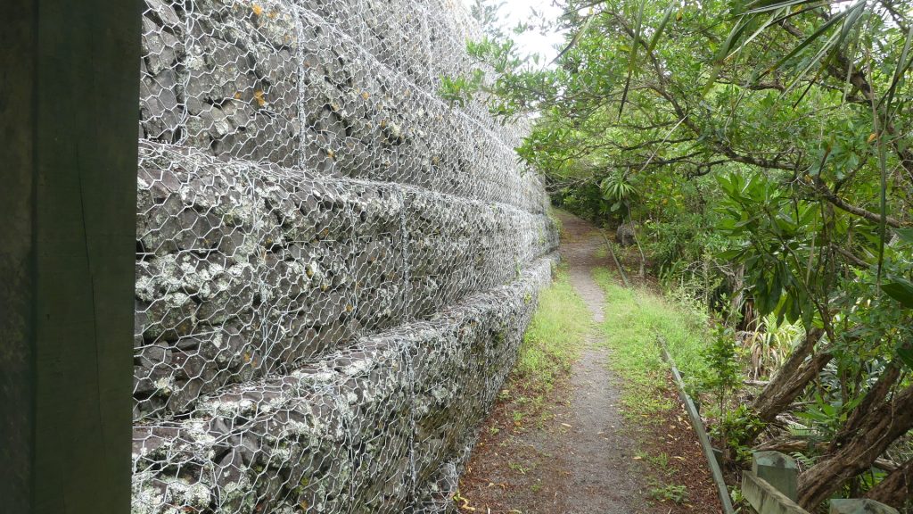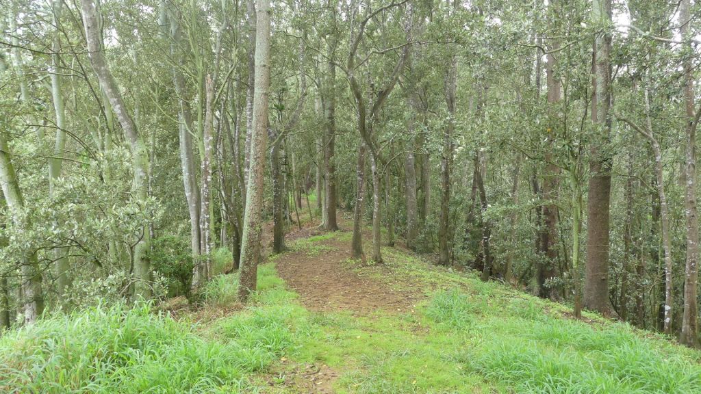 During WW II a radar station was set up on Mt Bates. There is little to tell the tale, but you can go and view the cement slab on which the radar shack once stood and observe a derelict piece of machinery which played some role in the operation. Then you climb to the peak of Mt Bates where there is another grassy observation platform from which you can observe the modern telecommunication dishes on Mt Pitt, the ocean and some houses. Nothing really remarkable. There are a number of paths leading away from the peak to who knows where, so we elected to return by the route whence we came. As we returned, we pass some tourists like us taking a stroll from Pitt to Bates. These are the only people we will see on the walk. We arrive at Pitt get in the car just as the rain commenced to fall, look at one another and ask what now. Before revealing the next adventure, here are my photos.