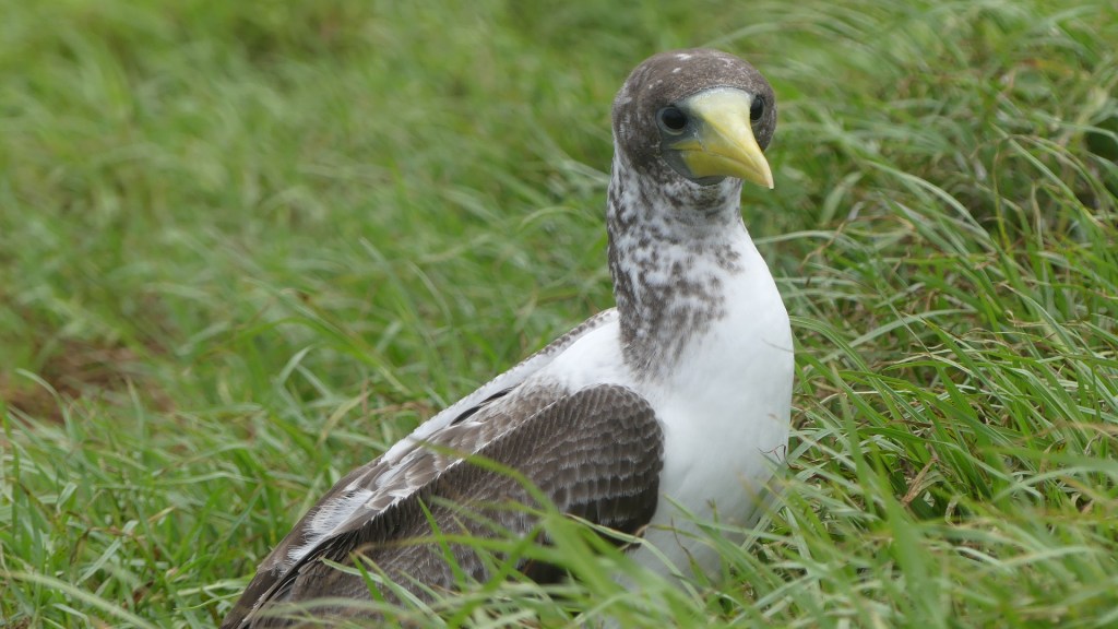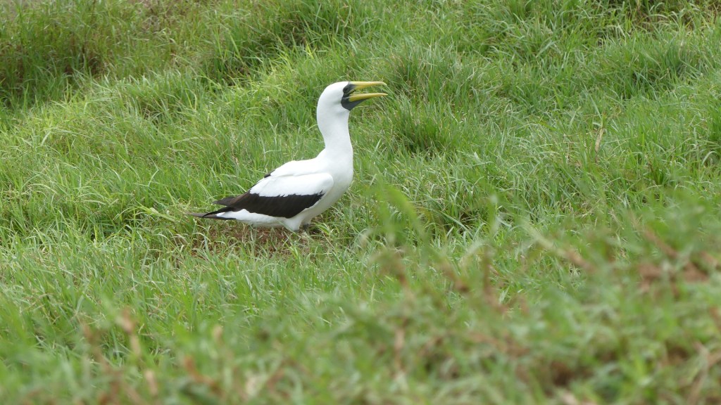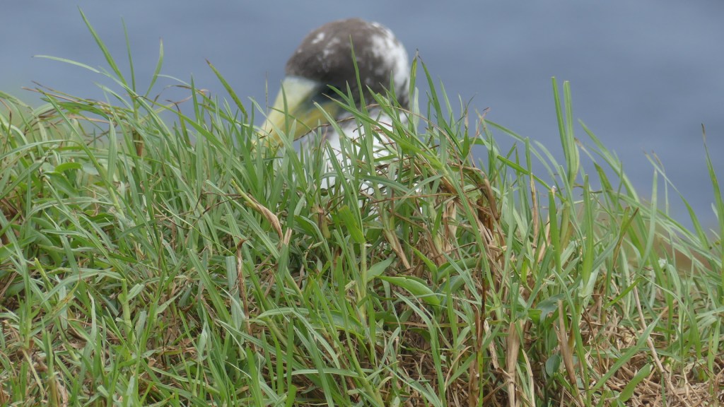 We decided we would look at the north west of the island so we drove along Mt Pitt Rd into Mission Rd and partway along spotted a local “honesty stop” offering local honey jams and fruits. We both immediately thought of suggesting this style of selling to Mrs Hayes for all her surplus jams and pickles. I cannot recall what we bought probably local honey and pushed on to Ona Cliffe taking a righthand turn to Anson Bay Rd. I am pretty sure this was the first time we spotted the Sunset Bar at Puppies’s Point. It was closed at the time but we noted the opening hours and the owner spotted us taking a booking for the following evening. We pulled in at the park overlooking Anson Bay and moved onto the Gun Club. There are two establishments side by side – the pistol club and the clay target club – both perched on Anson Point home to a Masked Booby colony. There is a fence on the cliff edge to keep people and cattle from falling in the many Booby holes where they nest. The birds were not frightened by people and I was able to get very close to them. They are quite a large bird and certainly seem to have worked out how to share its habitat with Sapiens.