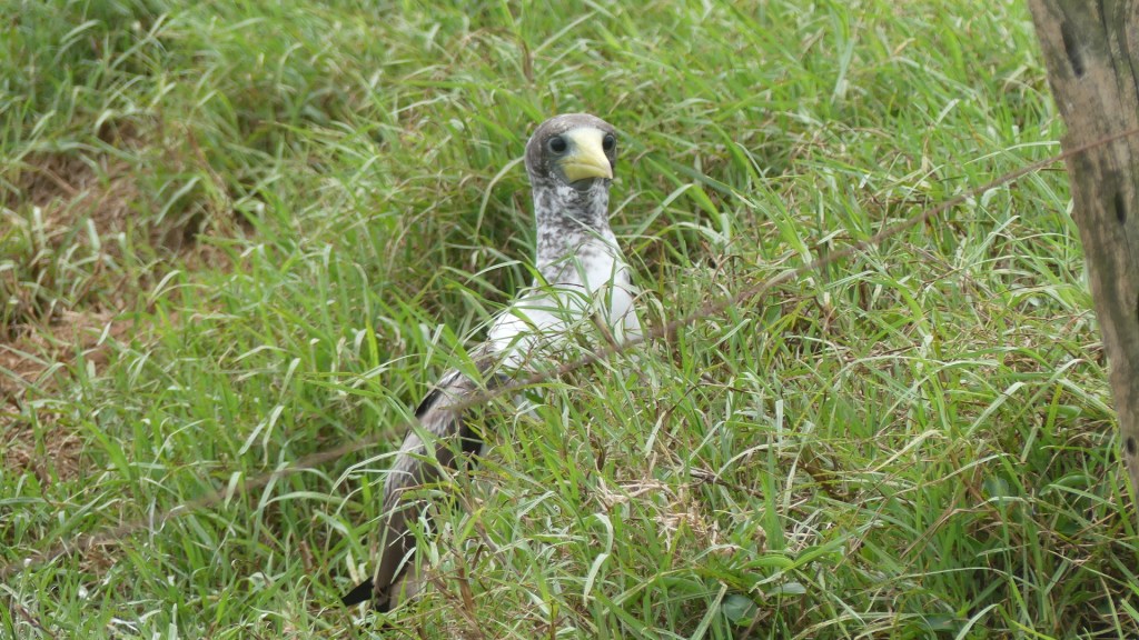 The day is coming to an end, so we look at the map to see where we have not been. Marsh’s Rd at Ball Bay stands out. We determine to check on the red tail tropic bird at the foot of the huge pine tree on our way there and sure enough he’s there and growing quickly.