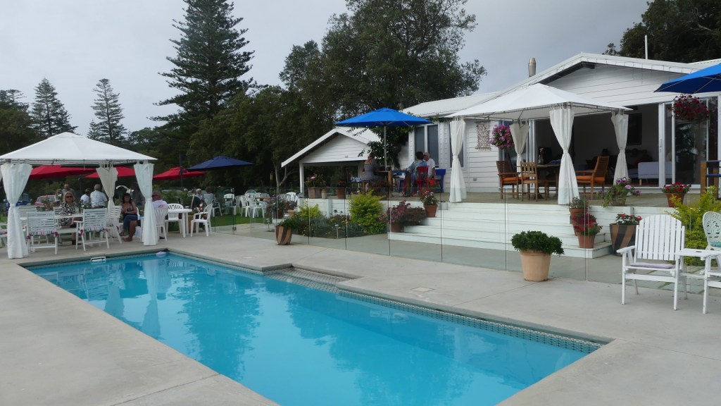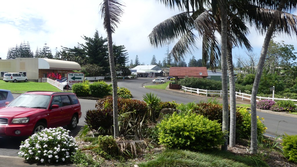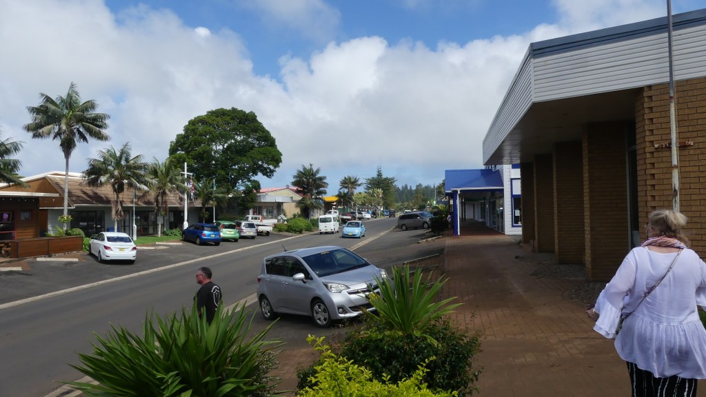We travelled to Aloha Apartments 5 mins from the airport and dropped off the first six visitors leaving Kerry and me with Col and Gloria going to Panorama Oceanview Apartments another 5 minutes away but on the southern side of Norfolk Island. We drove south into the main street of Burnt Pine, Taylor’s Rd, and out again rather quickly onto Queen Elizabeth Avenue and down Middlegate Rd to the Apartments awkwardly placed on a bend in the road but with elevated views of Nepean and Phillip Islands, the old penal settlement of Kingston and the beaches.
