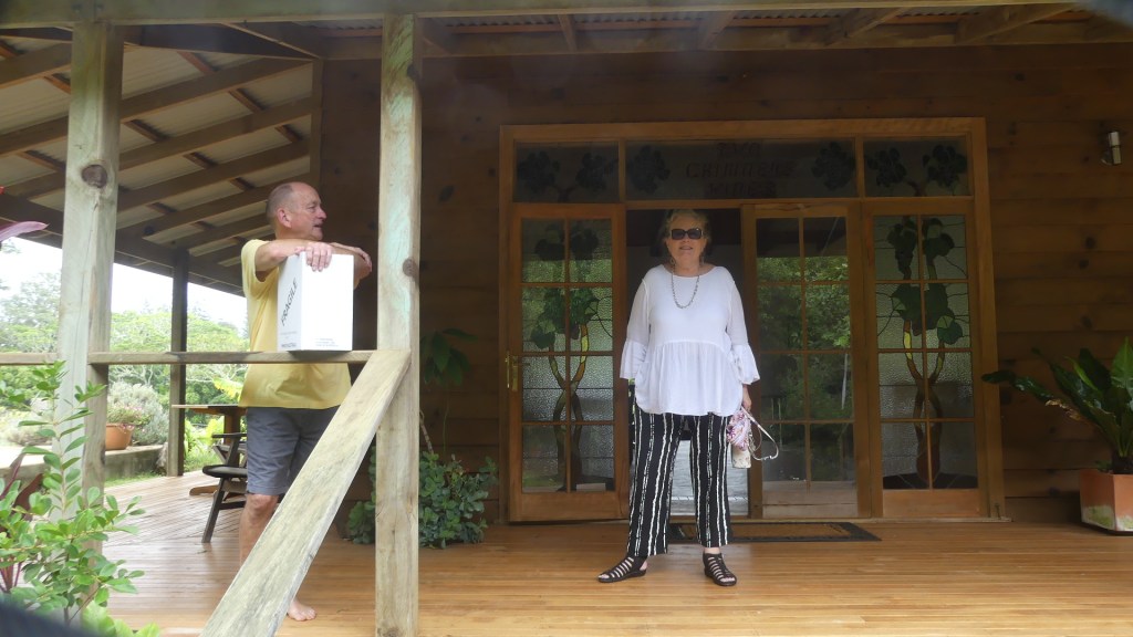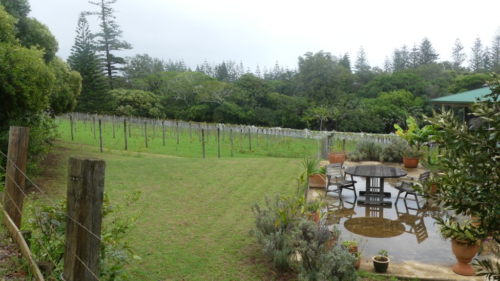 After tasting a few of the white wines on offer the truth emerged. Many of the grapes used come from the Hunter region outside Newcastle Australia, which Rod uses to create nearly all of their wines and has it bottled there as well and shipped to Norfolk. Only the Chambourcin grapes is mould resistant which is why they only make the Chambourcin on Norfolk. So I tried the Chambourcin and its not too bad. After about 1 hour there and with no sign of any other customers we said farewell to Rod taking a bottle of very expensive Chambourcin with us.