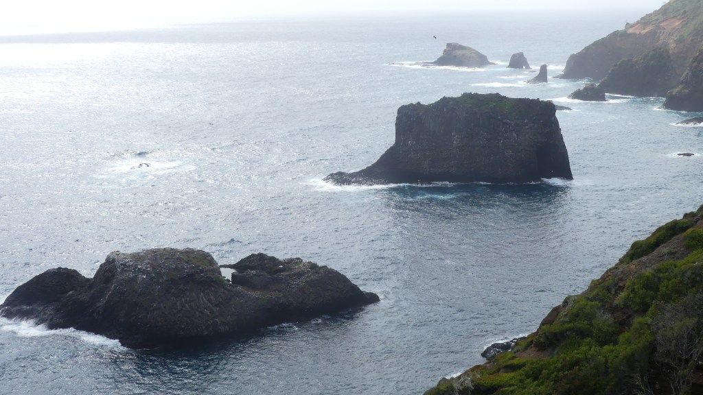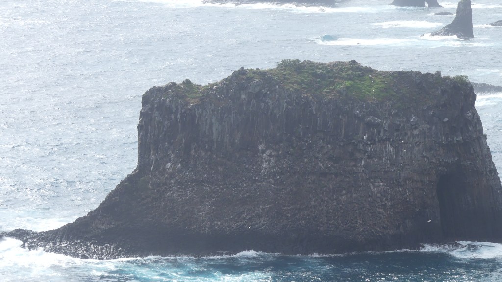 Then onto to the bus and we travel to the north-west of the island a few miles east from Howe Point where we saw the flying wedge tailed shearwater. After the bus lets us alight we are greeted by a stunning vista looking west to Point Howe. We then walk due north to the monument. It a rudimentary stone cairn with a plaque on it. The plaque tells us this is his second voyage of discovery. This voyage was designed to circumnavigate the globe as far south as possible to finally determine whether there was any great southern landmass, or Terra Australis. In the course of the voyage, he visited Easter Island, the Marquesas, Tahiti, the Society Islands, Niue, the Tonga Islands, the New Hebrides, New Caledonia, Norfolk Island, Palmerston Island, South Sandwich Islands, and South Georgia, many of which he named in the process.