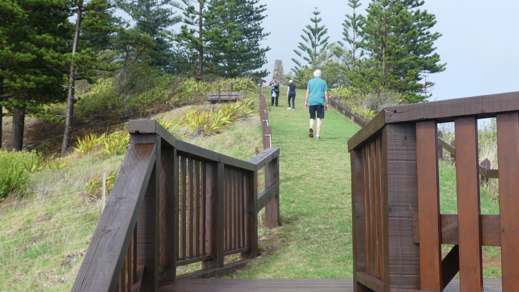 Our plans to go to the craft market changed. We decided to do some independent touring. The highest point on the island is Mt Bates at 321m above sea level and there is a walk to the peak from the 2nd highest point Mt Pitt. So, we started today with a drive downtown then up Grassy Rd onto Mt Pitt Rd to the peak 320m above sea level.