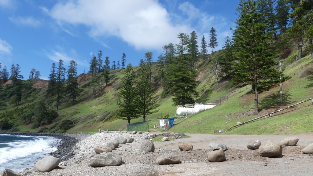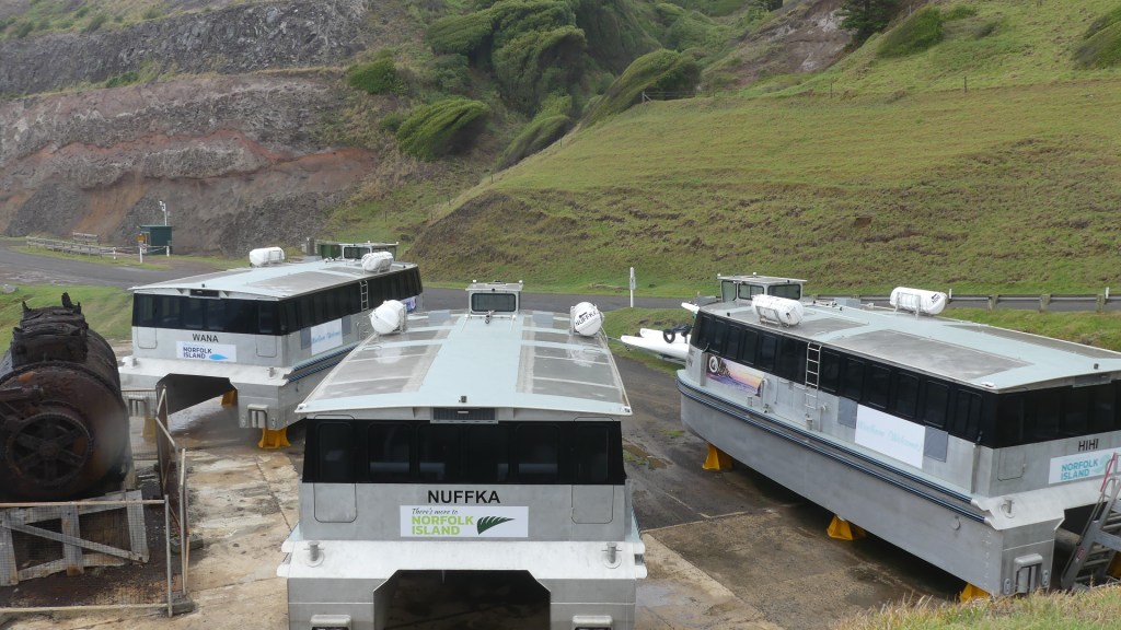 The jetty is inadequate for modern shipping which is now containerised. The wharf requires the ship to anchor off the island while Norfolk tenders ferry cargo to and froe – I don’t think the Norfolk Islanders want that to change just as they don’t want too many tourists as they like their little paradise just as it is with time and the world forgetting it is there. Violent winds raging seas and shallow water mean that any passenger ships can only unload passengers with the use of the 3 Australian donated ferries which sit dry docked waiting for the next ship never to come.