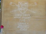 The fore court of the college is very interesting. Unlike the others there is no grass and in the centre of the court is a sundial (handy when there is sun). Graffiti adorns the walls but this is to do with successful rowing teams crowing about their victories. We are taken to the chapel and told more “secrets” from the shows. The chapel is typical but probably the smallest as this is the smallest college with accommodation for only 300 students. Typically there are 20,000 students per year shared among 38 colleges, 8 of which is for graduates and one only All Souls for Fellows (no it is not sexist – these are senior academics). We walked through the garden to see all that remains of one of the Saxon walls that enclosed Oxford, spied on the students using Merton field and viewed the spires of Christ’s College before making our way out to look at the front door of Merton College the third oldest in Oxford (1264 – University College 1249 being the oldest). Once again bloody cobbled streets. Merton St is the only remaining cobbled street and therefore distinguishable in any Morse or Lewis episode.