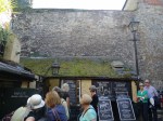 From there we moved into New College Lane (the New College was founded in the 13th century) under the Oxford imitation of the Bridge of Sighs as seen in Venice (actually it is nothing like it – the genuine bridge in Venice connects part of the old palace to the goal cells and when a prisoner passed over that bridge he sighed with resignation over his fate). Then we turned suddenly left into a small lane distinguished by a sign saying “To the Turf”. Following the lane the guide shows us the other remaining section of the original Saxon wall and the entrance to Oxford oldest pub (Yes this one also claims that title and I think the dispute has been settled by the one person buying both hotels and sharing the claim). This pub is squeezed in between other buildings and you have the distinct feeling of being underneath. We visit the scene of this crime a little later on also.
