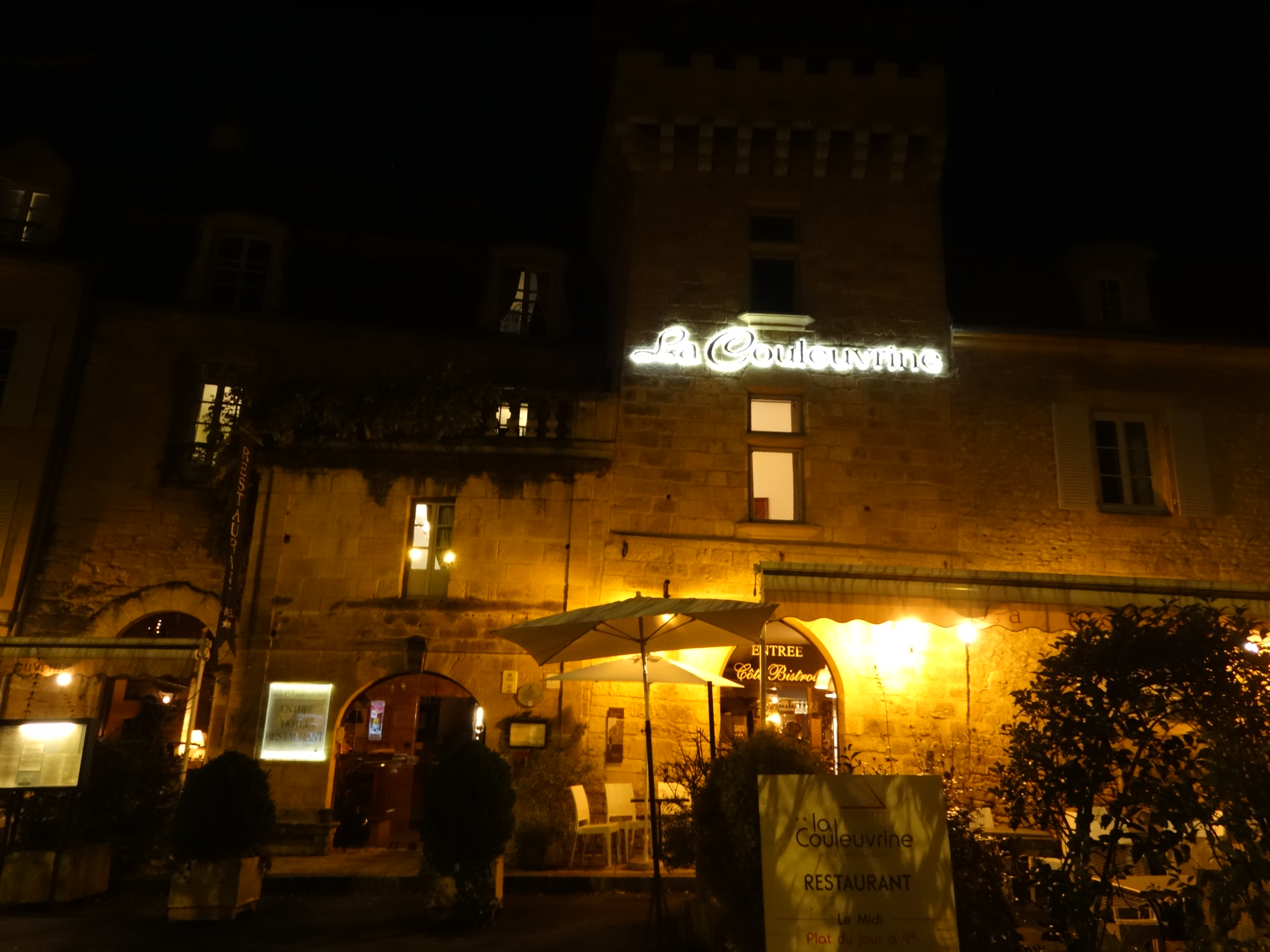 After a delightful lunch in the village at the foot of the chateau (there is another village of the same name below the chateau) we made our way into Sarlat just in time for the Xmas markets and tens of thousands of people (well thousands anyway) making finding the hotel and parking impossible. An eagle eyed Nerida spotted La Couleuvrine (named after the culverins on the town walls which walls now form part of the hotel).