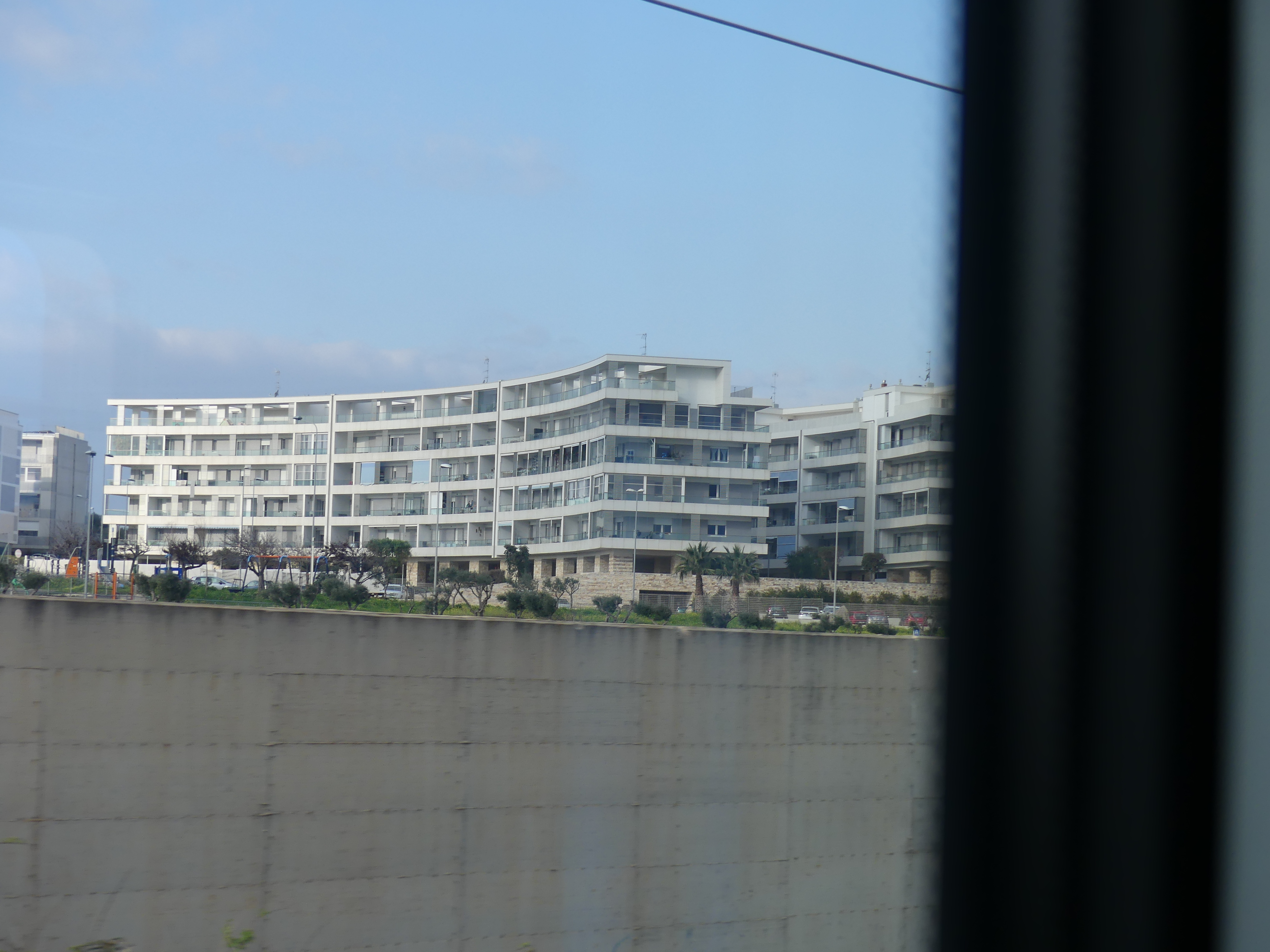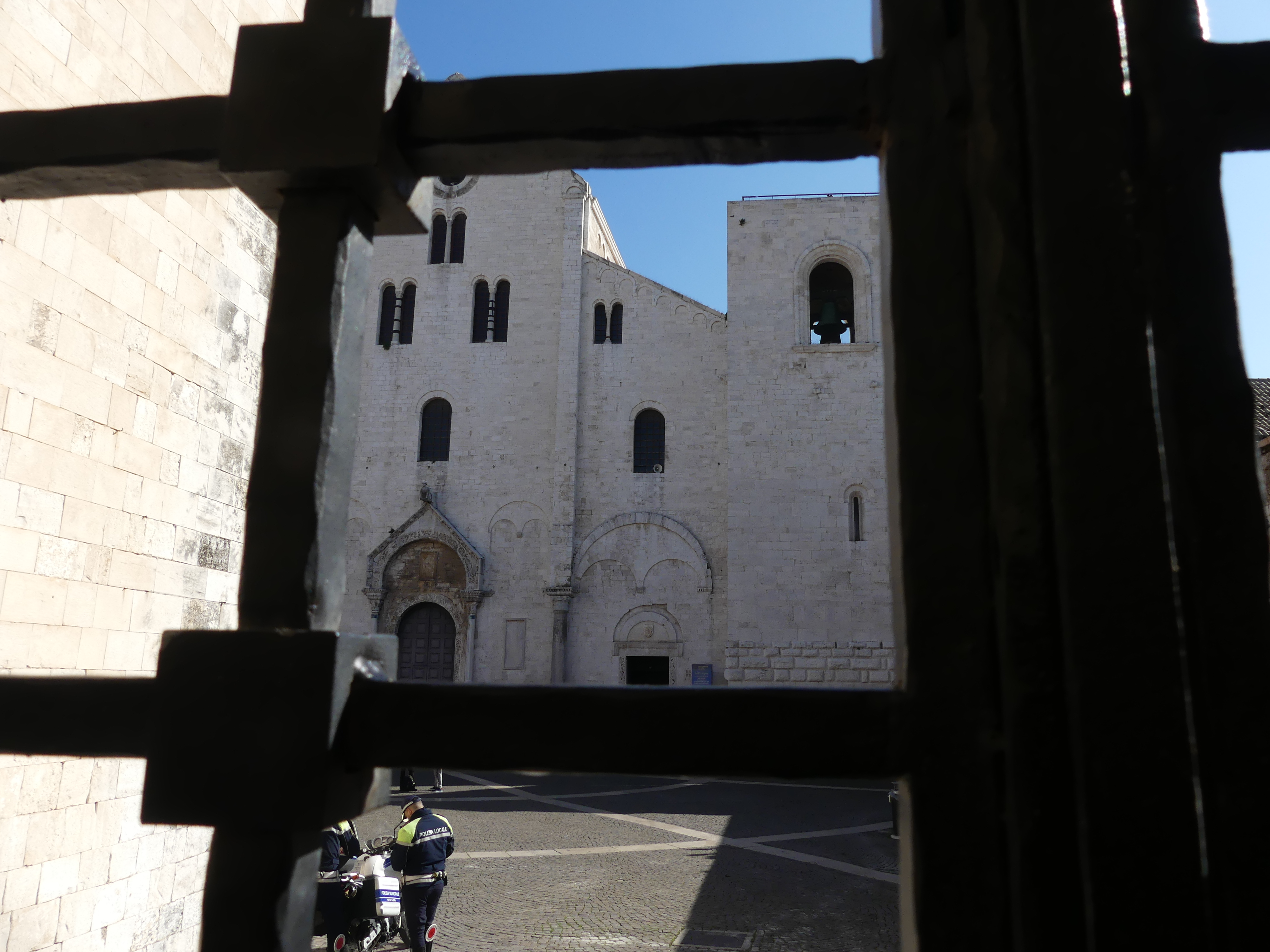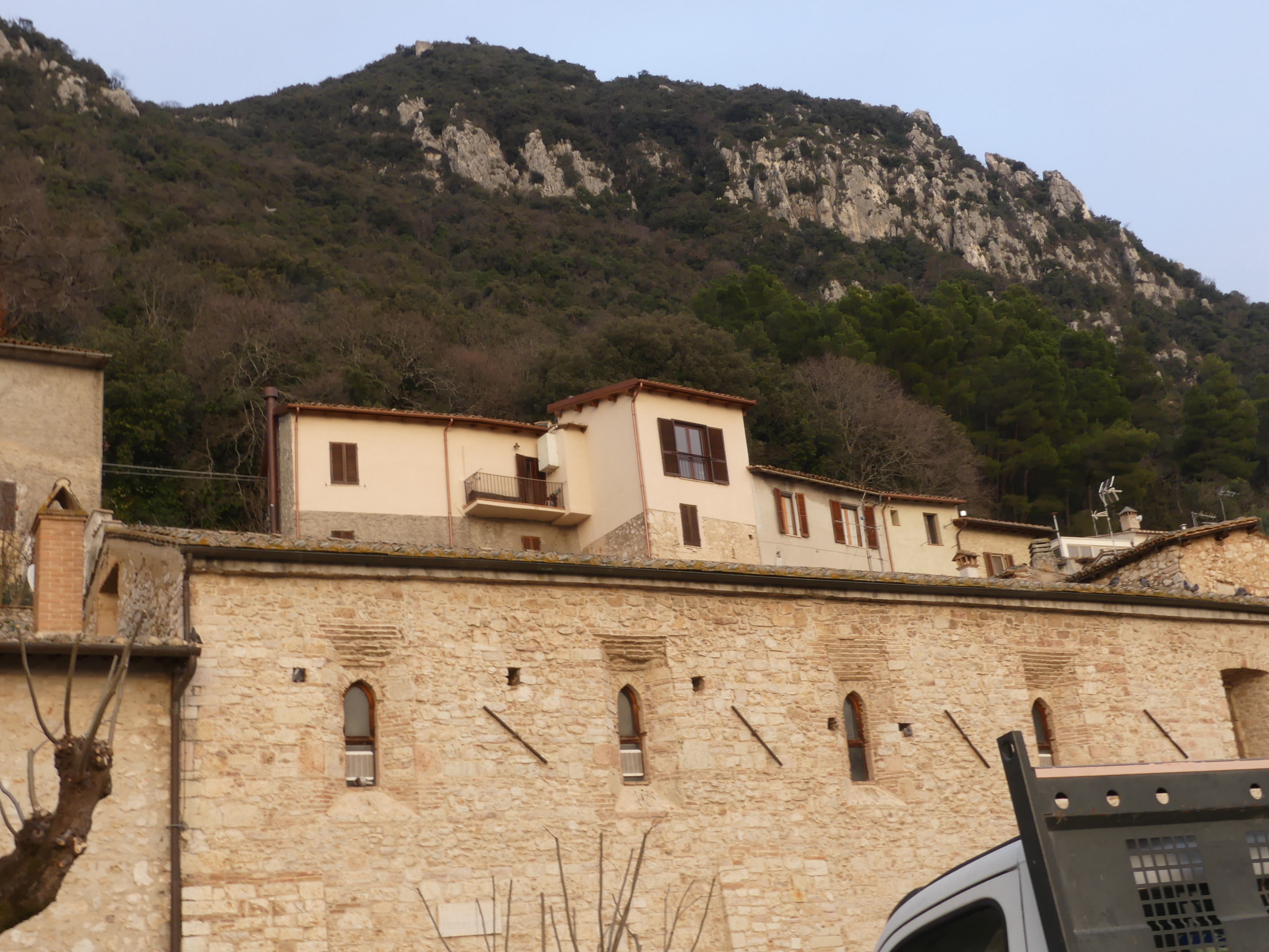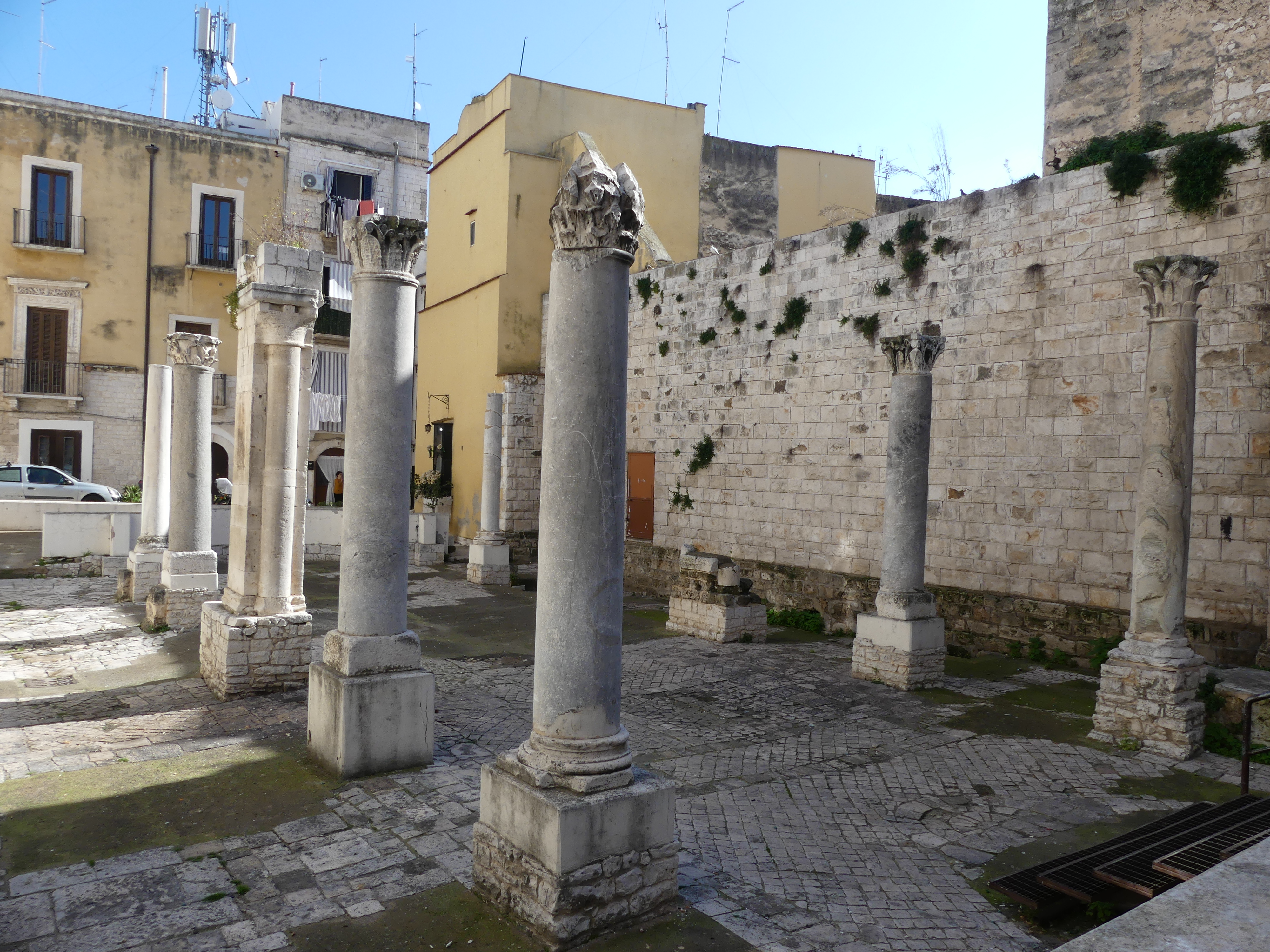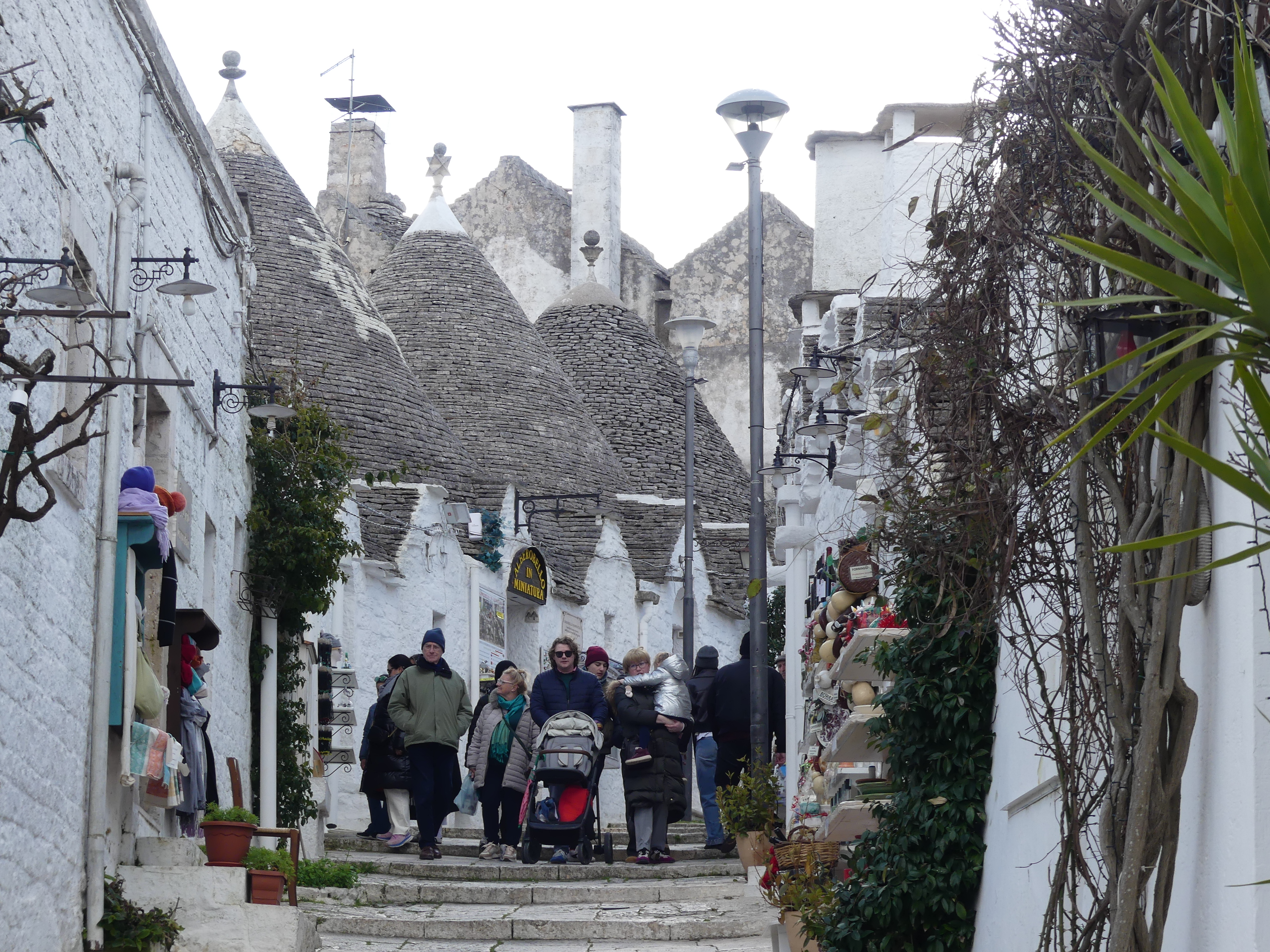 As commented about some walls being “decorated” with “street art” – we came across this portrait of a bishop – very impressive. The church however seemed to have walls collapsing into the chapel. As we made our way back to Hotel Vergilius Billia we took a different route came across an ancient gate of the city and disjointed buildings with openings and windows in odd places but still in use. Here are some photos of a narrow but long building and an ancient gate surrounded by merchants.