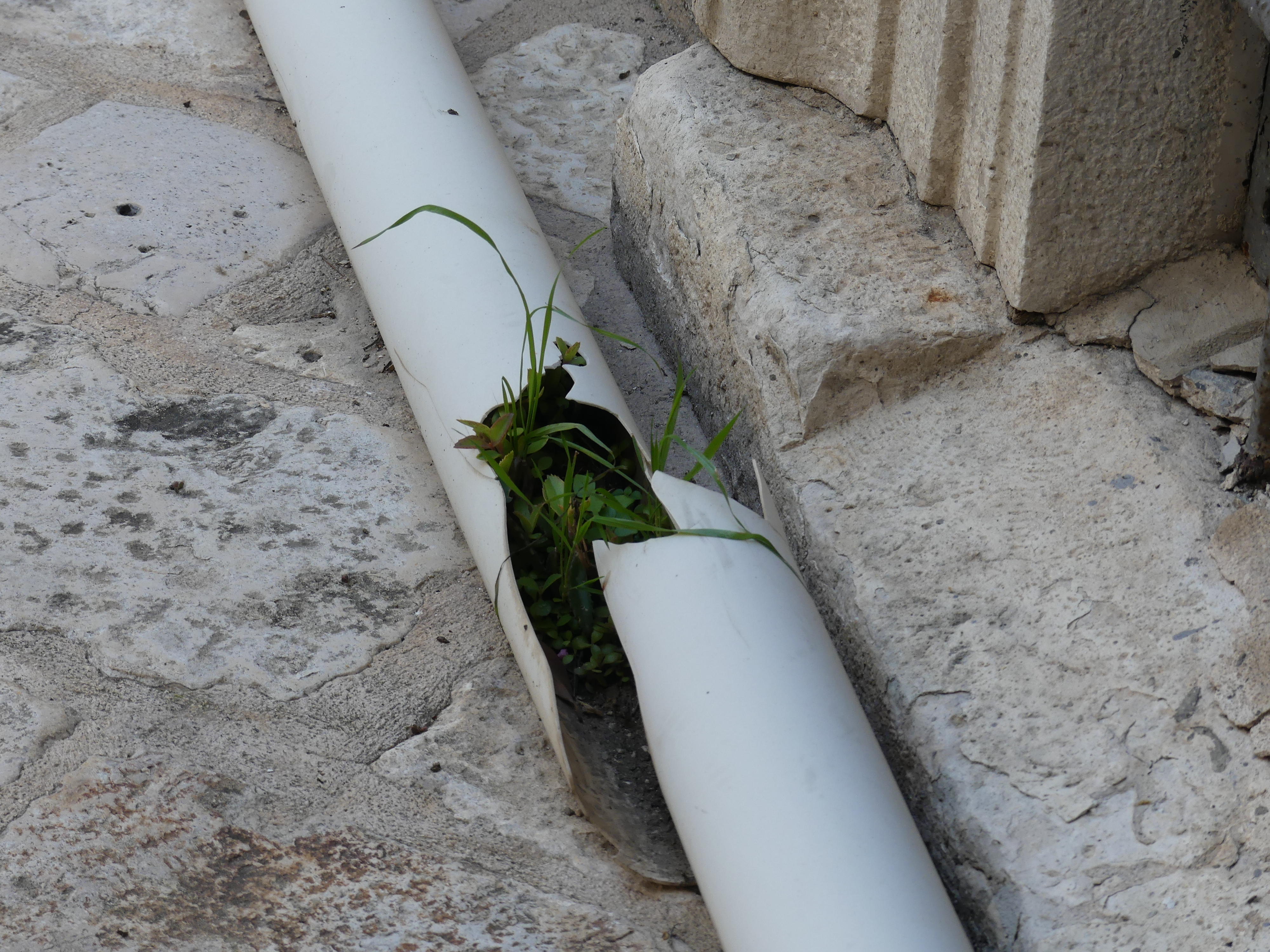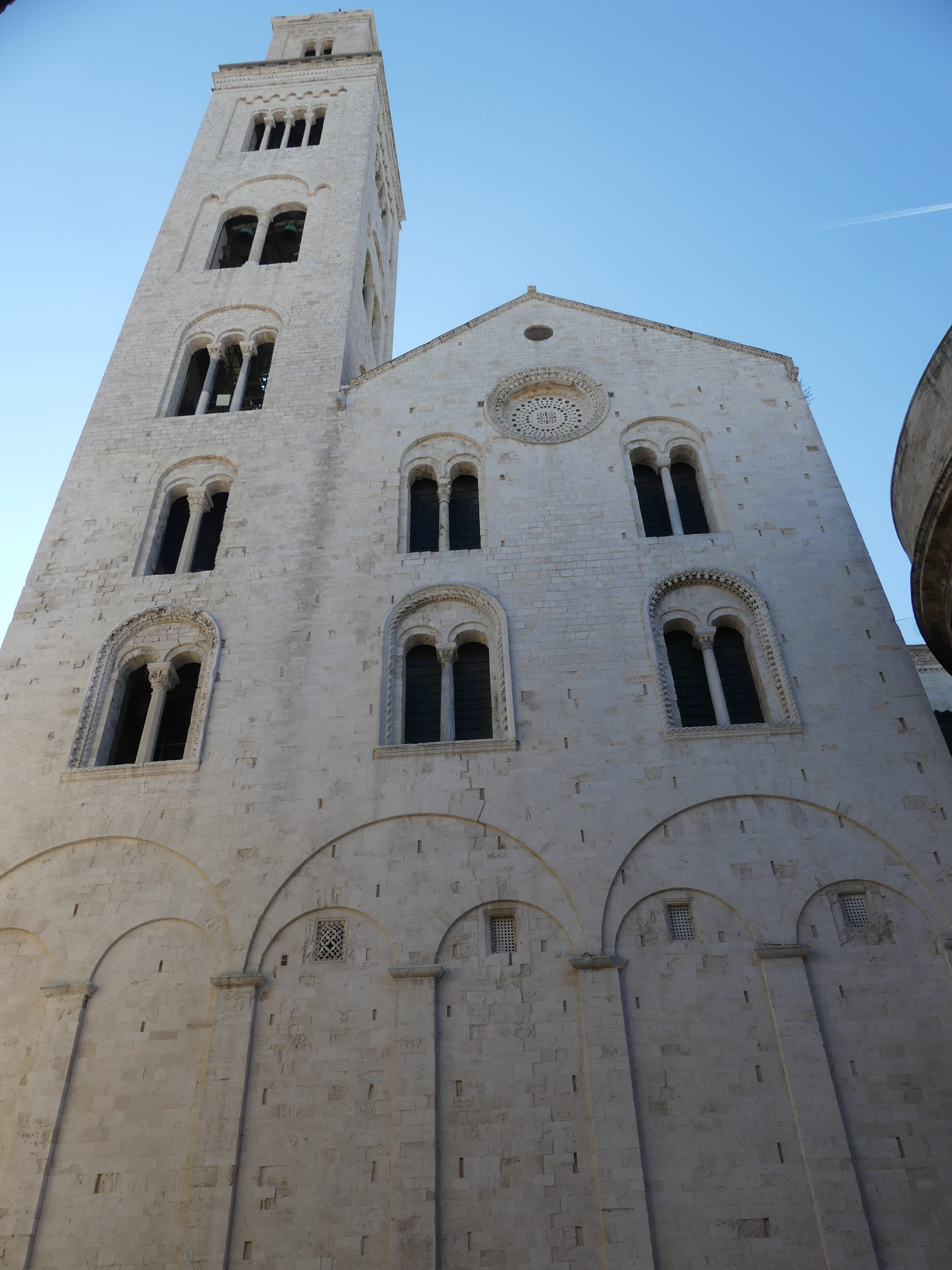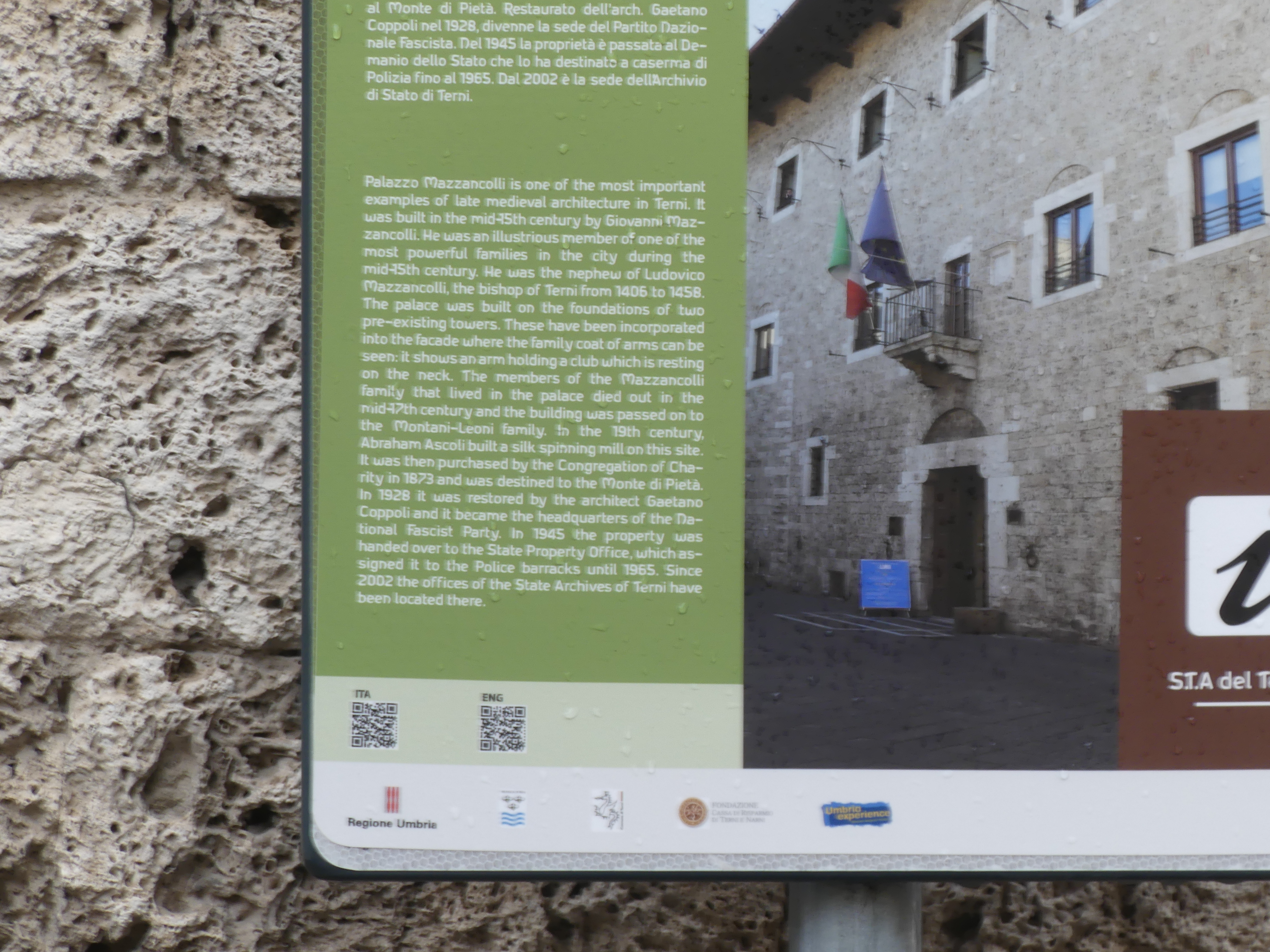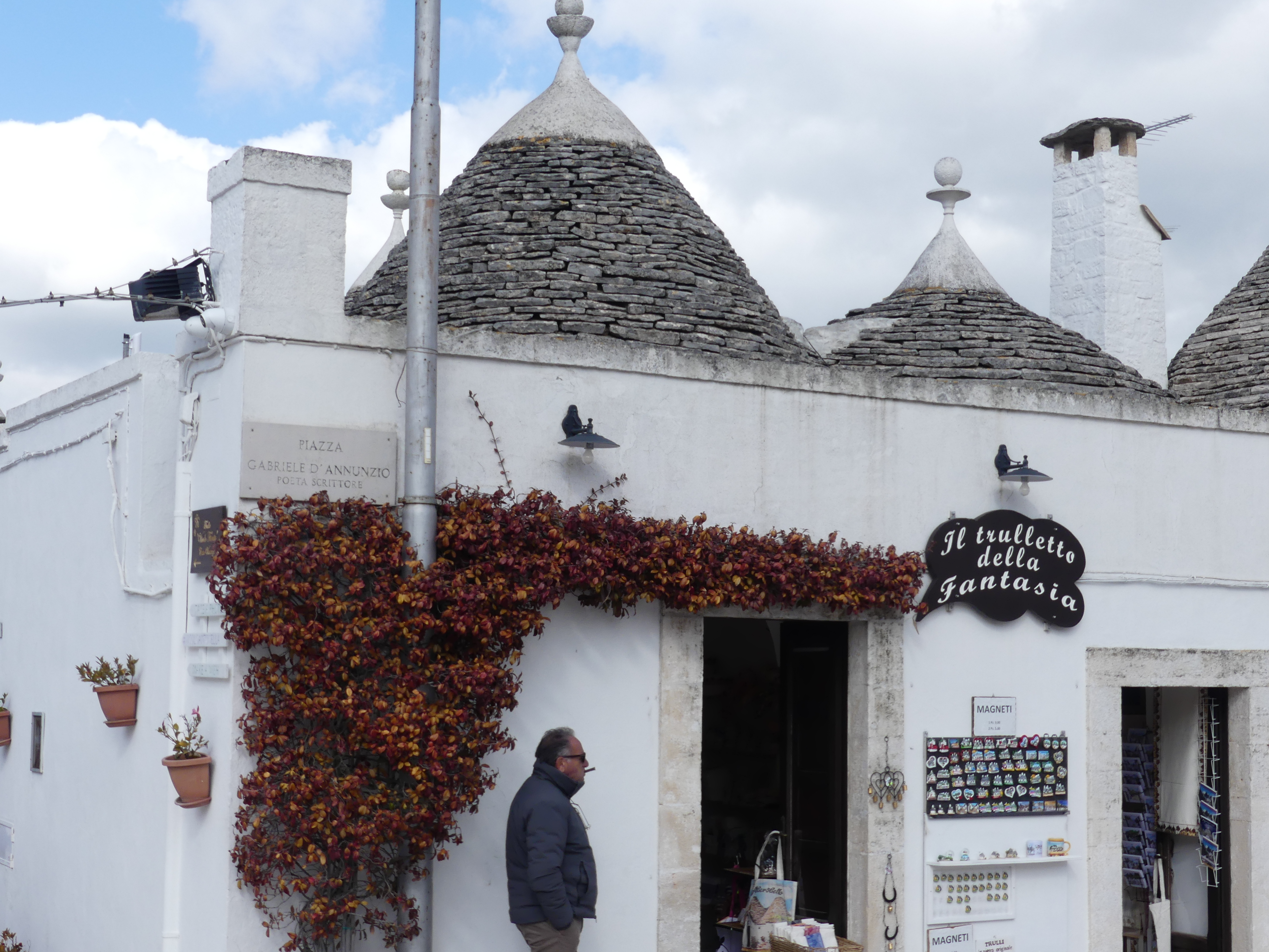 As commented about some walls being “decorated” with “street art” – we came across this portrait of a bishop – very impressive. The church however seemed to have walls collapsing into the chapel. As we made our way back to Hotel Vergilius Billia we took a different route came across an ancient gate of the city and disjointed buildings with openings and windows in odd places but still in use. Here are some photos of a narrow but long building and an ancient gate surrounded by merchants.