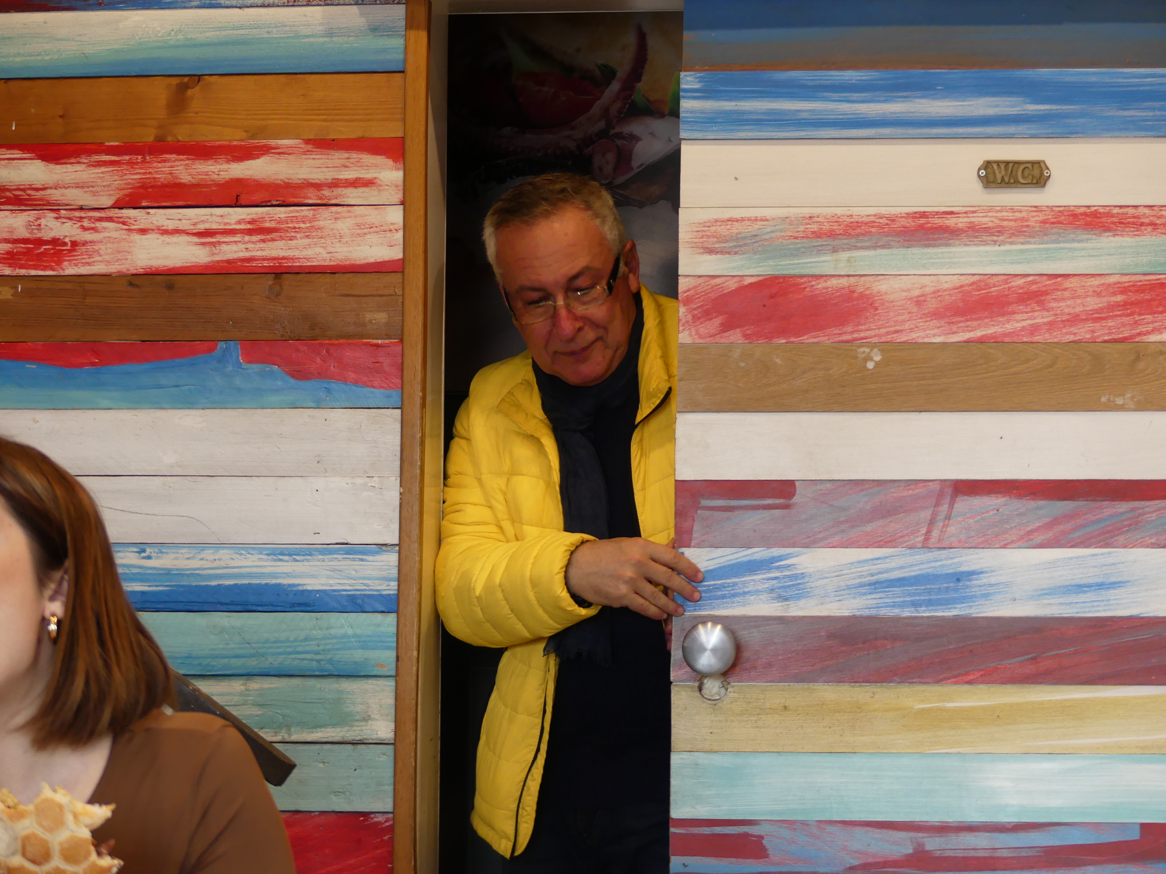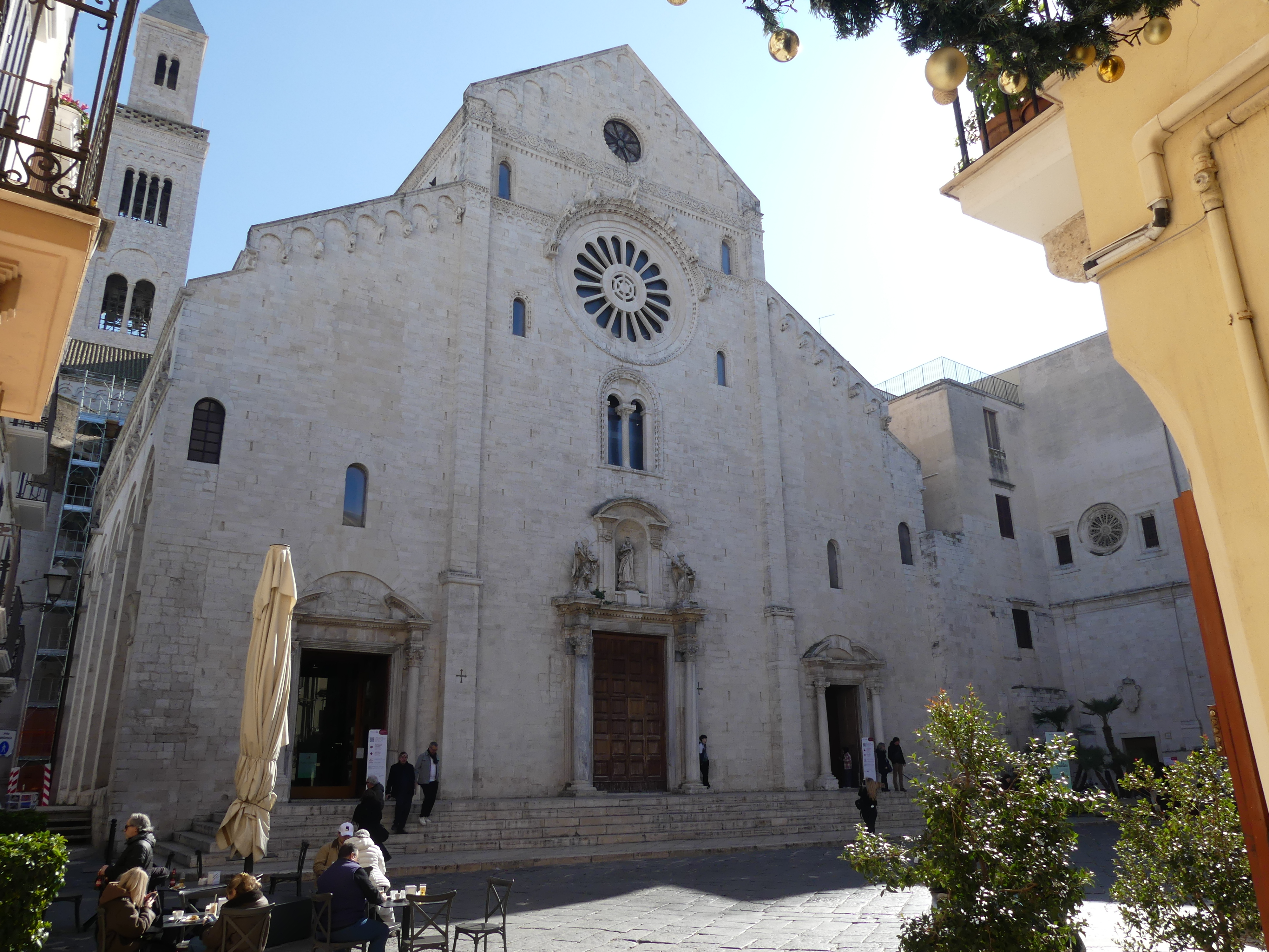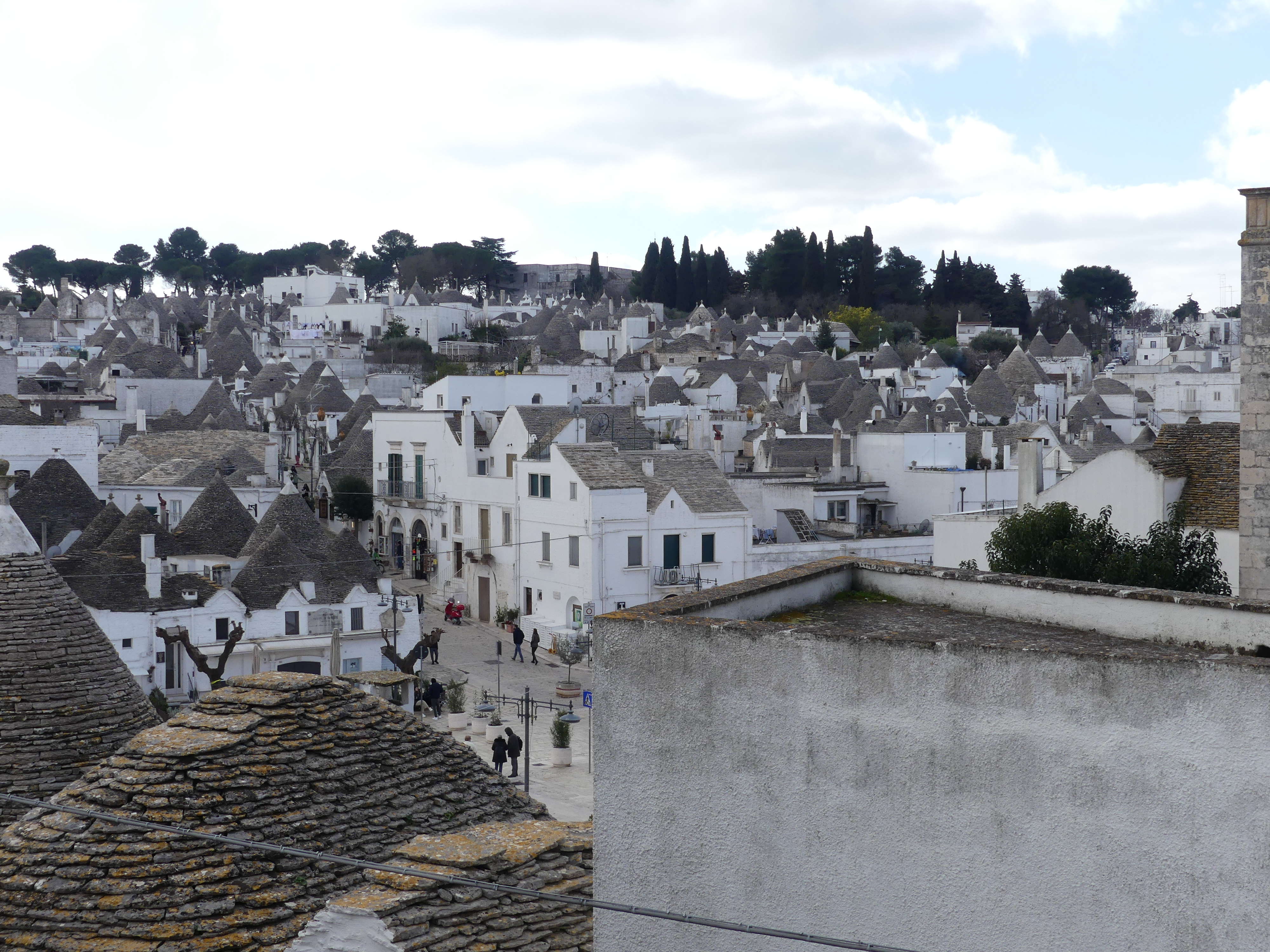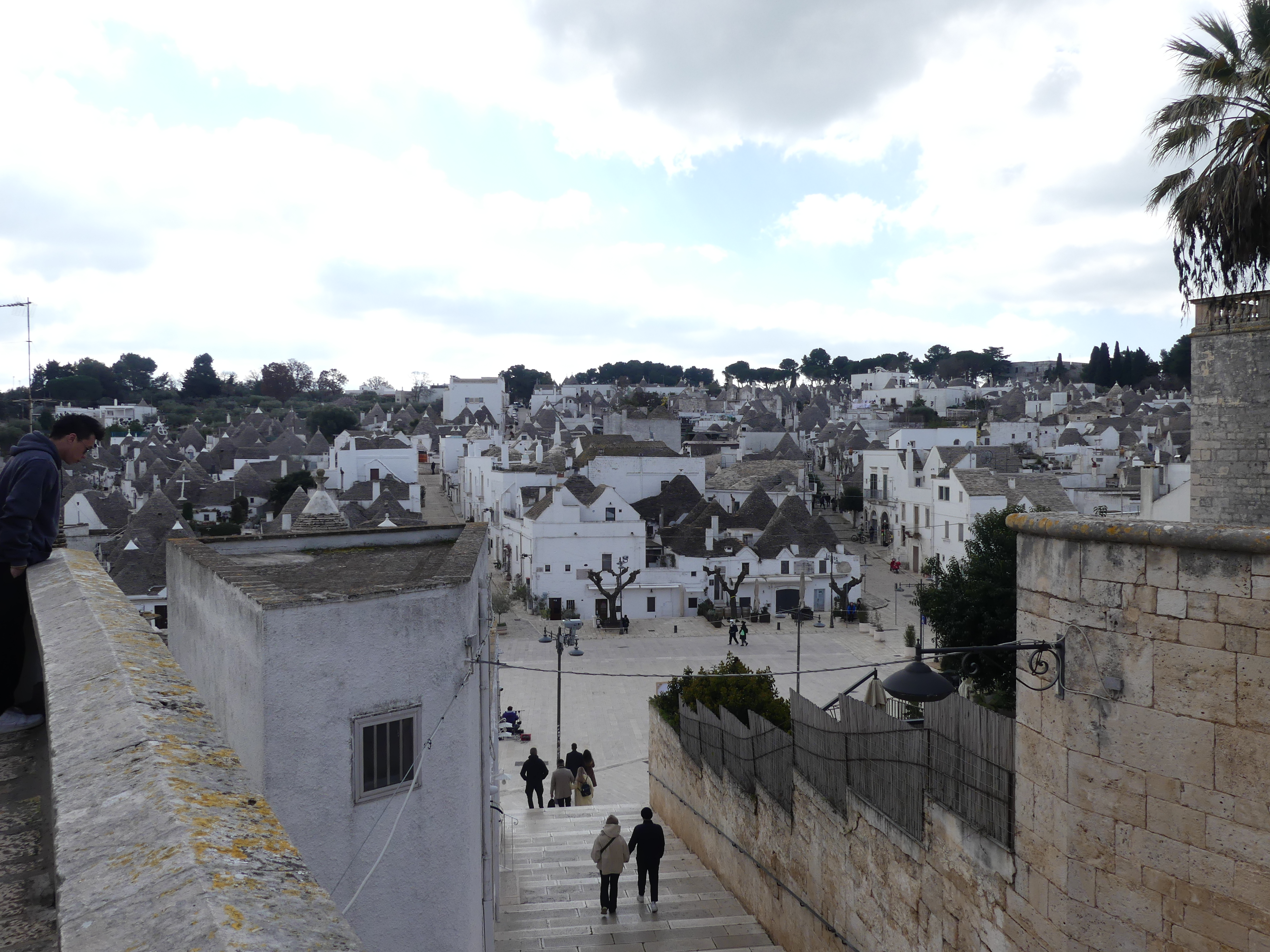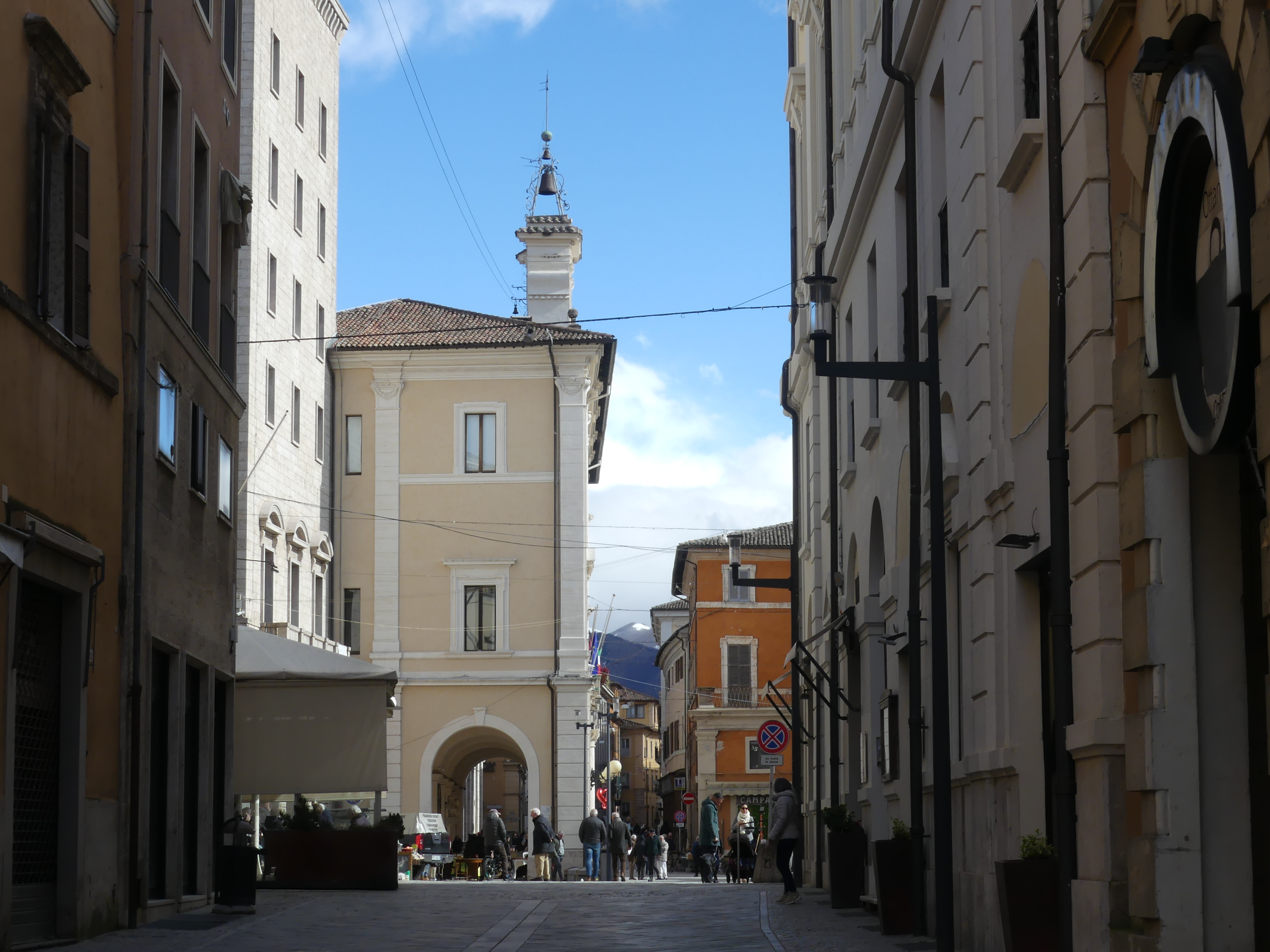 As commented about some walls being “decorated” with “street art” – we came across this portrait of a bishop – very impressive. The church however seemed to have walls collapsing into the chapel. As we made our way back to Hotel Vergilius Billia we took a different route came across an ancient gate of the city and disjointed buildings with openings and windows in odd places but still in use. Here are some photos of a narrow but long building and an ancient gate surrounded by merchants.
