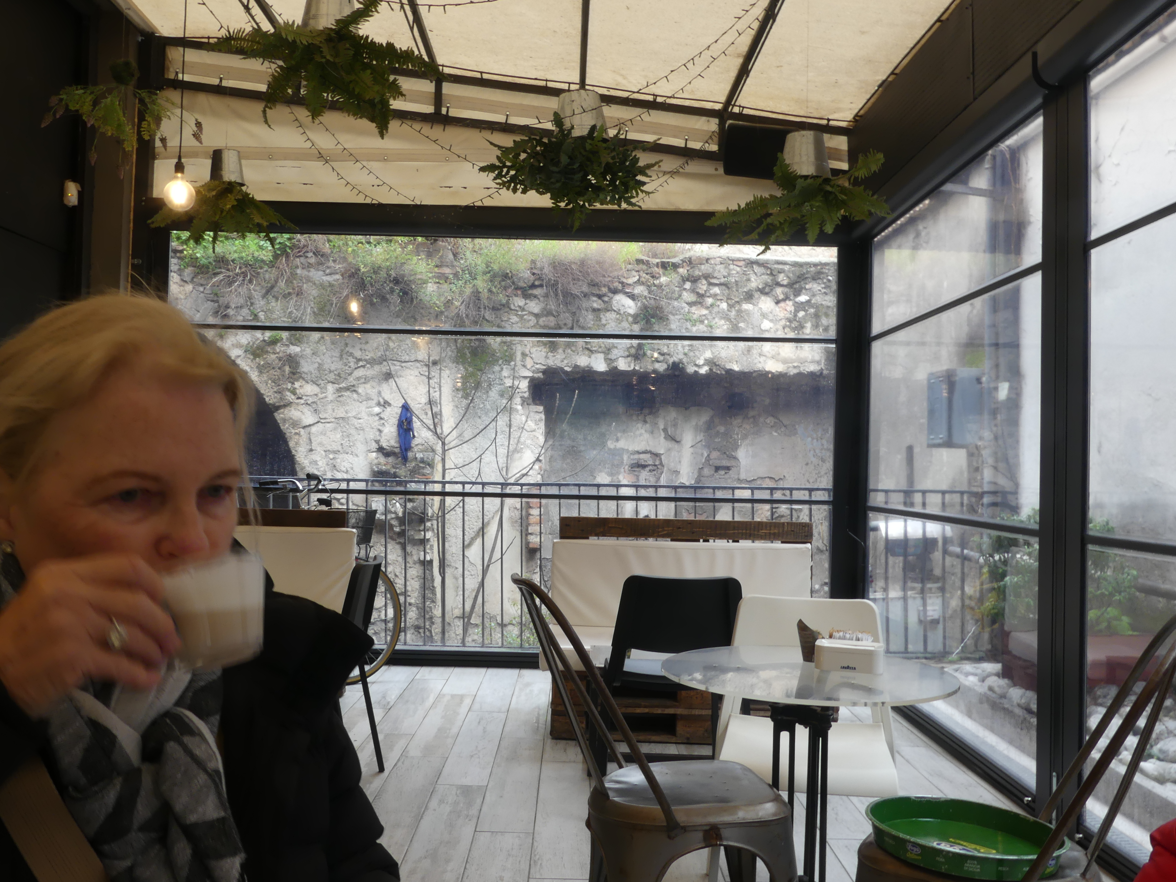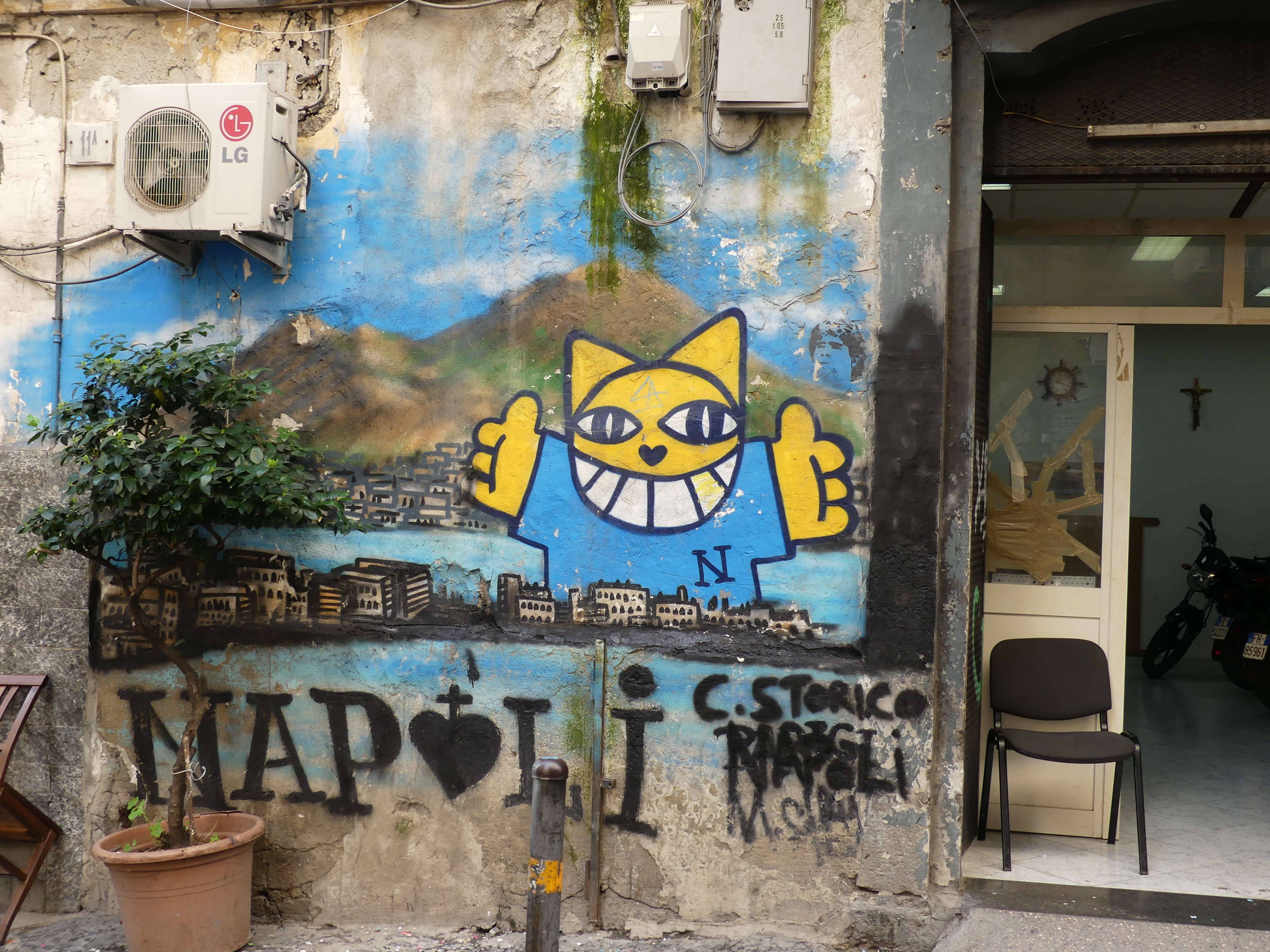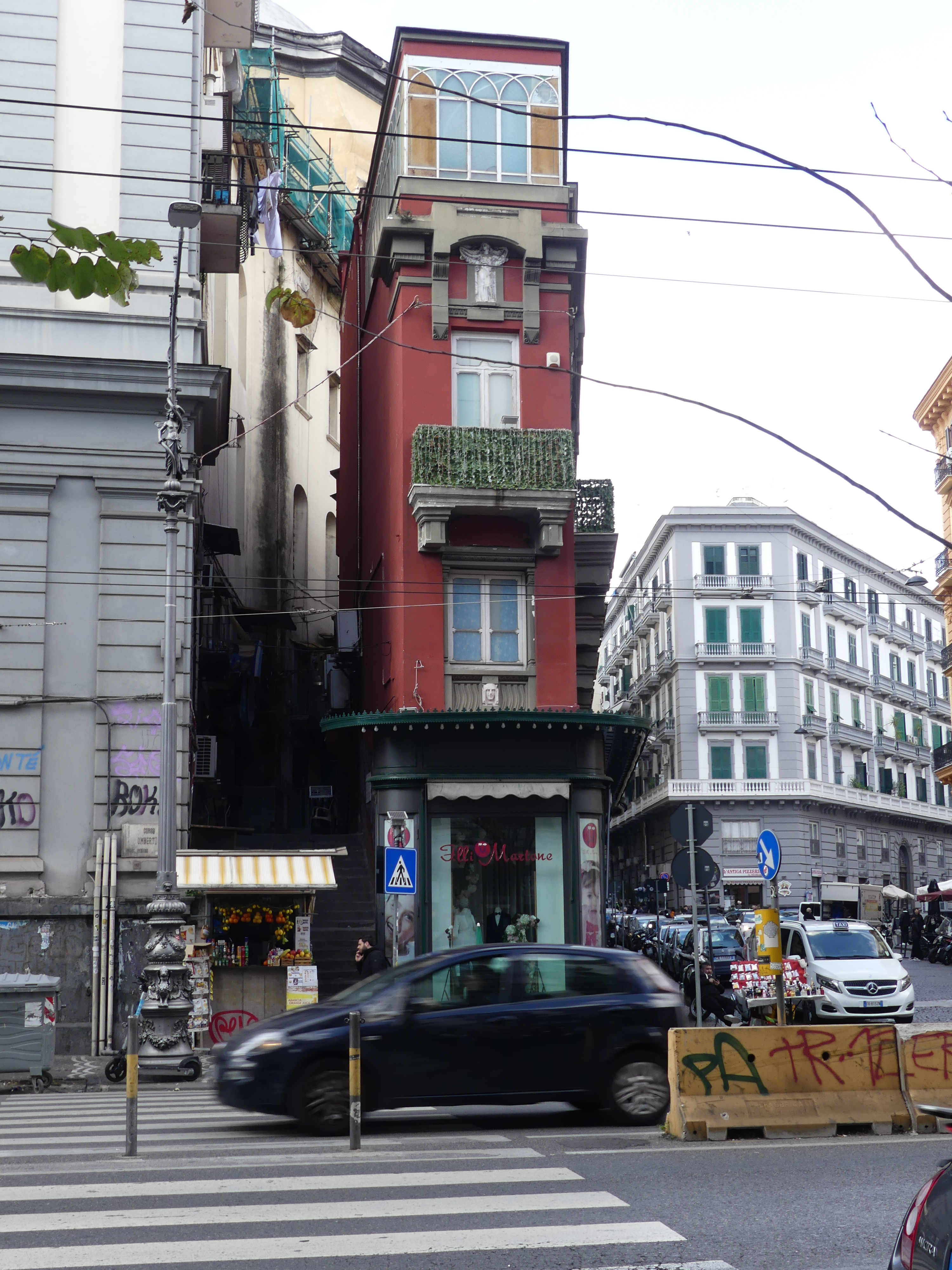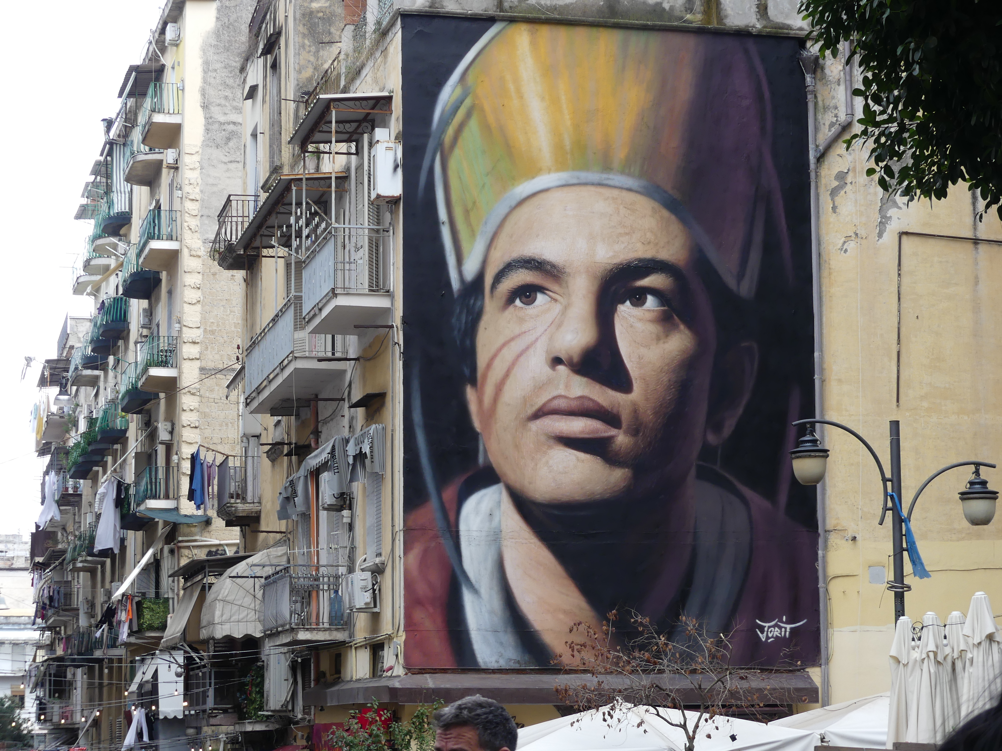 The following morning it was breakfast first before our big day in the old town. One of the first shops we encountered was the Italian Bunnings hardware store. A further surprise awaited us when we passed a theatre presenting Sonetti de Amleto (Sonnets of Hamlet). Shakespeare in Naples. The streets were narrow and the buildings dirty and tired sometimes decorated with street art or a chapel for worship.