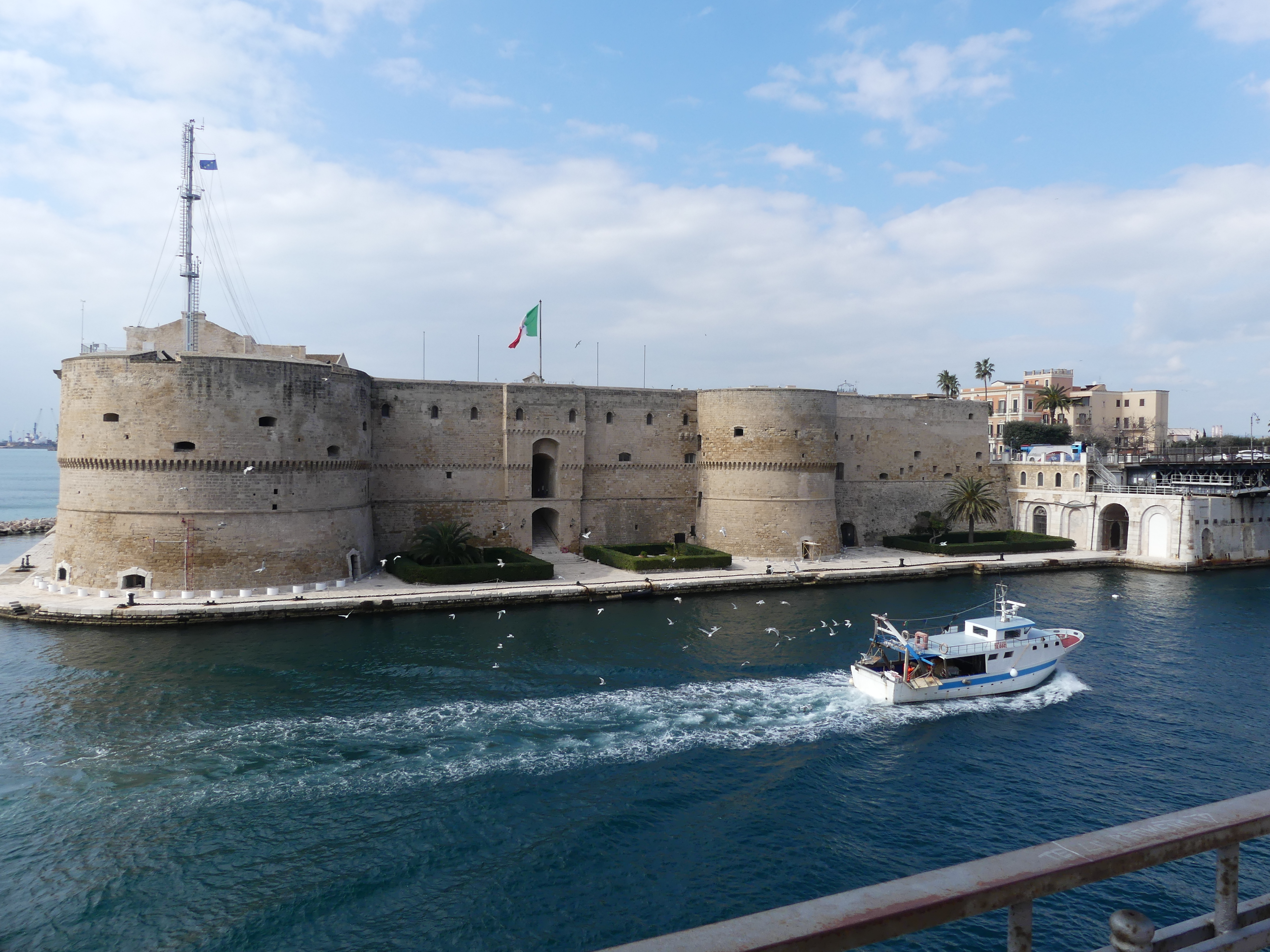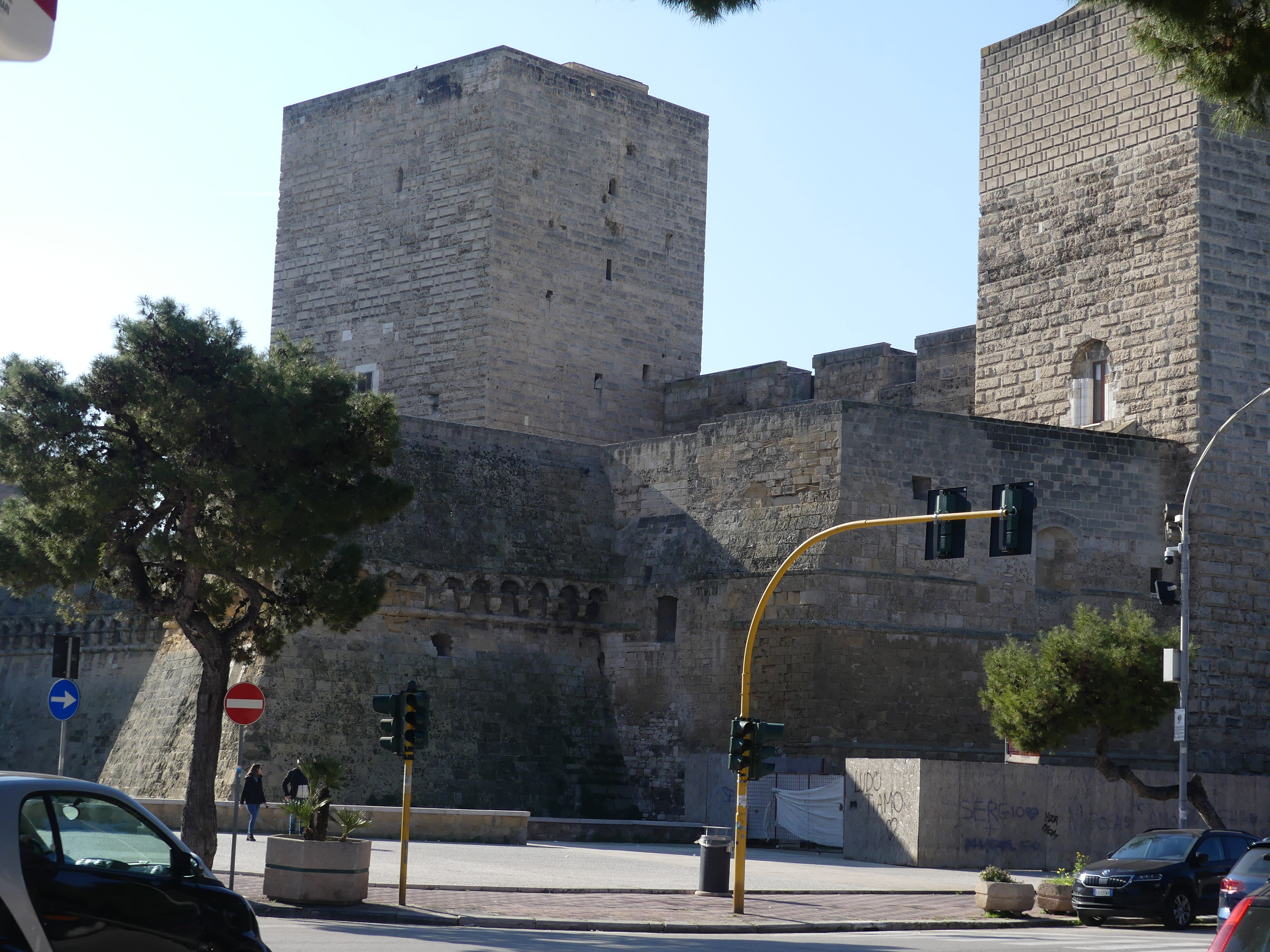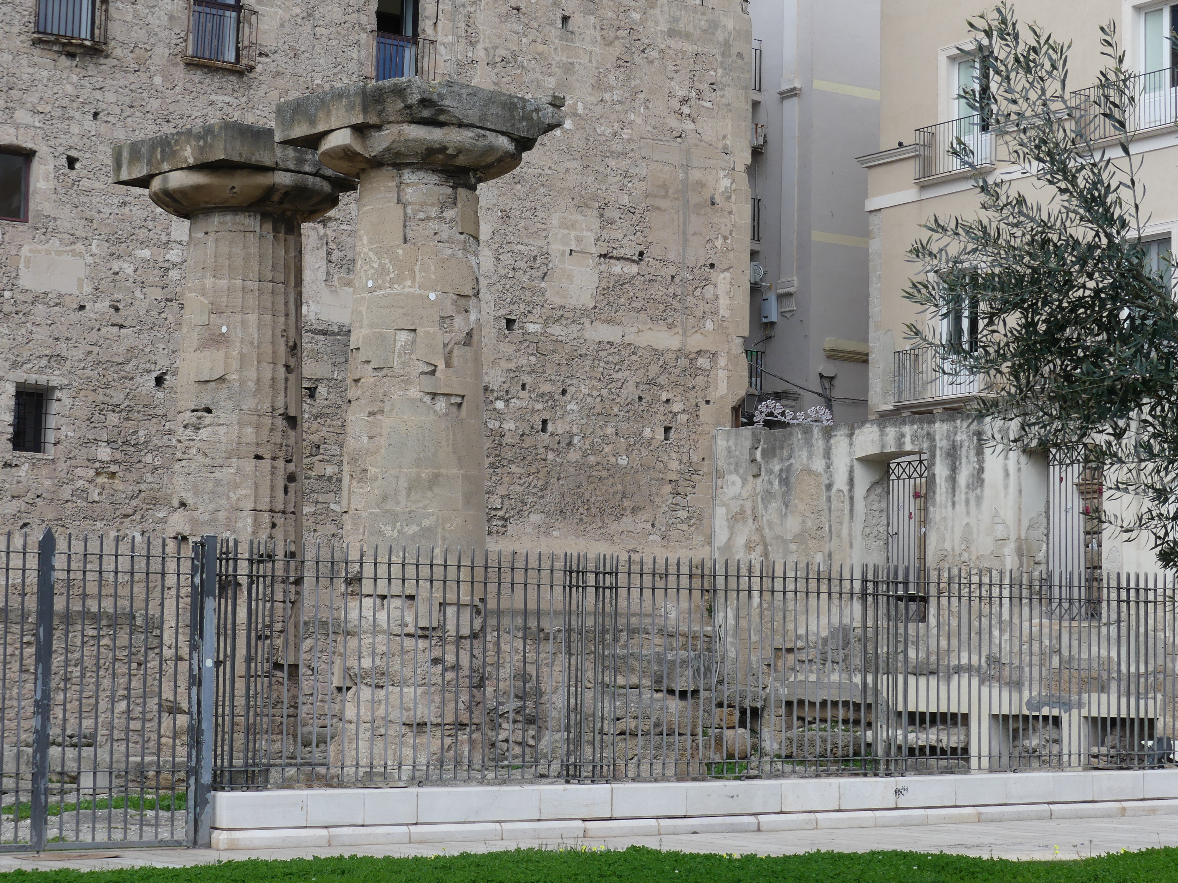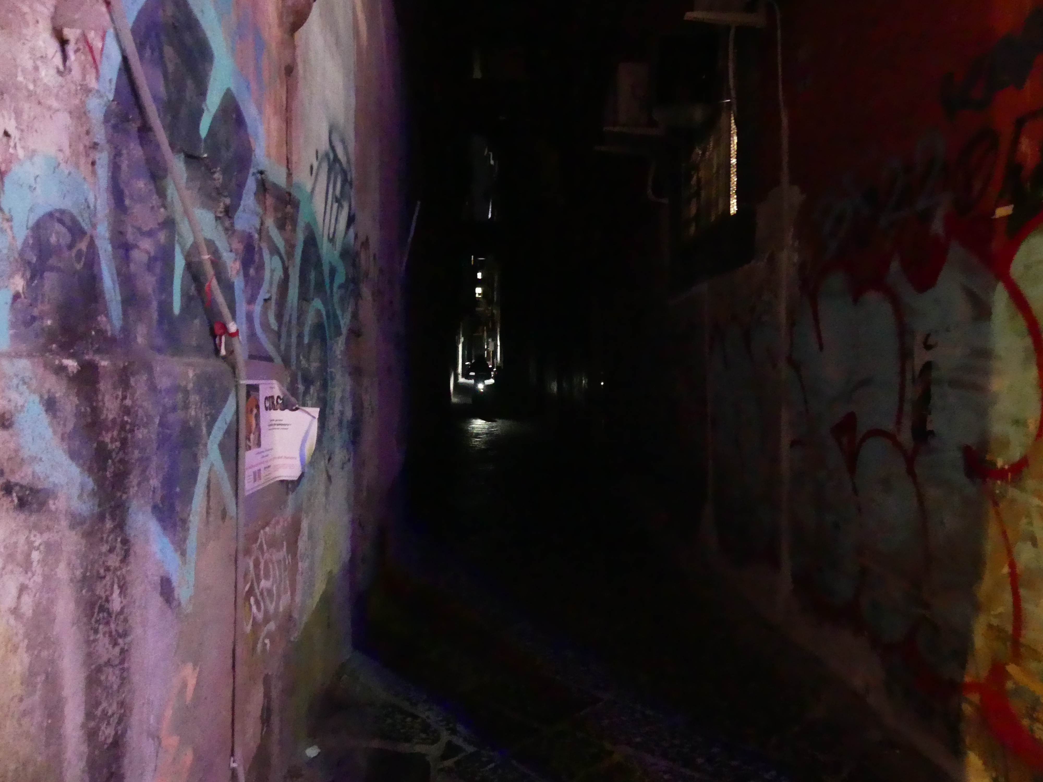 Our plan here was to visit the old city and particularly visit the underground tunnels and cisterns built by the Greeks and Romans. After booking into our hotel, we visited the old town by night particularly the historic centre of the city in Via dei Tribunali. We crossed the piazza past a church and attached monastery past the walls of a castle and into Via dei Tribunali. The first thing we noticed was how dirty it is and how alive it is with people, scooters and cars down this narrow alley. In a doorway we found the tell-tale sign of a recent birth – a boy. Here is a selection of photos going to the old town and in the old town itself.