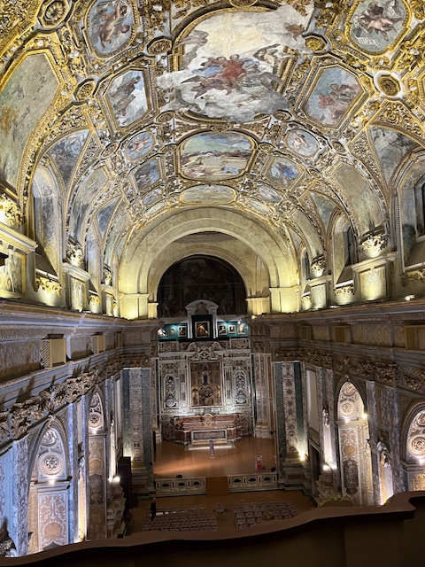 But then we encountered Museo Donna Regina. The monumental complex of Donna Regina represents a unique example in the panorama of the historic centre of Naples. In this Franciscan monastic insula, there are preserved testimonies of the ancient convent and of the two original churches, the medieval one and the seventeenth-century together conceived as one, until the 1930 s, conceived as a single structure with a corridor that, like a sort of umbilical cord, united the buildings, in addition to the apses, the past and the present, allowing the Poor Clares to move without leaving the places of cloister.